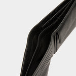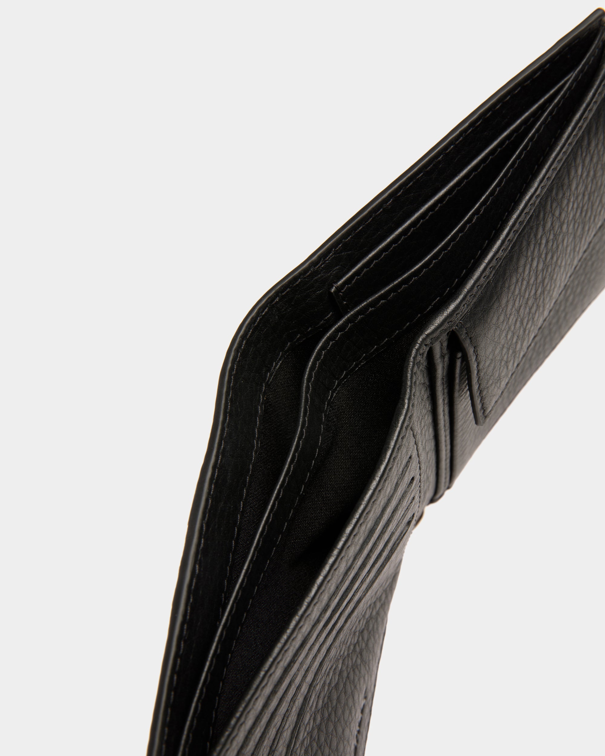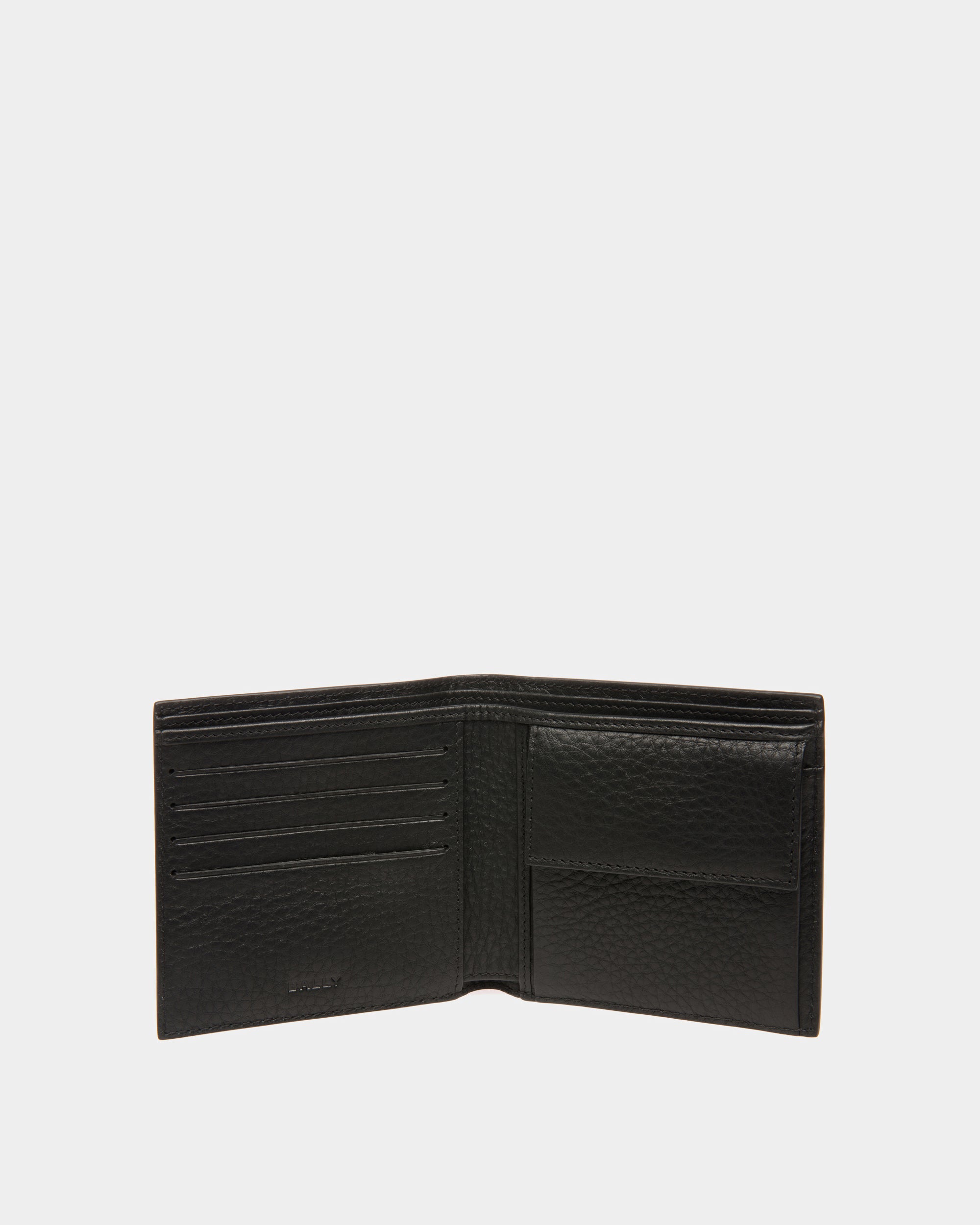 以荔枝紋小牛皮打造,搭配低調的銀白色金屬配件與單一道 Bally 緞帶條紋點綴,呈現簡約而洗鍊的設計風格。內部另設有零錢收納空間,兼顧實用性與精緻質感。