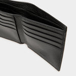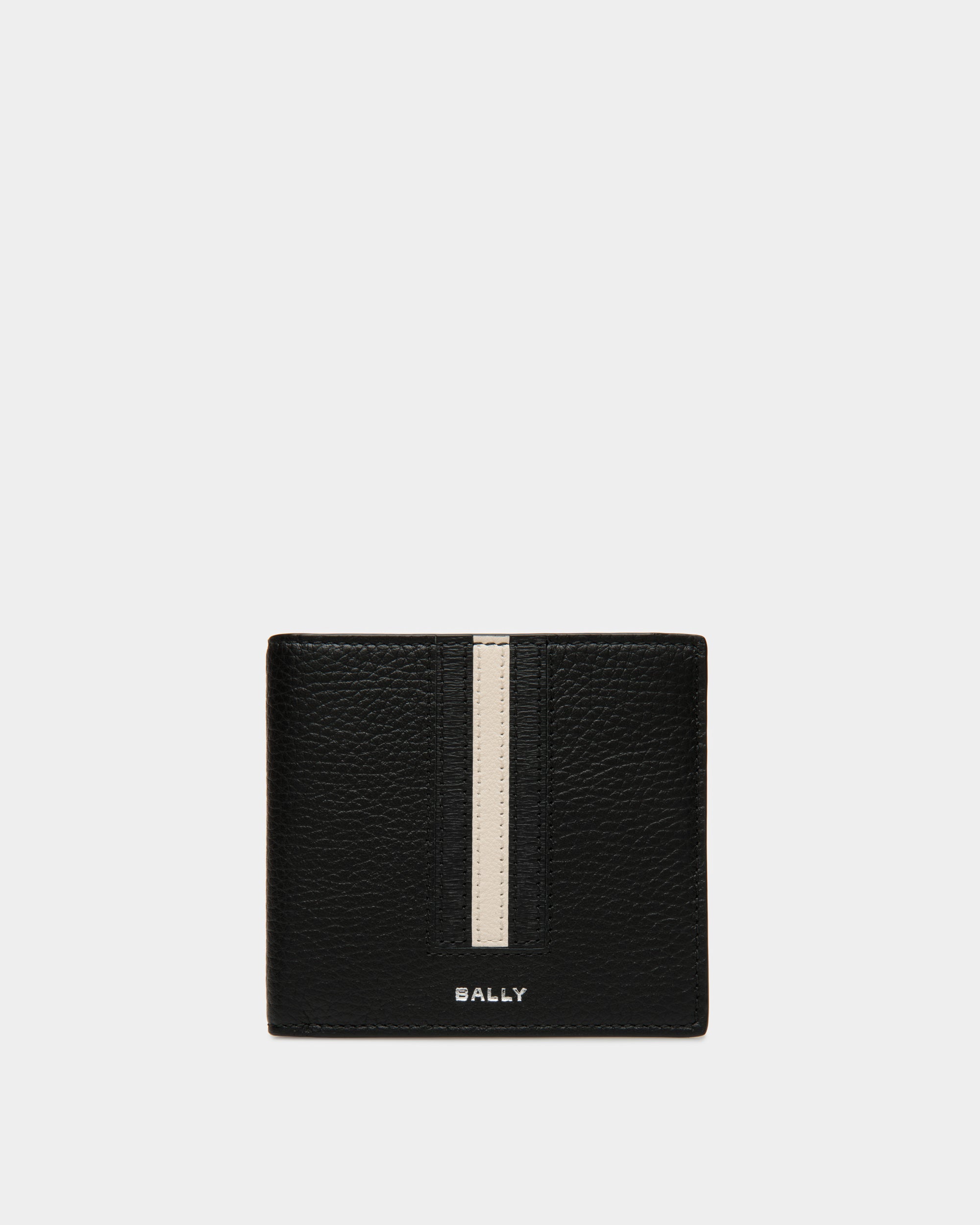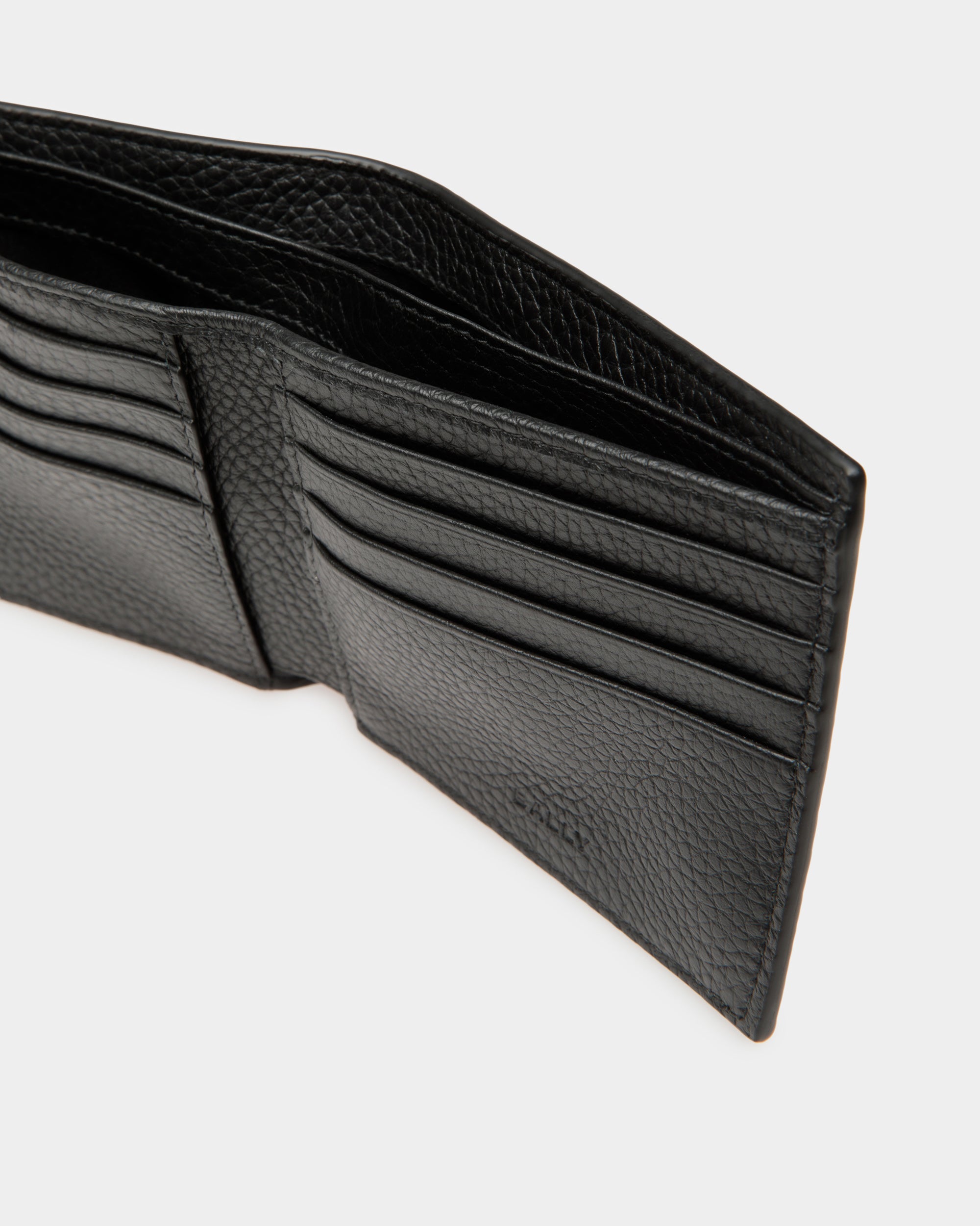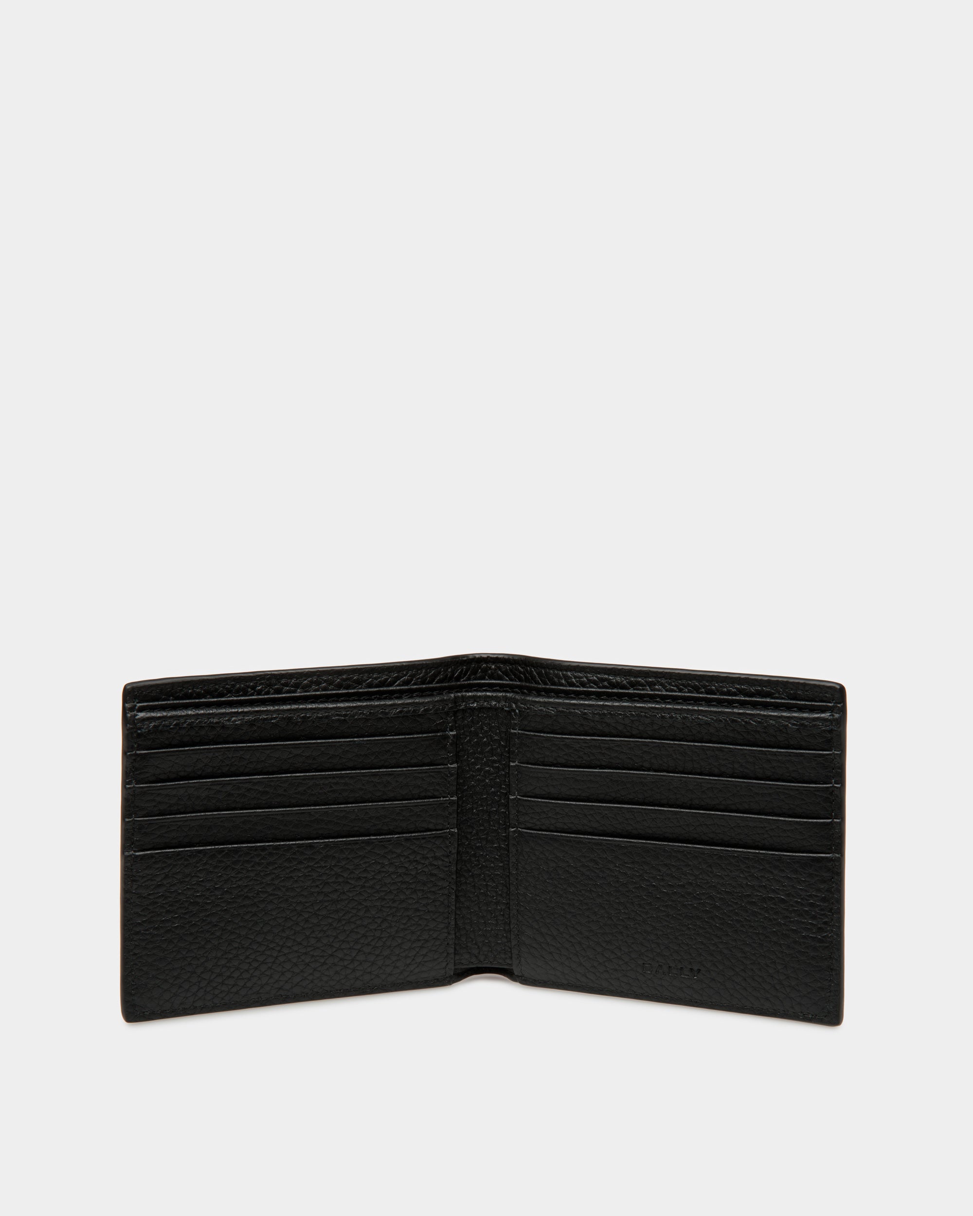 此款對折皮夾以荔枝紋小牛皮製成,正面飾有黑白配色的 Bally 經典緞帶,低調中展現鮮明品牌識別。內部配置八個卡片夾層與紙鈔夾層,收納清晰有序,兼具實用與質感。