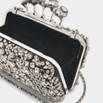 精湛手工採用刺繡工法,並手工縫製水晶、玻璃管珠與金屬絲線,在黑色皮革底色上構築出充滿張力的視覺層次。經典指節環頂部設有 ALEXANDER MCQUEEN 標誌性開關,此款特別結合了靈動蜘蛛造型與飾鑽,展現品牌獨有的神祕美學。 這款包包不僅是配件,更是一件具備高度辨識度的手拿珠寶,能為正式禮服增添叛逆且高雅的氣場。