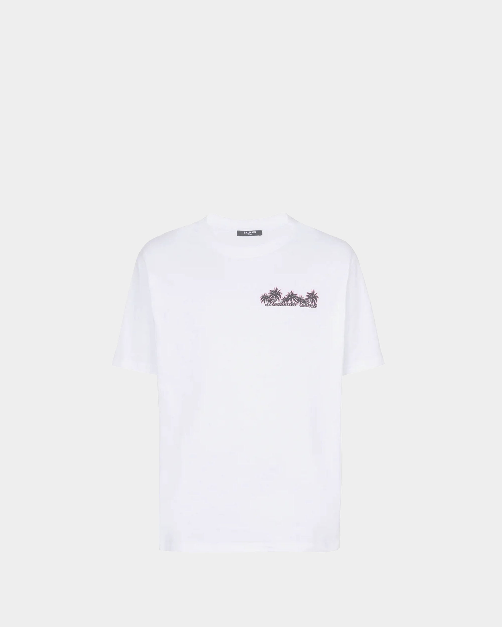 BALMAIN 小棕櫚樹標誌直筒白色 T-Shirt