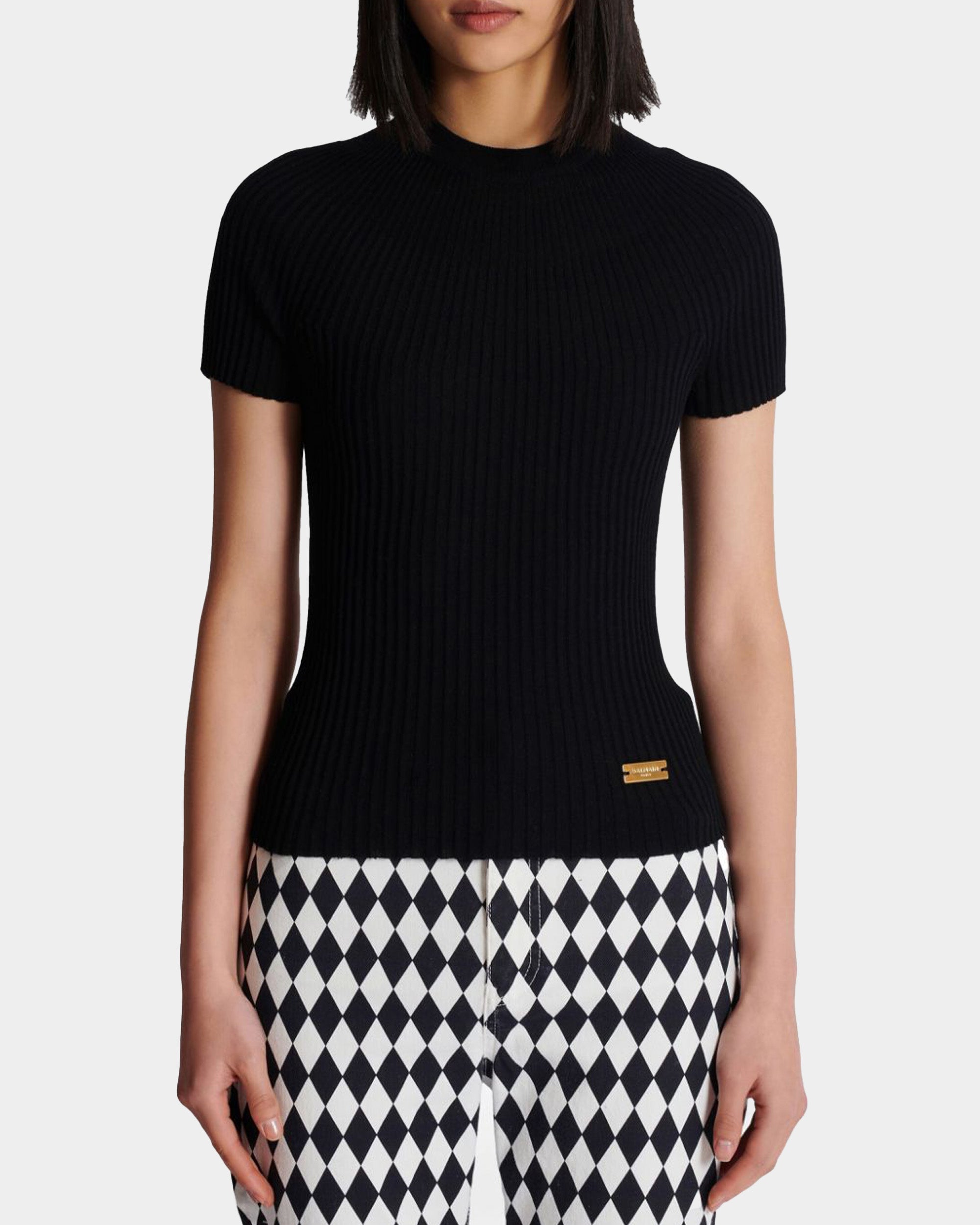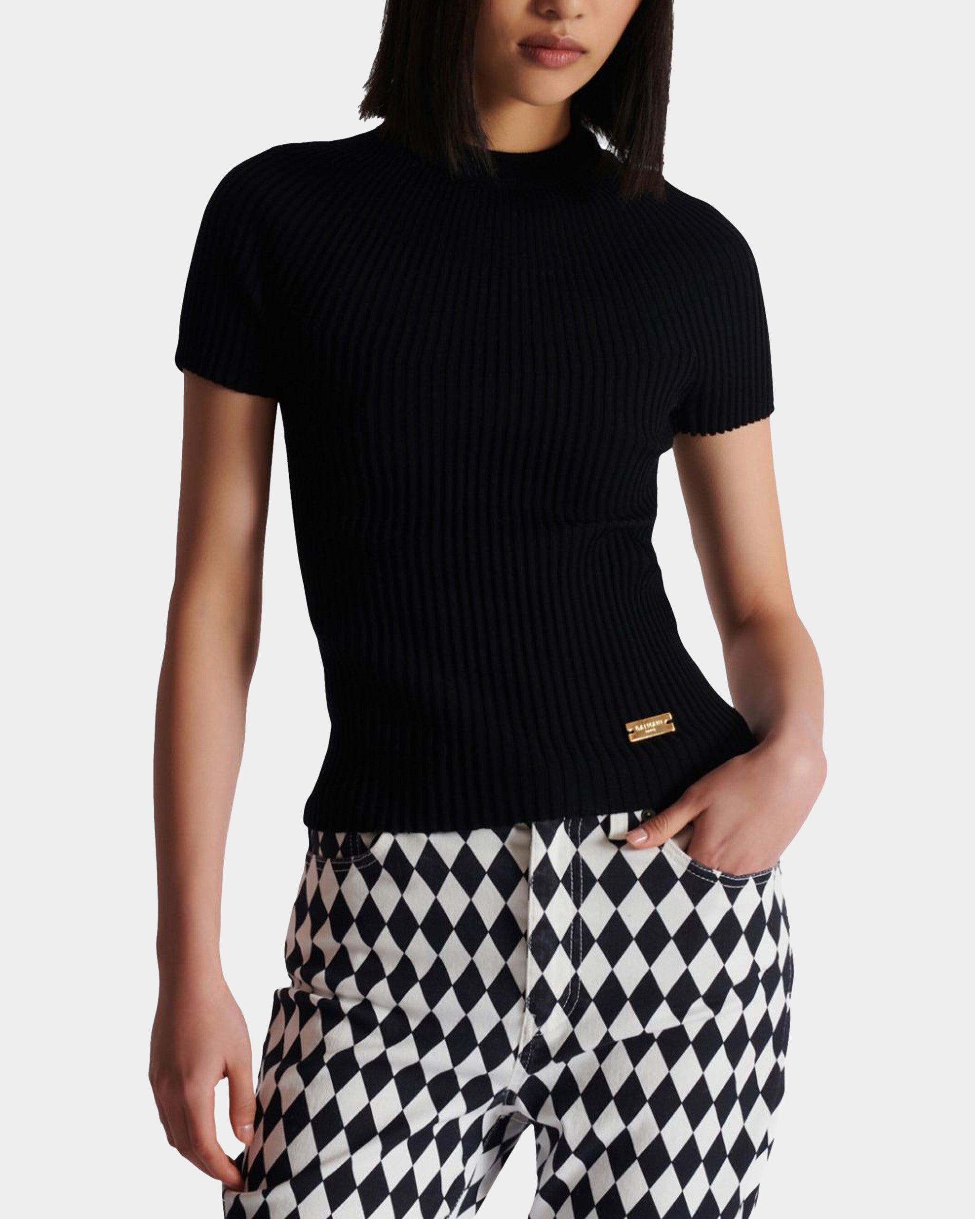 以貼身剪裁與柔軟面料塑造女性身形曲線,展現性感與優雅並存的時尚態度。平直領口搭配獅頭金屬壓扣的頸部扣合設計,為整體造型增添華麗細節。簡約中蘊含力量,適合搭配高腰褲裙或外罩西裝外套,打造率性自信造型。