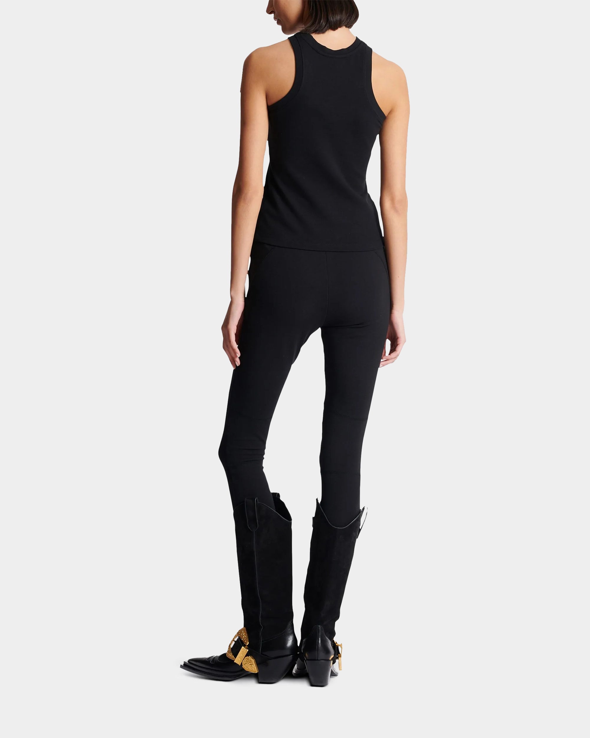 打造出街頭與奢華並存的時尚態度。剪裁合身、無袖設計,展現俐落肩線,適合夏季單穿或作為內搭層次。