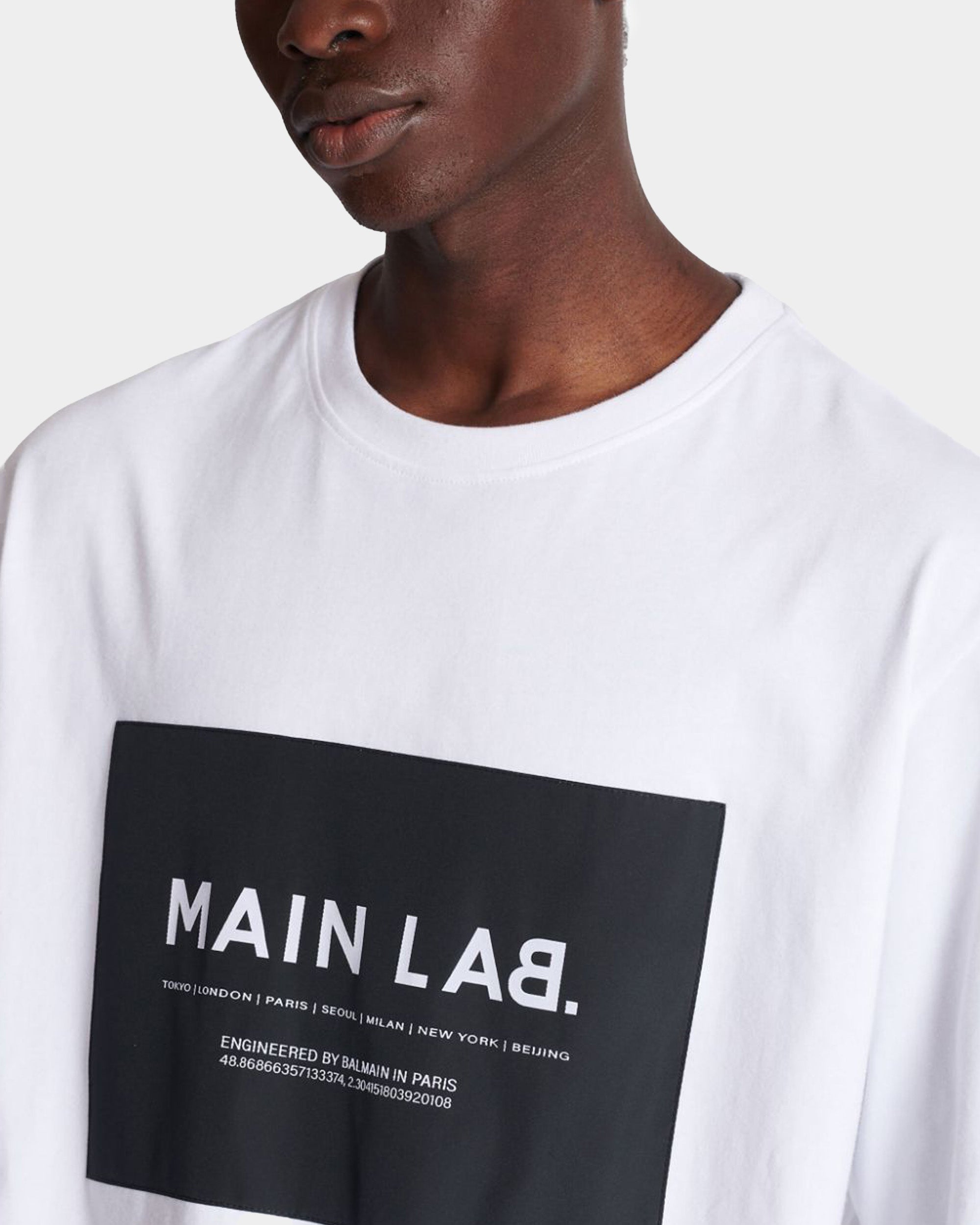 正面以黑底白字「MAIN LAB」對比印花呈現,展現 BALMAIN 簡約摩登風格。採用短袖、圓領設計,剪裁挺身,穿著舒適易搭,適合作為街頭風格或休閒穿搭亮點單品。