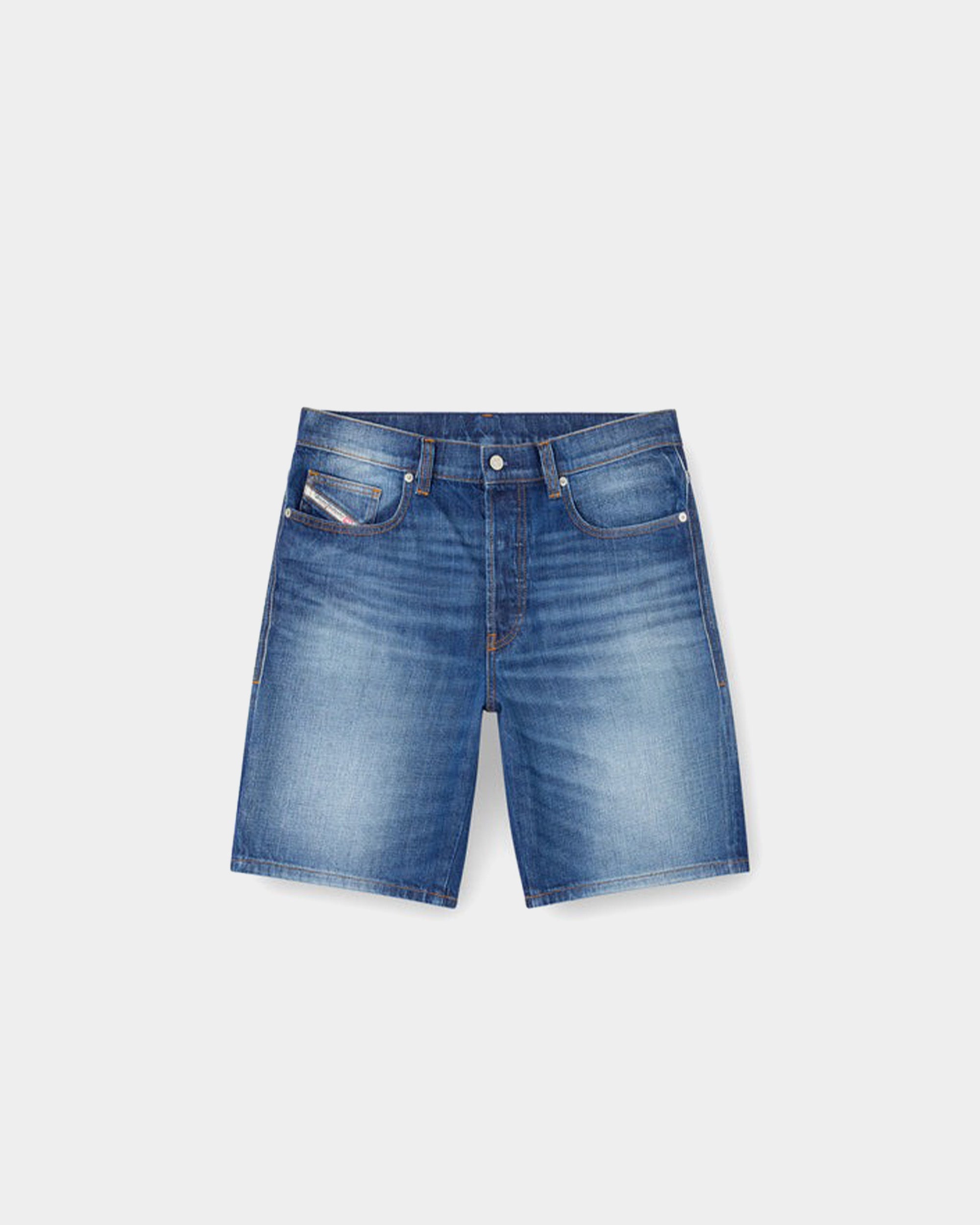 採用 100% 棉材質,呈現經典丹寧布質感,舒適且透氣。短褲設計採用標準五口袋版型,正面鈕扣與拉鍊開合,腰部附有皮帶環,整體版型修身,兼具日常休閒與時尚風格。