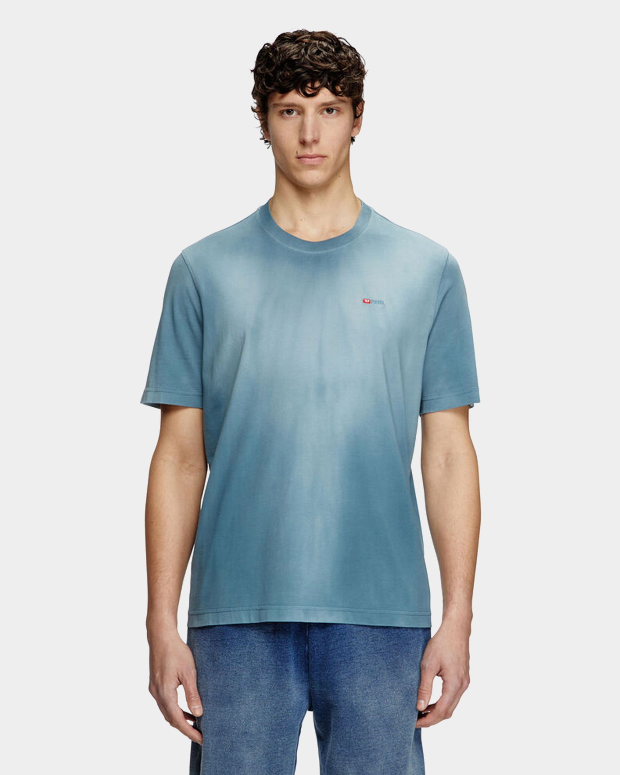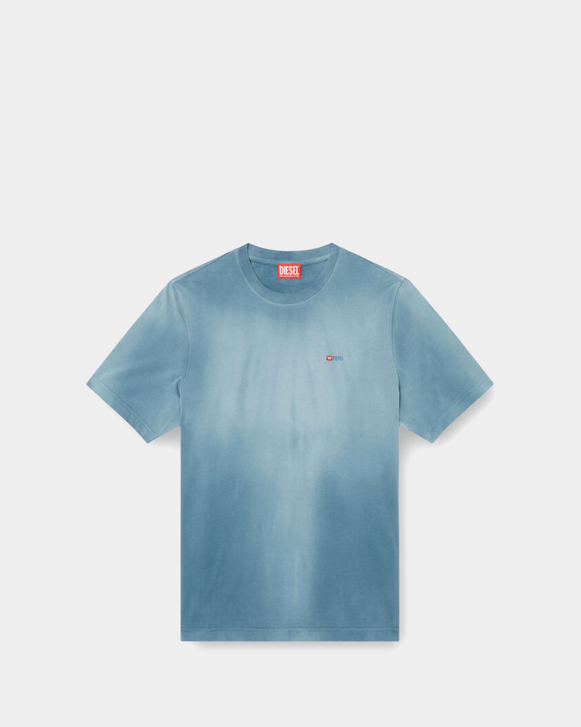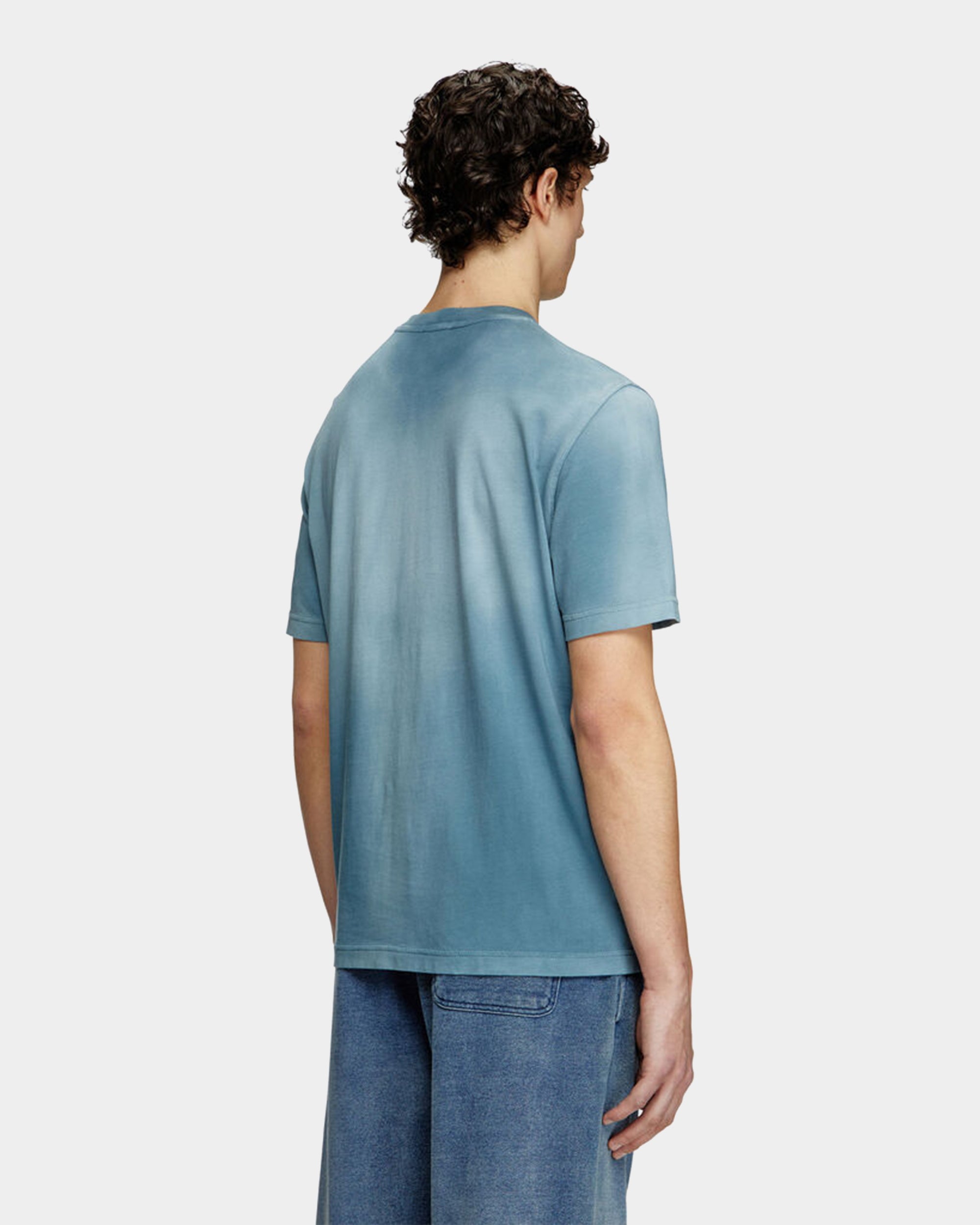 採用 100% 純棉材質,經過漸層水洗處理,從深藍色過渡至淺藍色,呈現自然褪色效果;胸前左側刺繡有紅色 Diesel 字母標誌,增添品牌識別度;經典圓領設計與寬鬆剪裁,提供舒適的穿著體驗,適合日常休閒穿搭。
