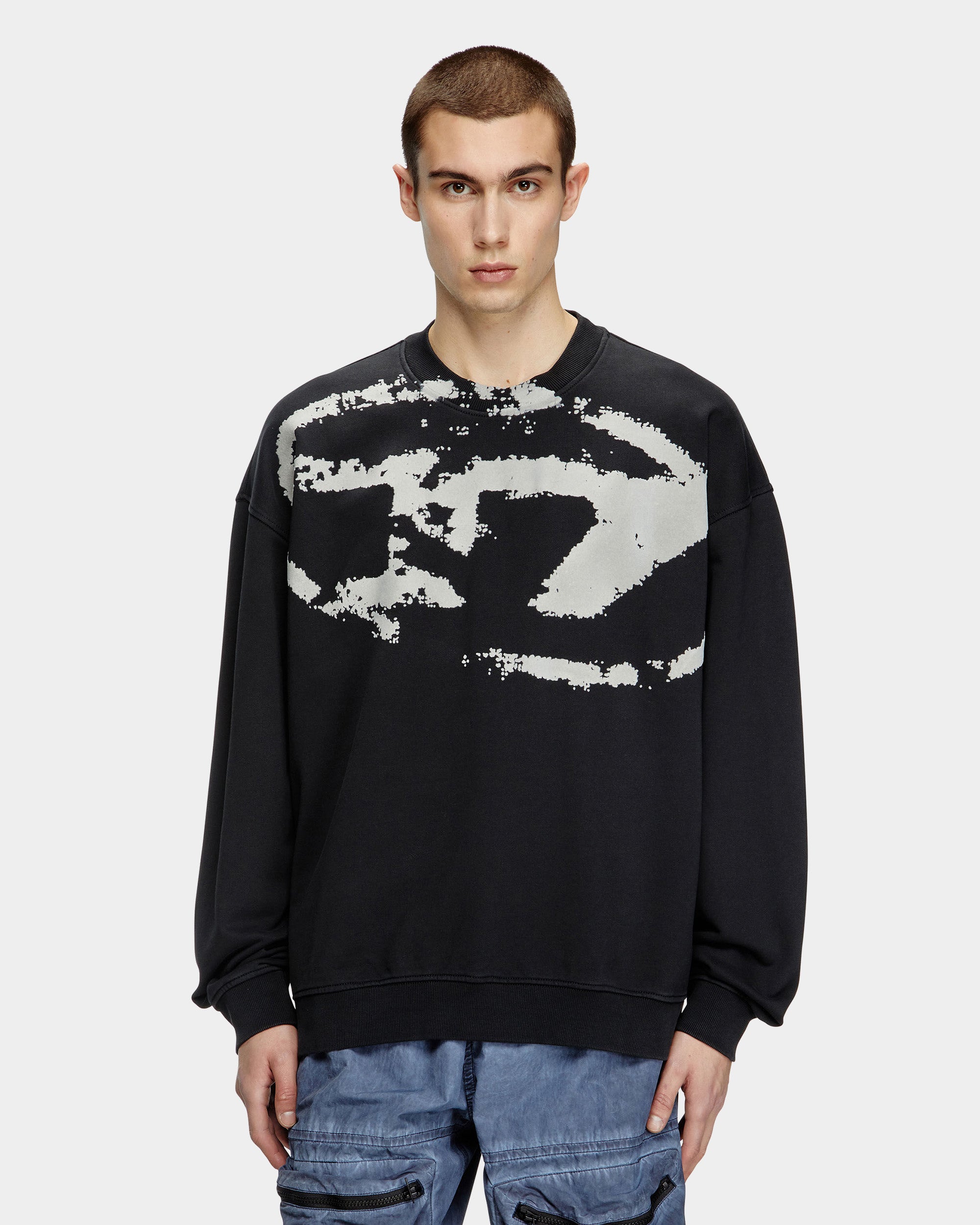 採 100% 棉質針織布製成,衣身經過染色與顔料洗舊處理,展現 復古磨損風格的大尺寸 Oval D 圖案效果,整體呈現寬鬆舒適版型。衣領、袖口與下襬均為羅紋處理,肩線採落肩設計,具備街頭休閒感。