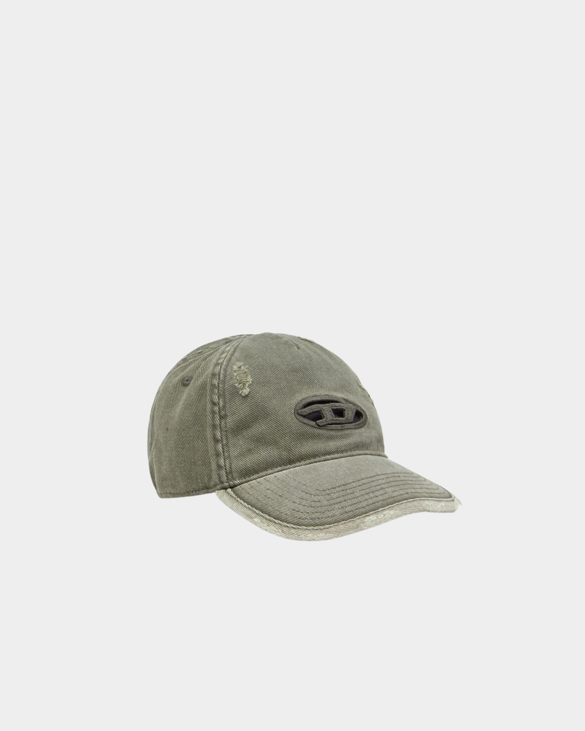 採 100% 棉製成,呈現仿舊破壞風格,搭配大型 Oval-D 標誌,展現 Diesel 標誌性設計美學;帽型含車縫遮陽簷、可調整背帶,兼具實用與時尚細節。