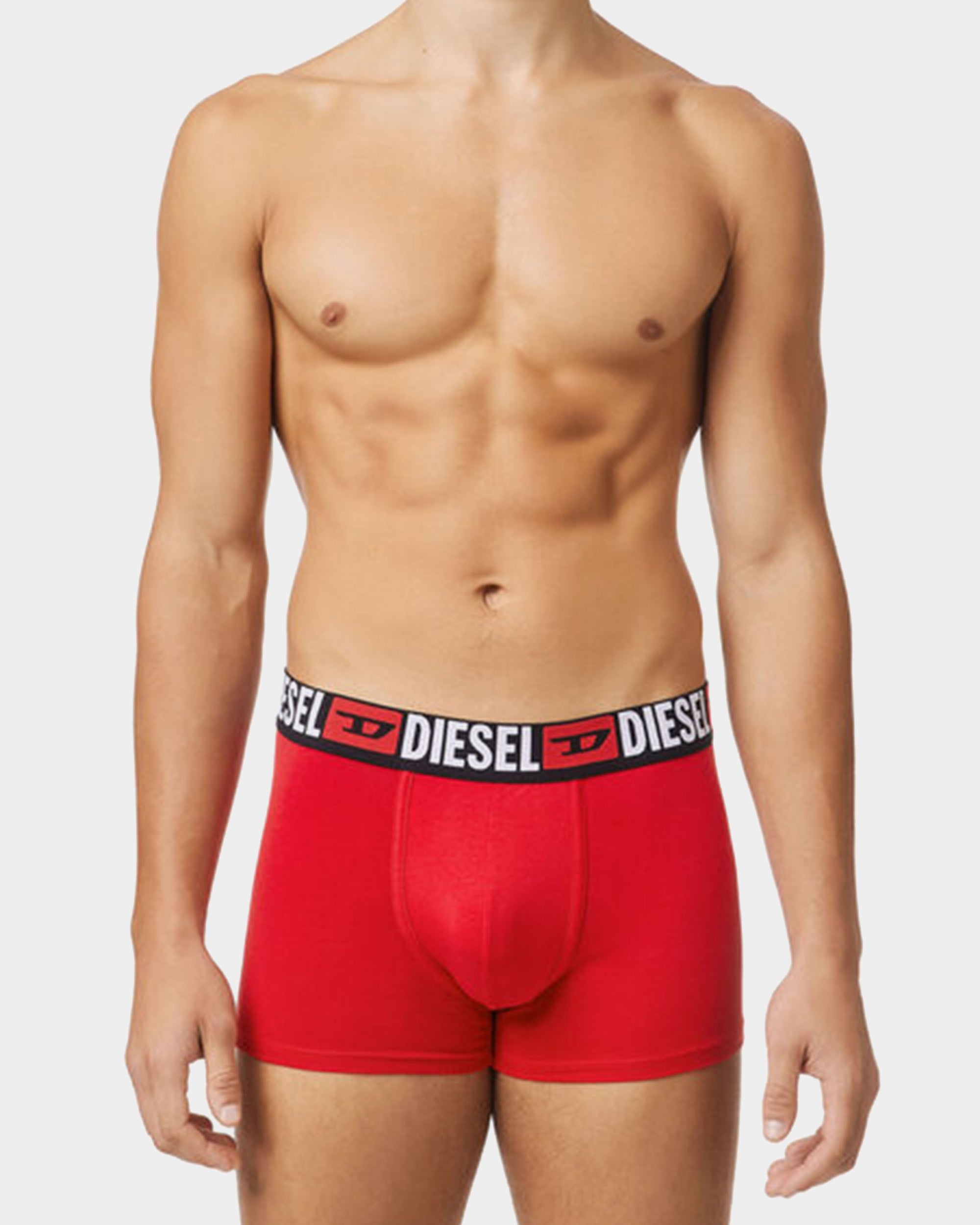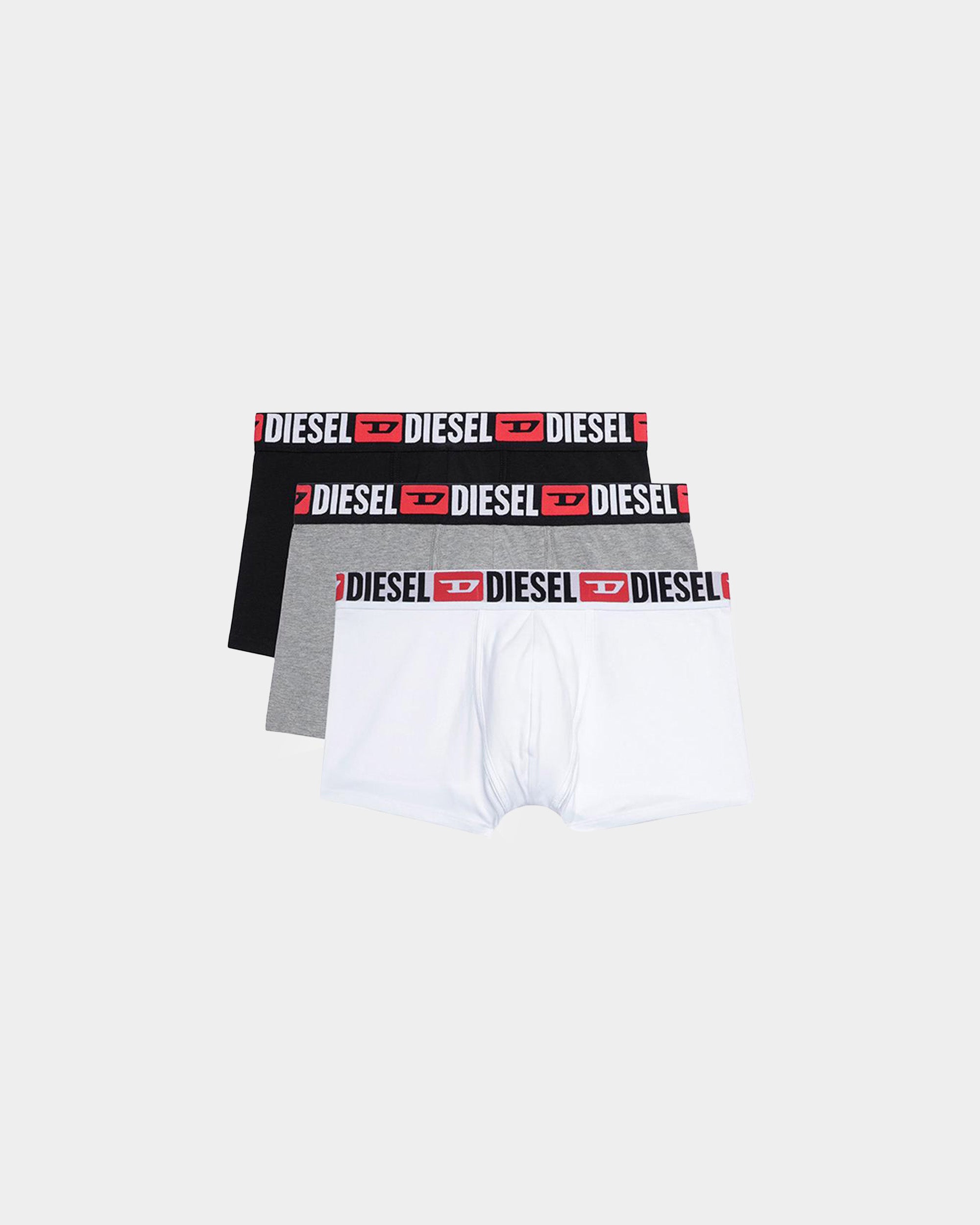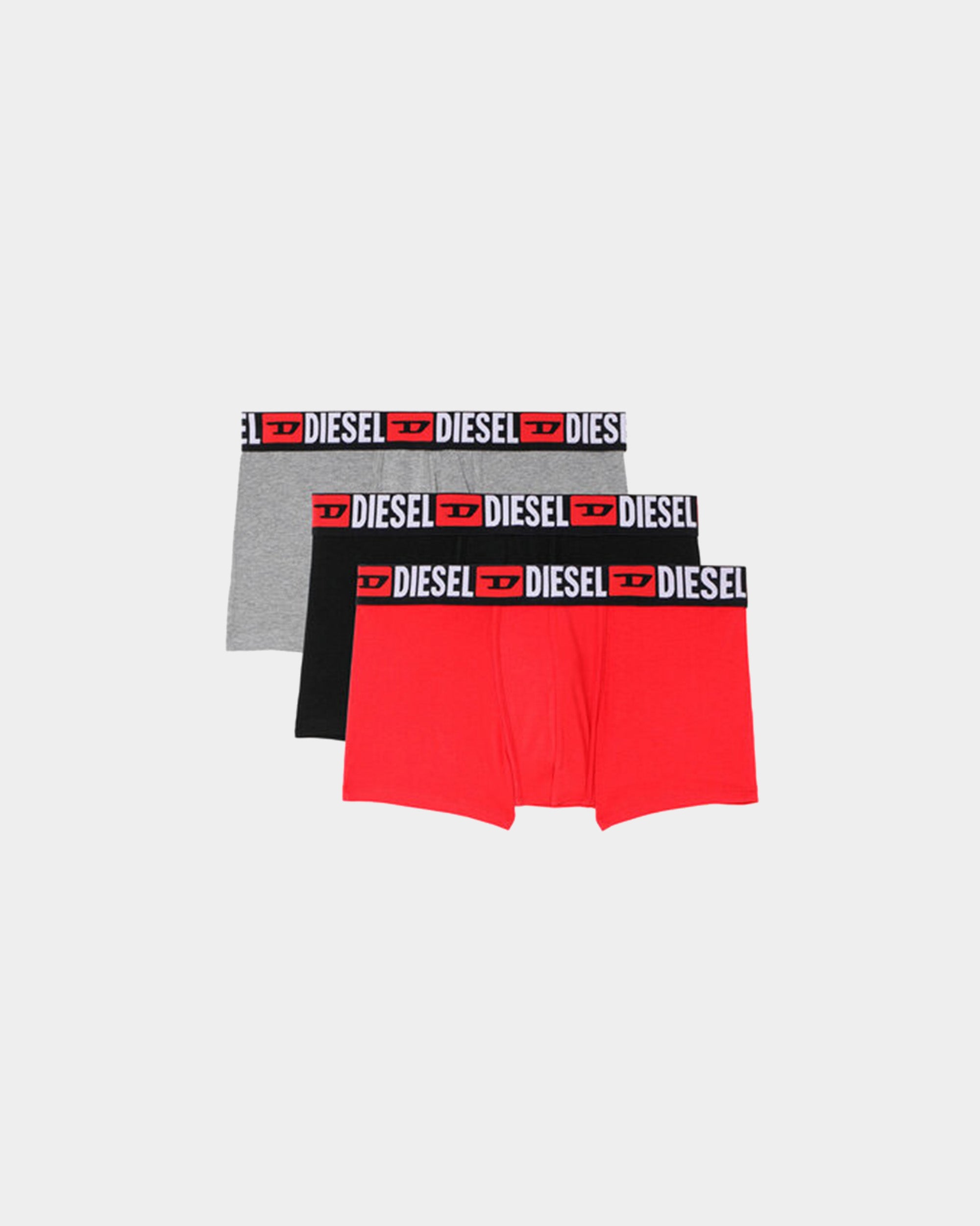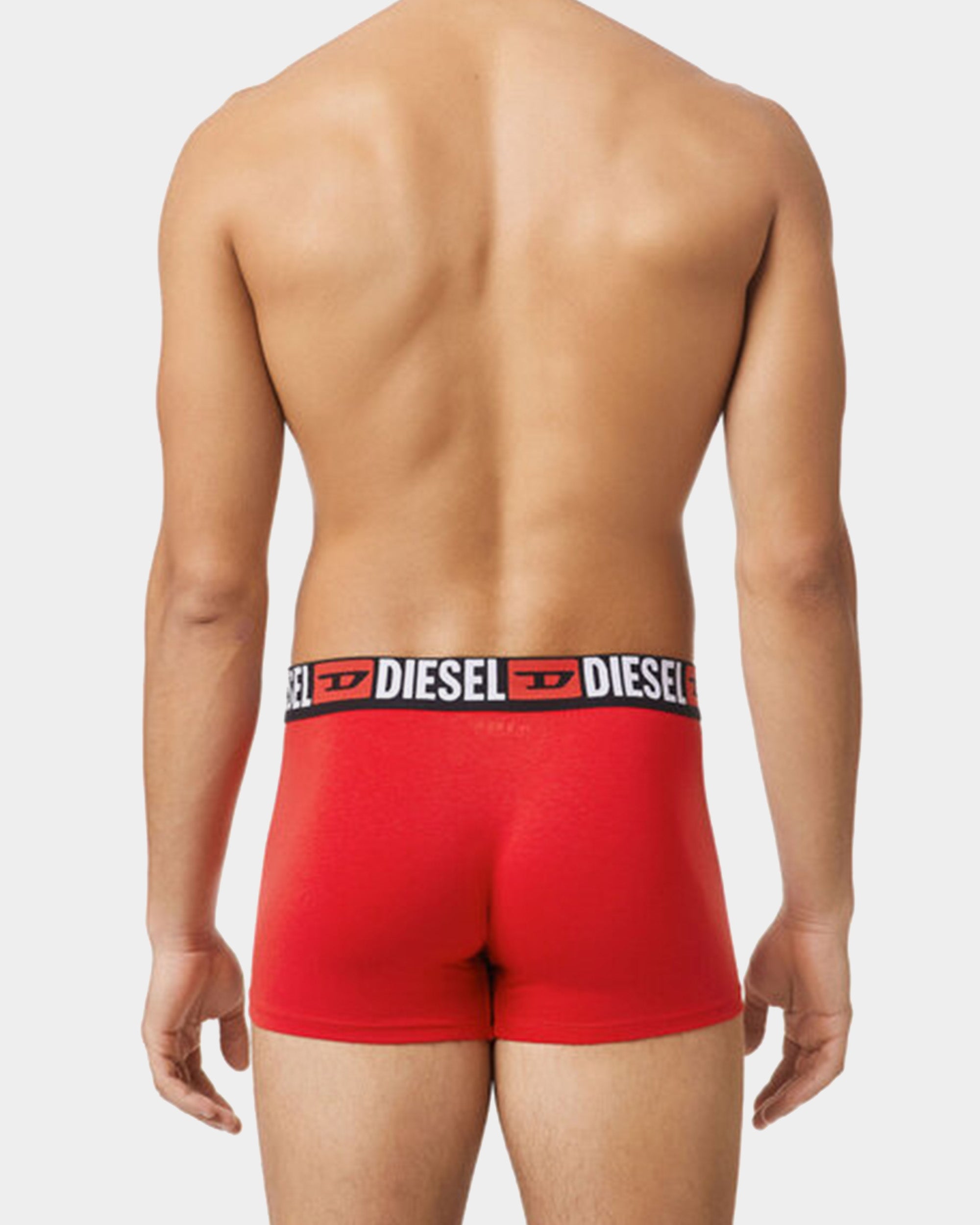 採用經典紅黑 DIESEL Logo 彈性腰頭,貼合穩定不勒腰;柔軟棉質布料結合彈性纖維,舒適透氣,三色組合滿足日常穿搭與運動需求。