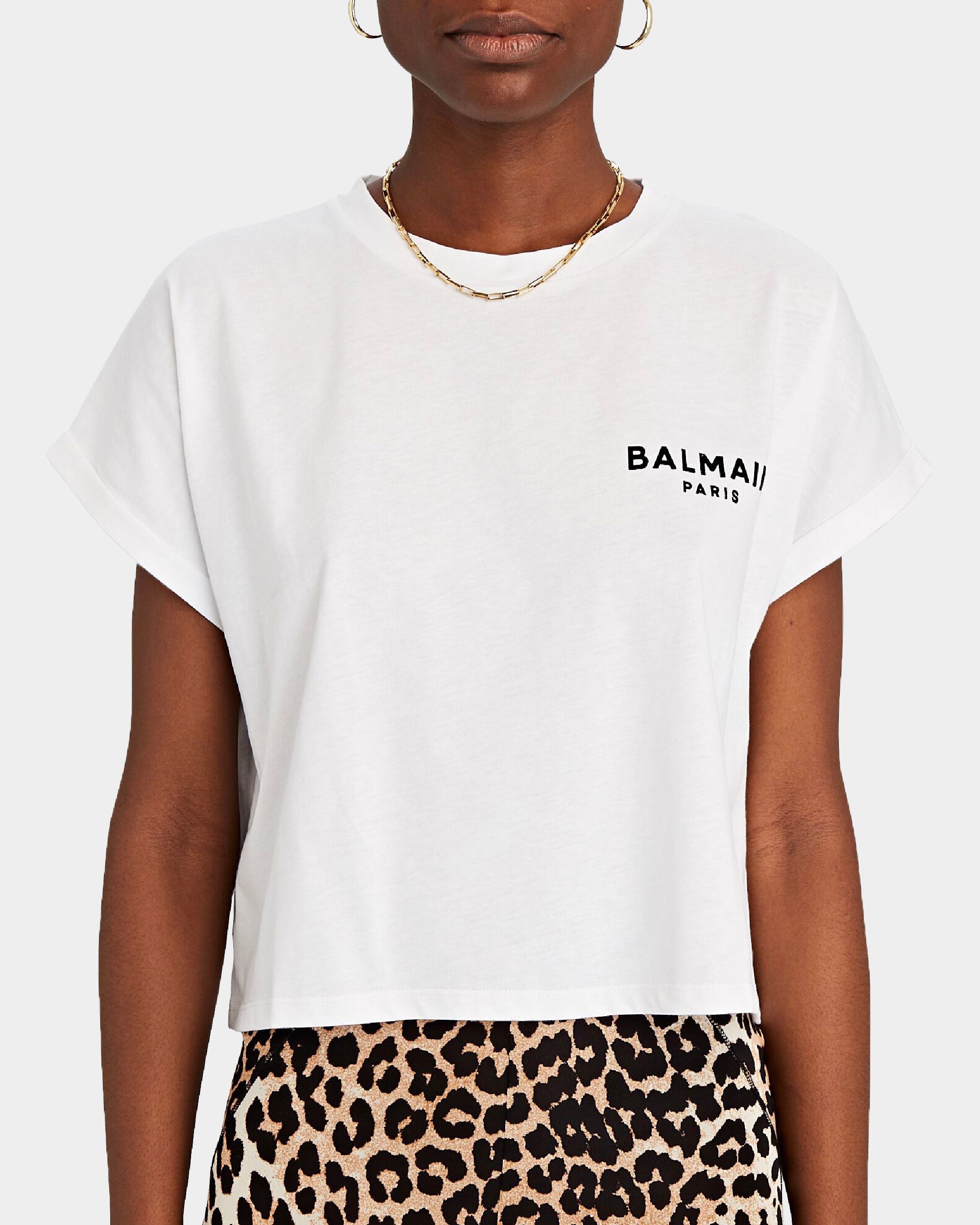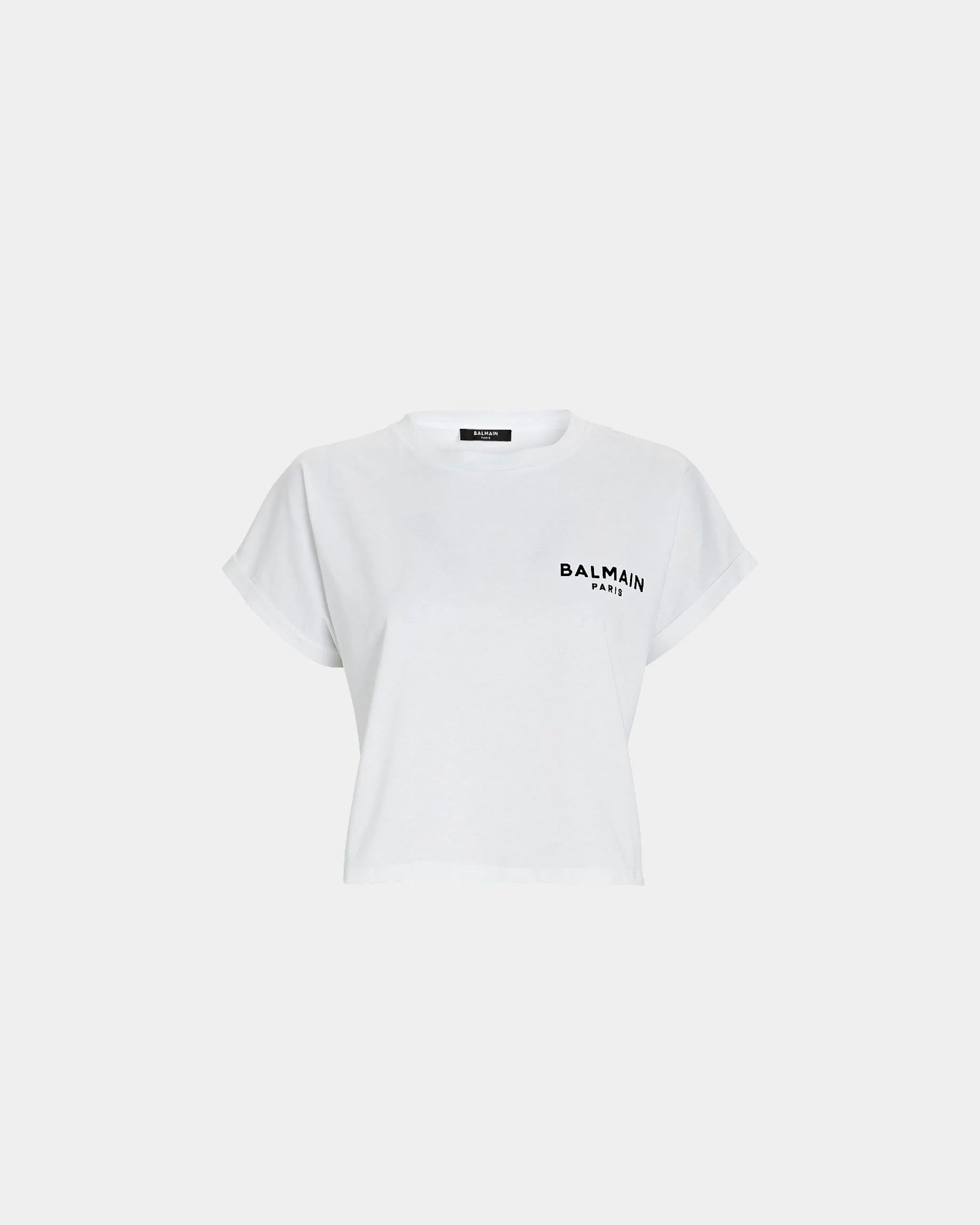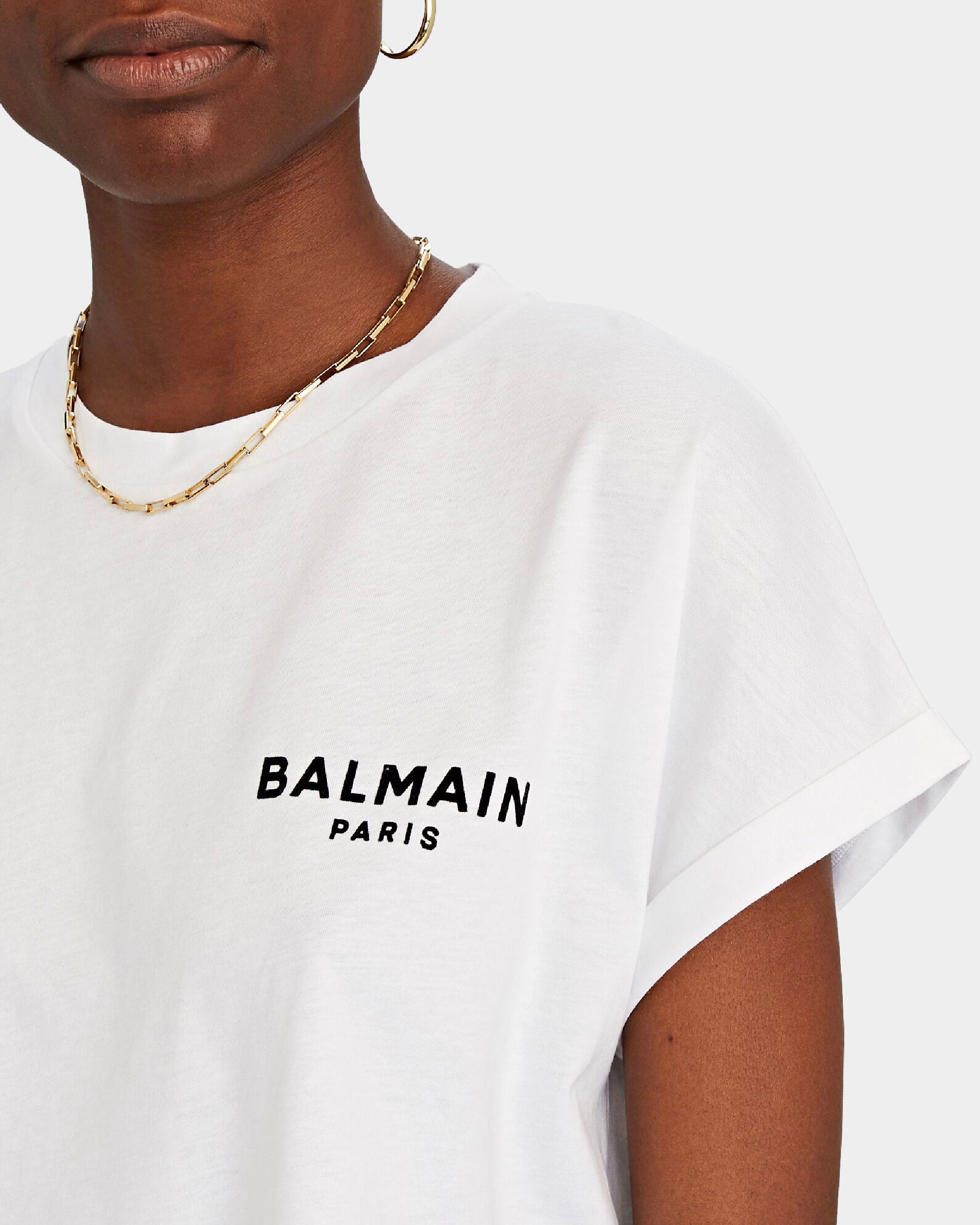 Balmain 將經典 T 恤重新演繹,帶有微微縮短的下擺和前胸的 logo 設計。羅紋針織圓領。