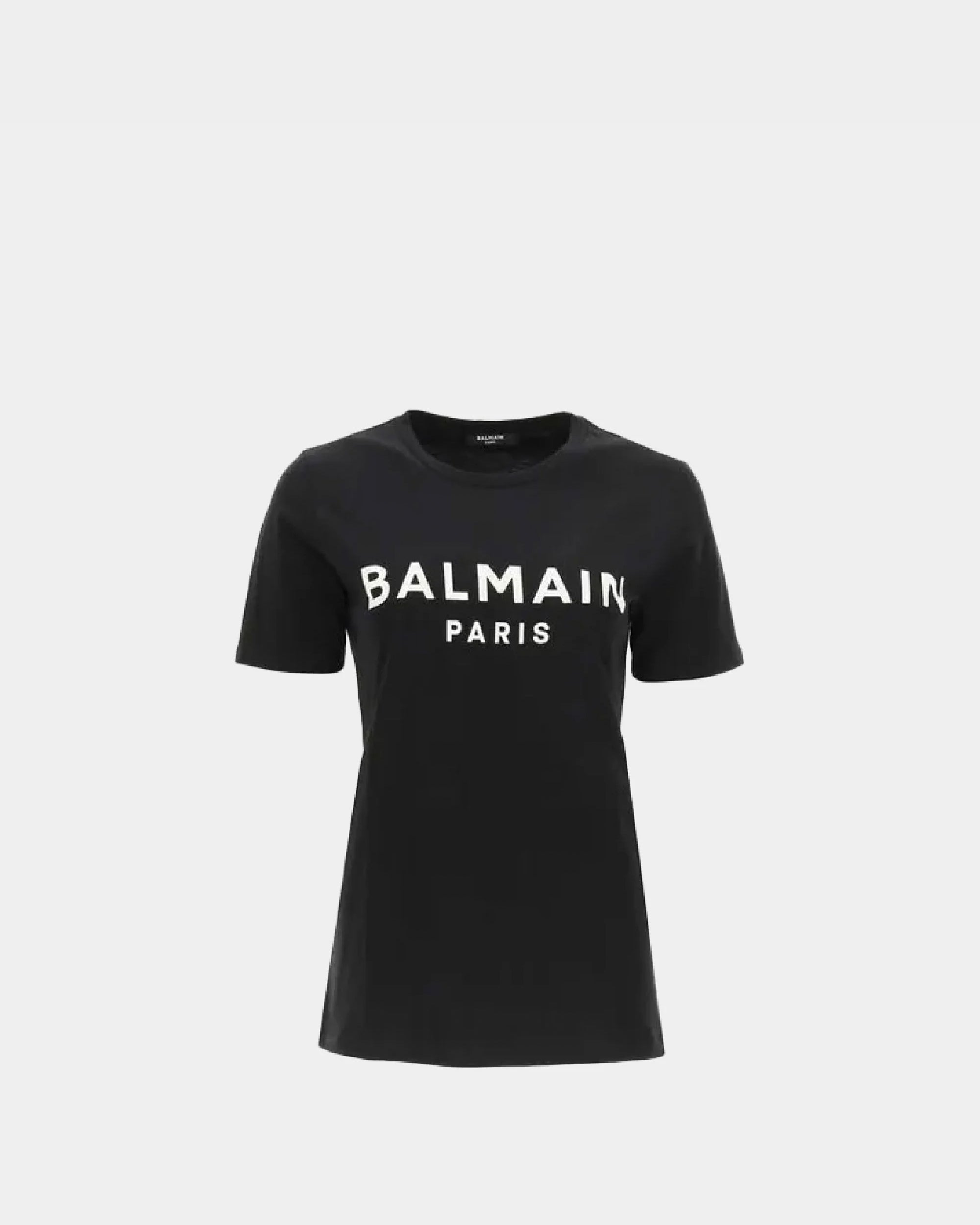 Balmain 的 T 恤展現了品牌對 logo 迷戀的風格。這款圓領款式在胸前印有法國品牌的標誌,對比字母更加突顯其設計。
