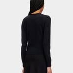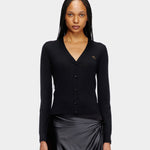 此款開襟衫具有經典的細針織紋理,胸前的圓形「Oval D」刺繡標誌以切割設計呈現,展現品牌獨特的設計風格。袖口處的羅紋效果增添了立體感,整體呈現優雅的修身版型,適合搭配高腰褲或裙裝,展現時尚感。