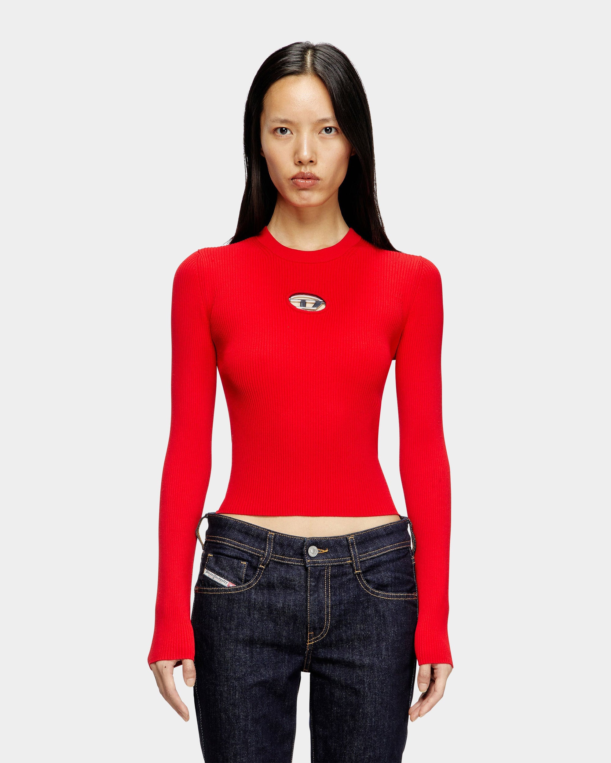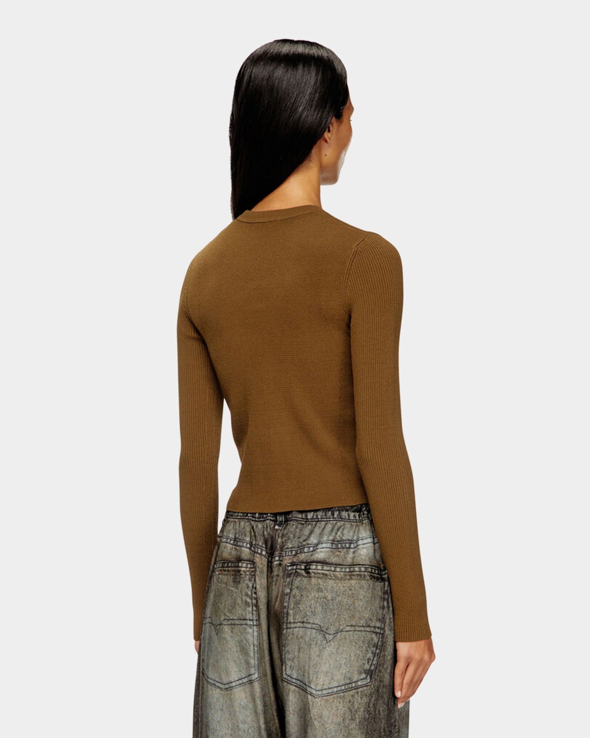 採用柔軟的羅紋針織面料,提供舒適的穿著感受。設計上採用修身剪裁,圓領與長袖設計,展現簡約而不失細節的風格。胸前的金屬圓形「D」字母標誌,嵌入於胸前的切割處,為整體造型增添一抹亮點。