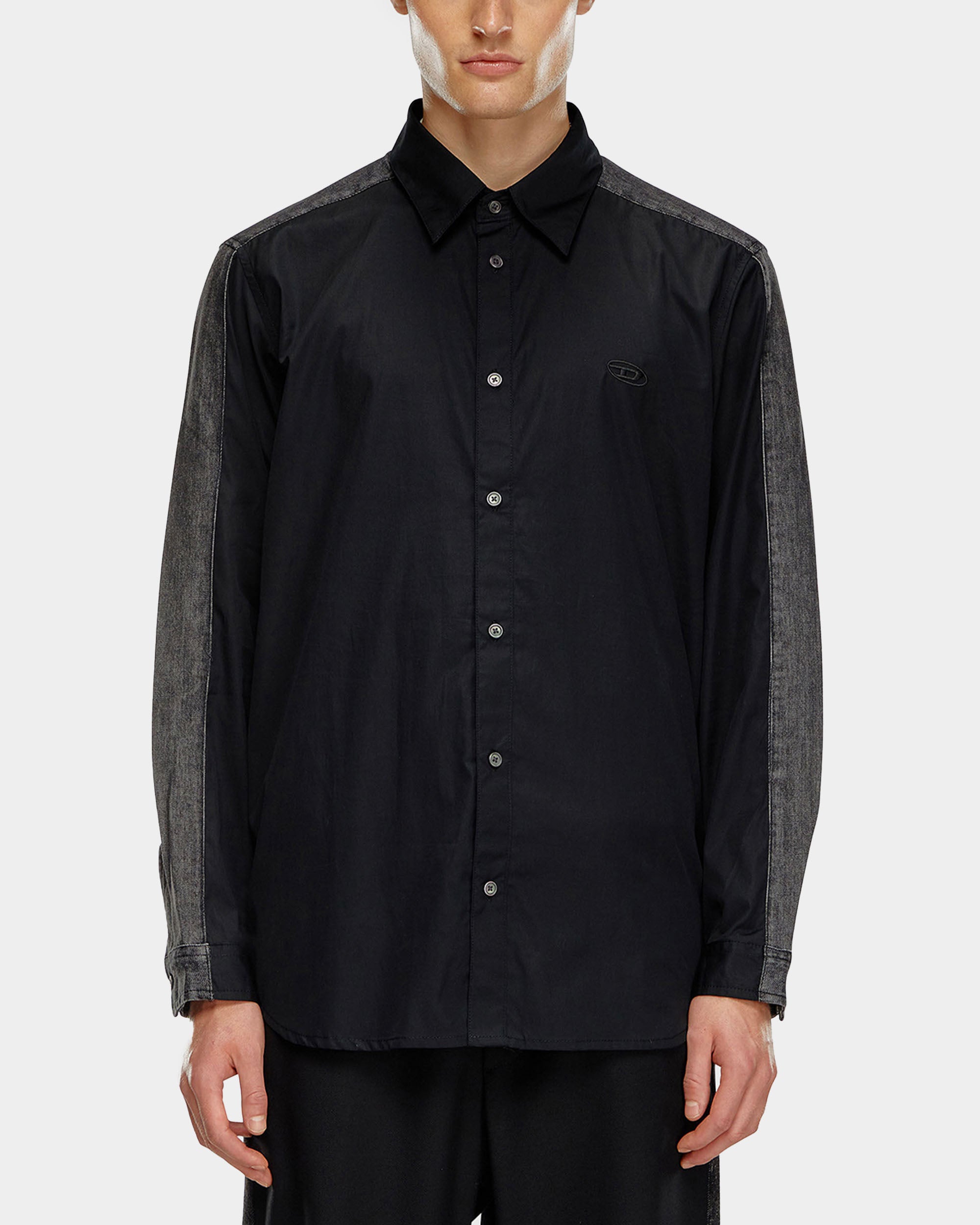 DIESEL 府綢棉拼接丹寧長袖襯衫