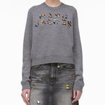 柔軟的高級針織材質為基底,將繽紛的多彩人造寶石手工點綴成品牌標誌,為經典的灰色毛衣注入華麗且充滿玩心的復古時尚感。