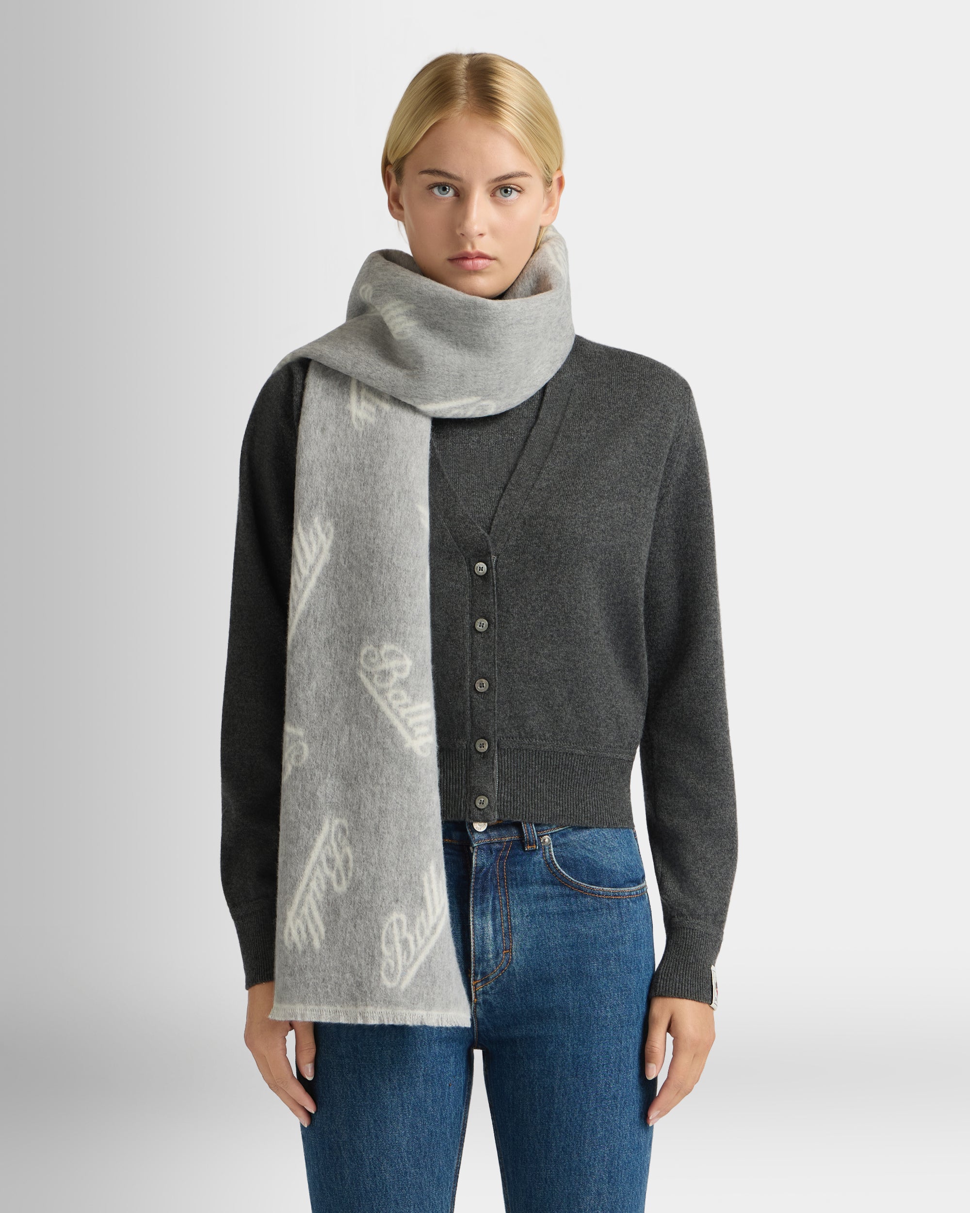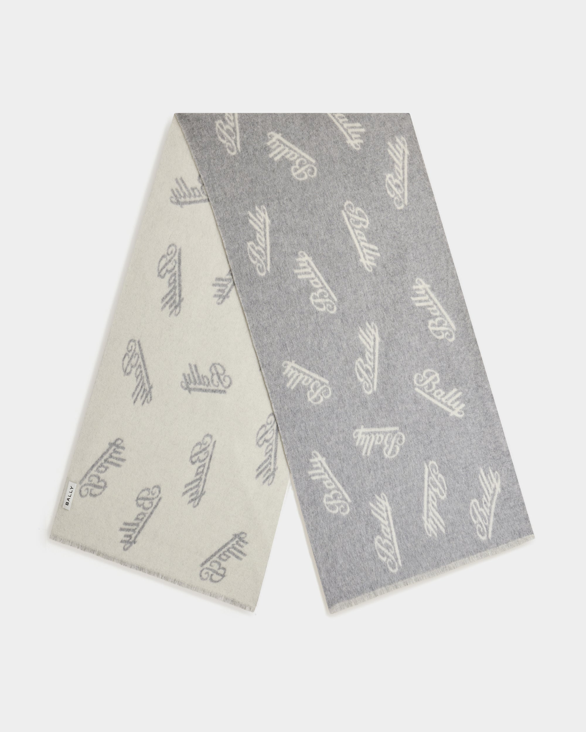 採用 100% 羊毛製成的提花針織圍巾,整體以草寫 Bally 標誌圖案點綴。
