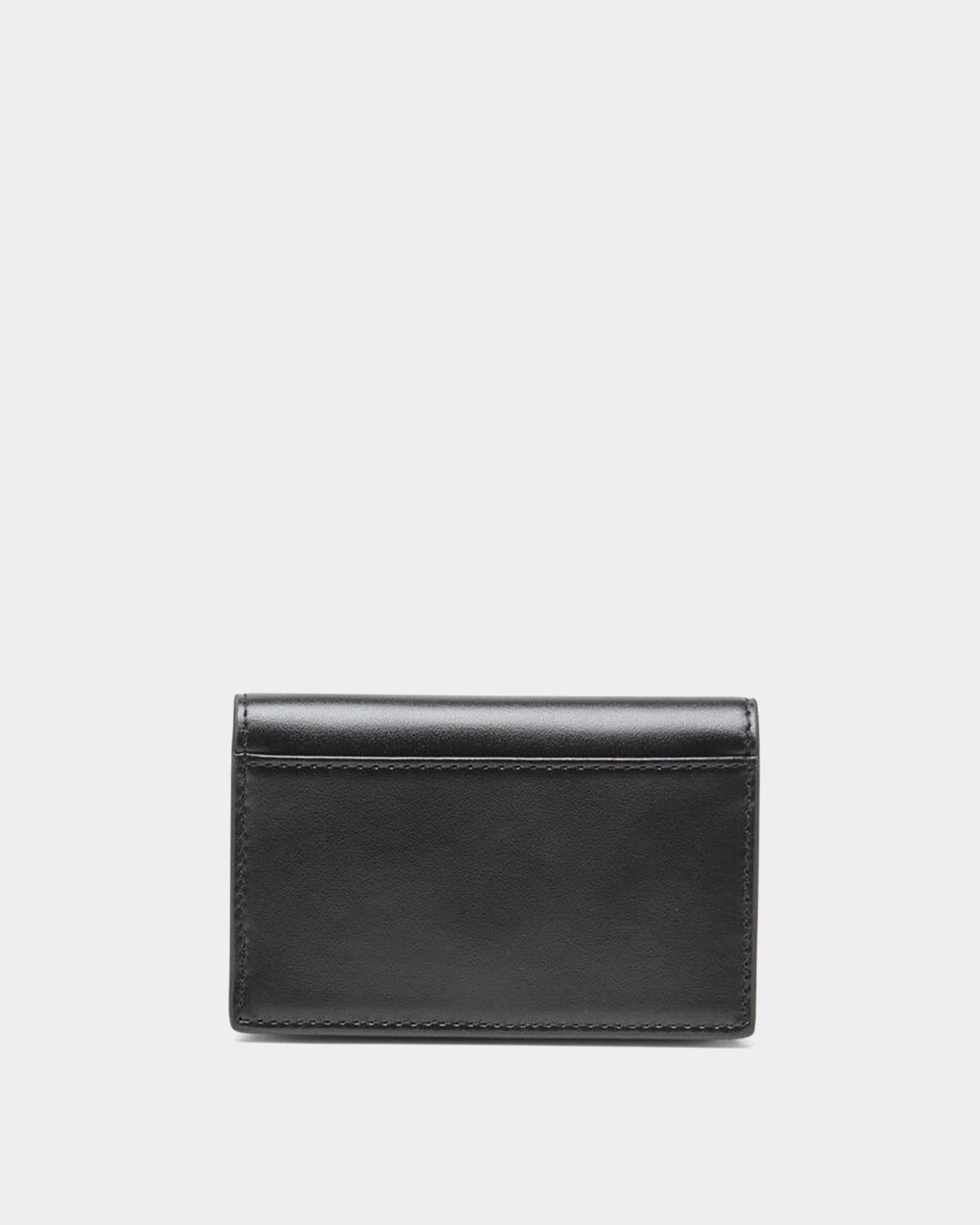 光滑黑色皮革製成,正面鑲嵌金屬搪瓷 Oval D 標誌,展現品牌辨識度;多卡層設計搭配按扣開合,方便收納卡片與票據,兼具時尚感與實用性。