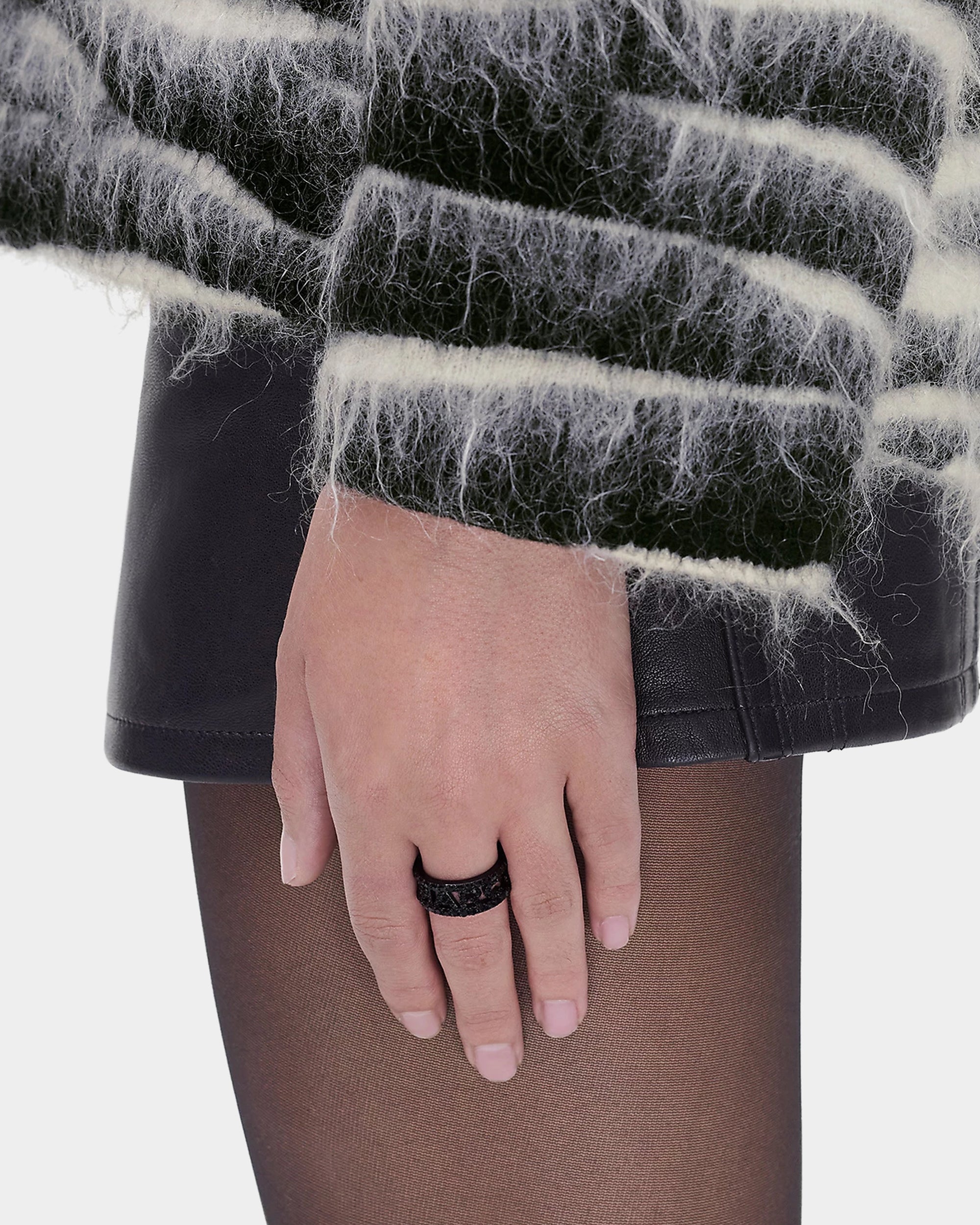 經典「MARC」字樣環繞戒圈設計,鋯石鋪鑲,風格前衛有型。