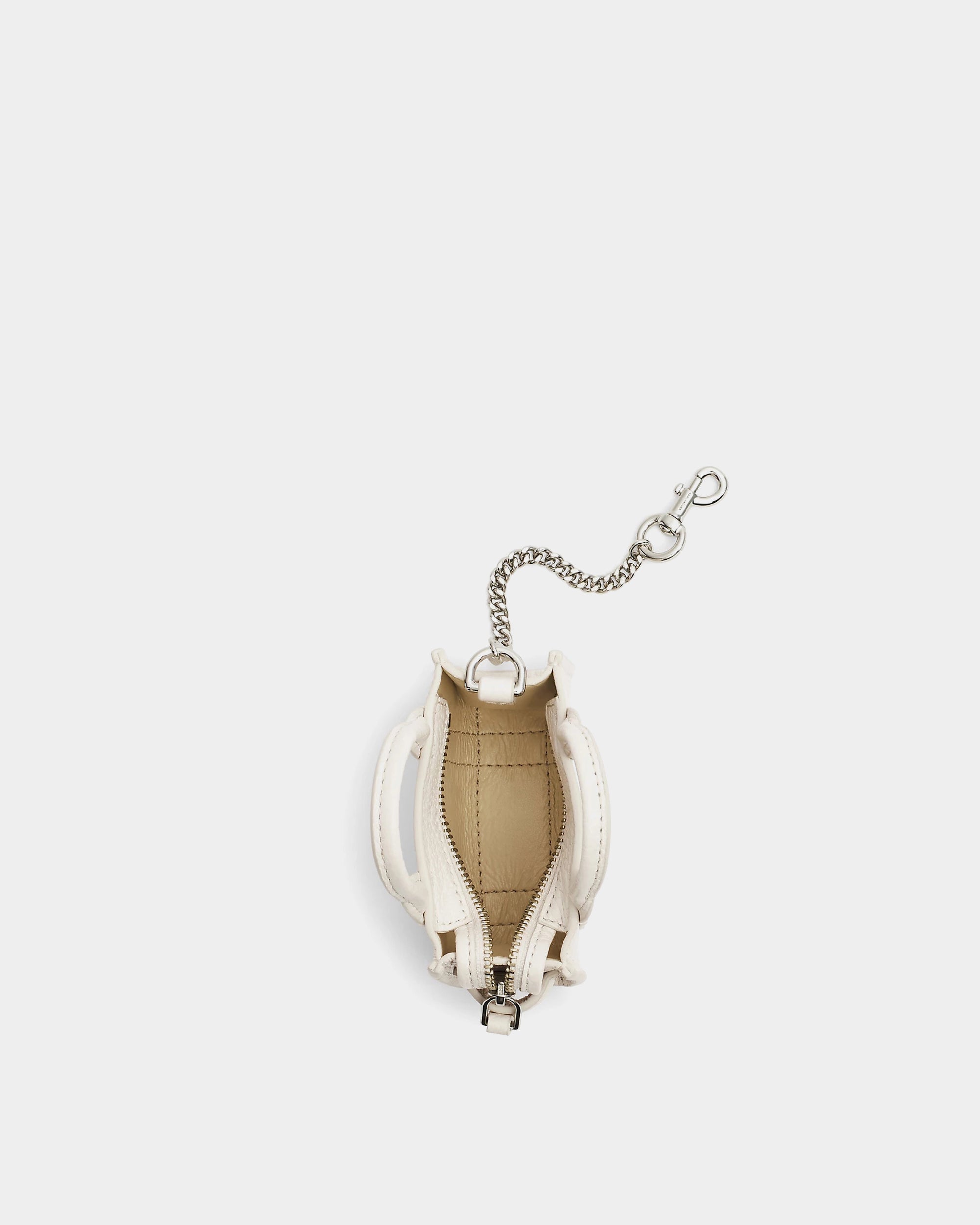 經典托特包為靈感,縮小比例打造的 Nano 吊飾款式。採用顆粒感皮革製成,附有金色鍊條與掛勾可吊掛於包袋或鑰匙上,造型可愛具收藏價值,同時也可作為收納小物使用。正面壓印品牌標誌,細節精緻講究。