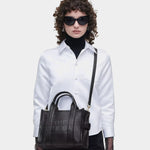 小型托特包選用奢華全粒面皮革製成,簡約設計中融入壓紋品牌標誌,展現低調質感。搭配寬版拉鍊開合,內部設有插袋與卡片槽,提供實用收納空間。可手提,也可搭配可調可拆的皮革斜背帶,靈活變換造型。THE™ 系列之一。