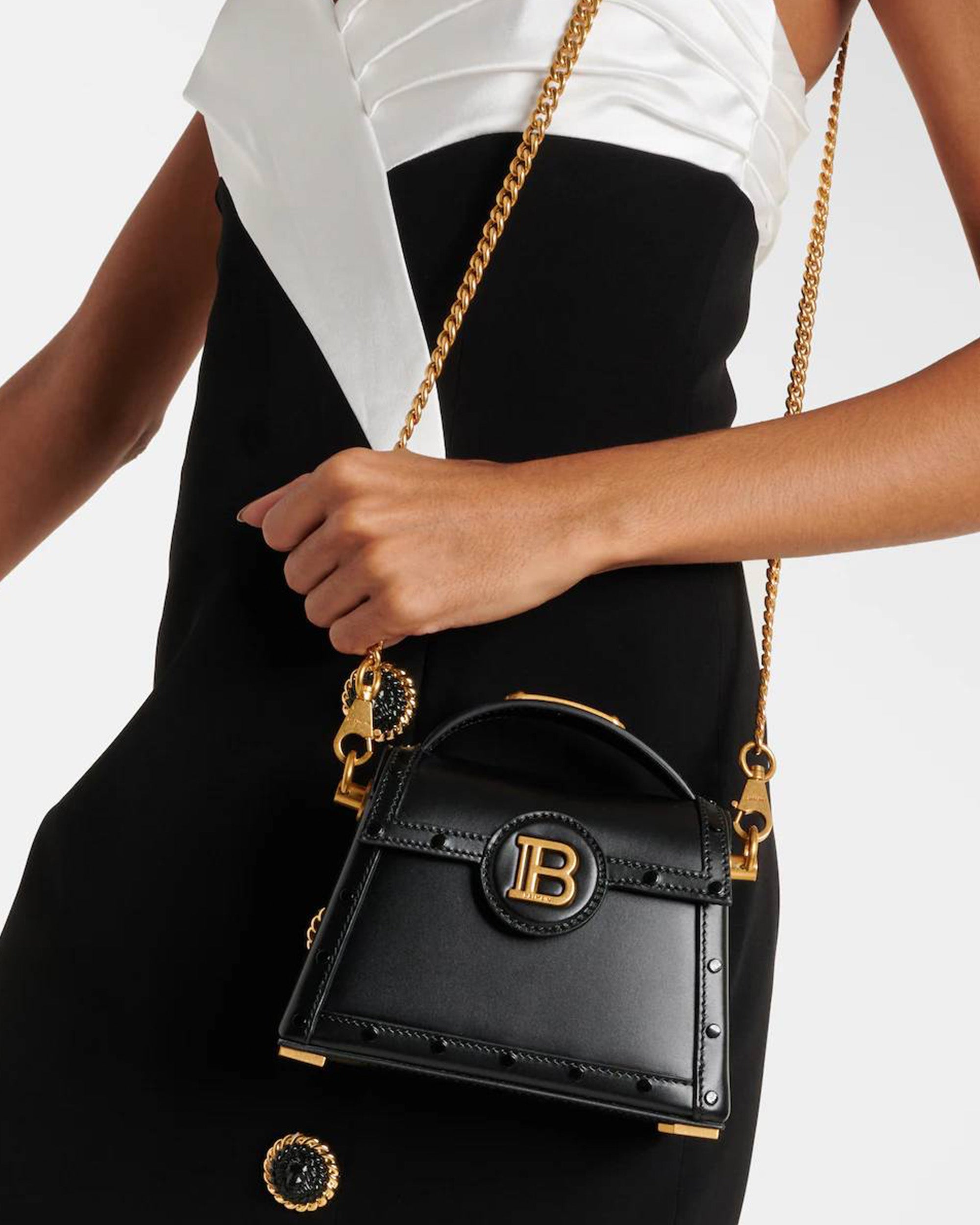 以結構俐落的梯形輪廓搭配金色 B 標誌五金,展現 Balmain 典雅與力量並存的風格。