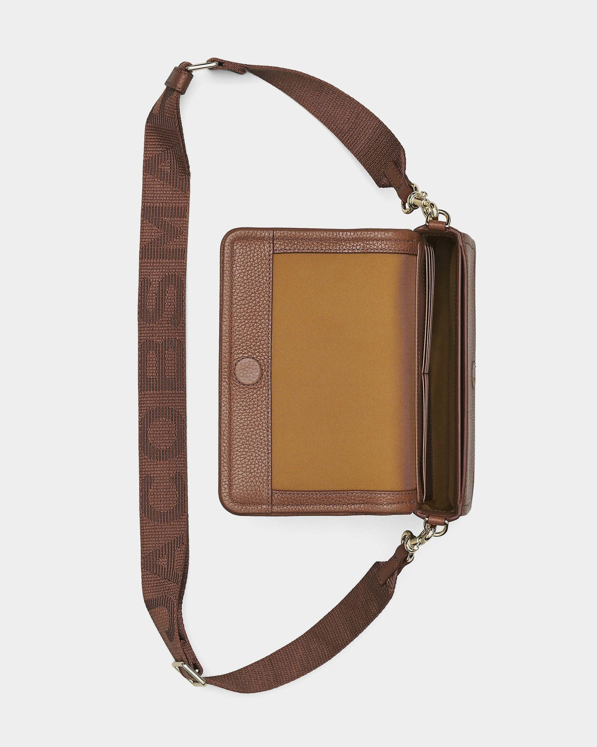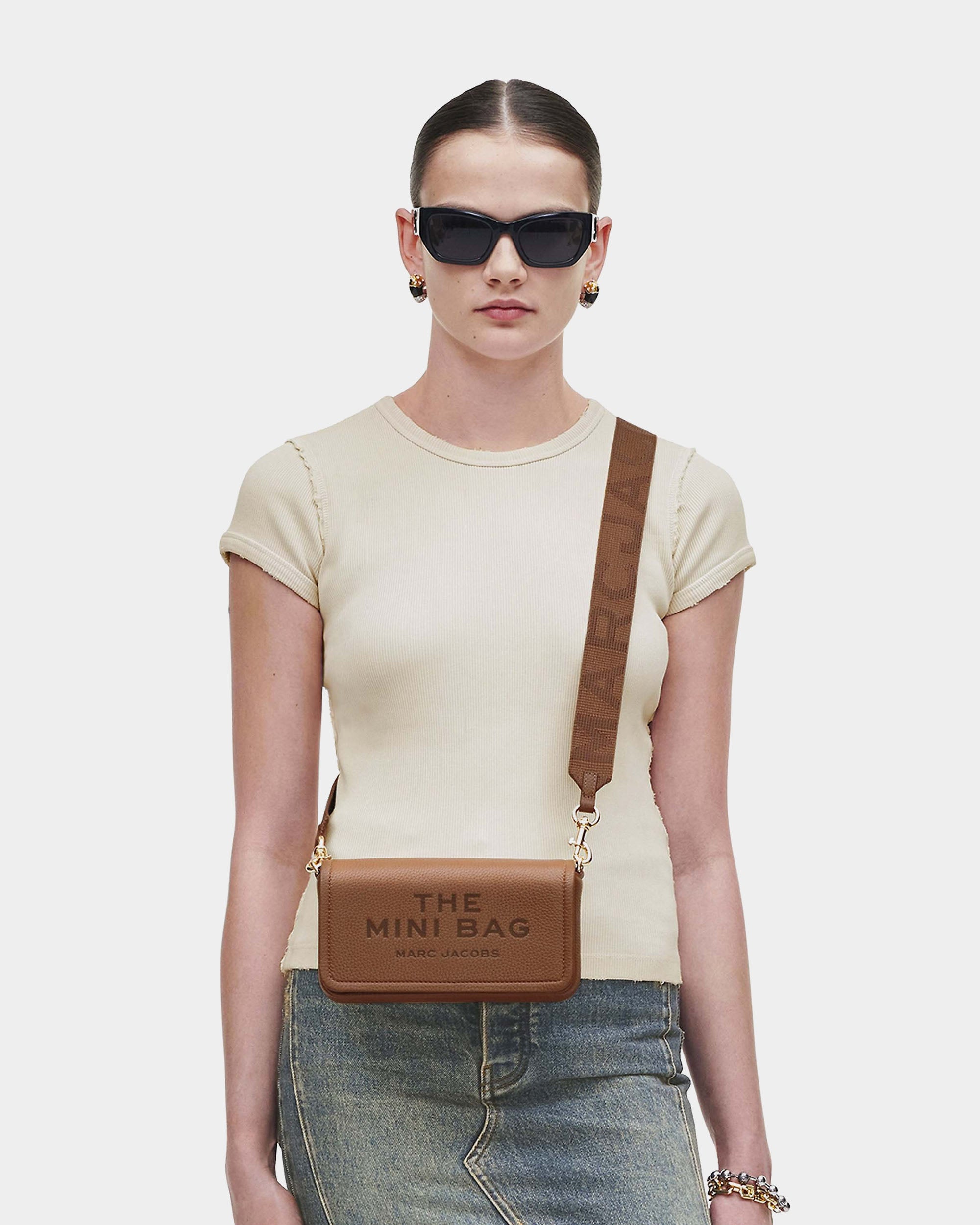這款迷你包採用全粒面牛皮製成,外觀簡約大方,正面印有品牌標誌,展現低調的奢華感。內部設有一個插袋和八個卡位,實用性十足。附有可調整且可拆卸的 LOGO 網織肩帶,方便手提或肩背。