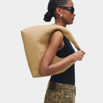 此款包採用頂級全粒面牛皮材質,具備磁扣開合設計與單手提把,側邊附有可滑入的肩背帶,包內含拉鍊暗袋與滑袋,兼具時尚輪廓與日常實用。