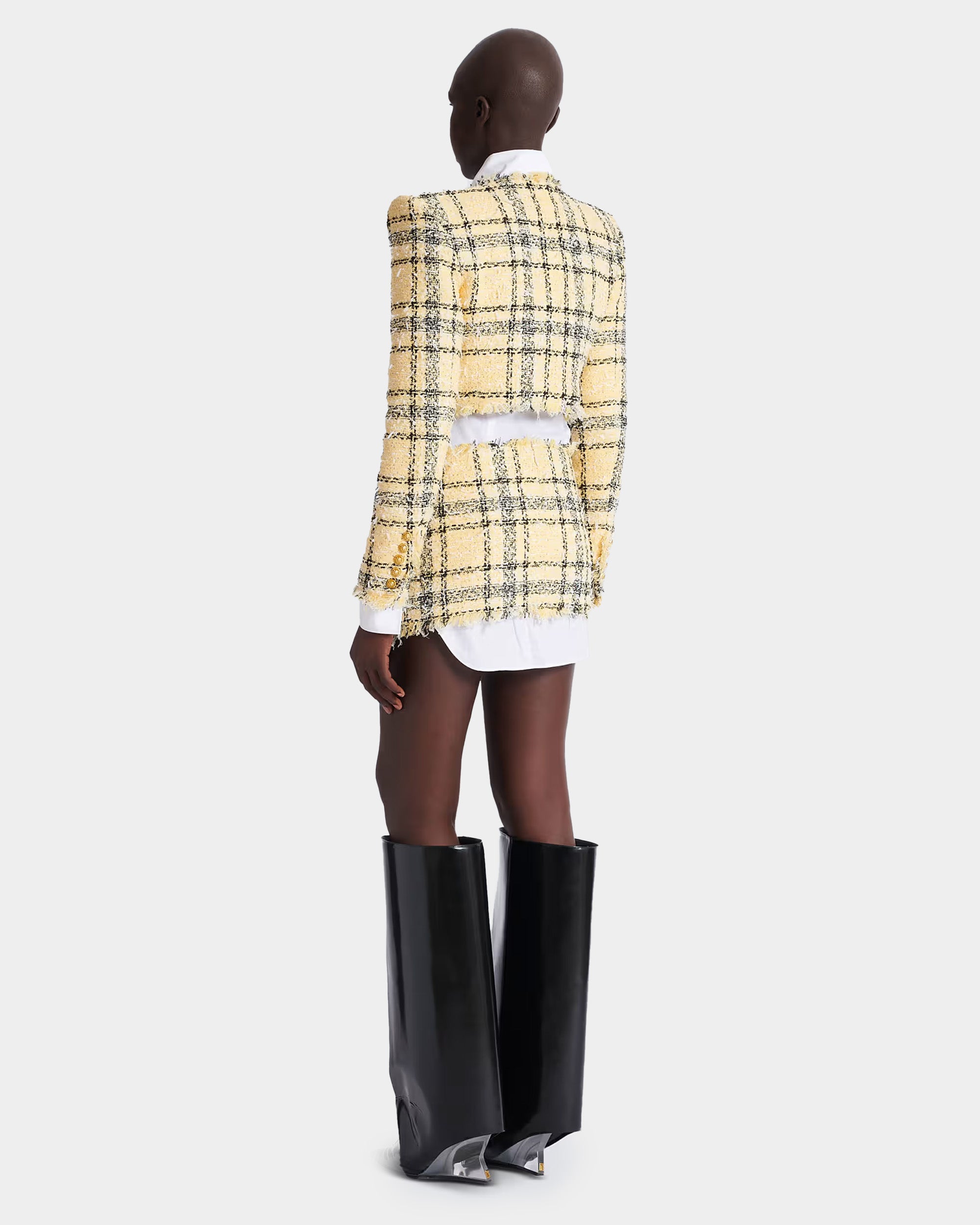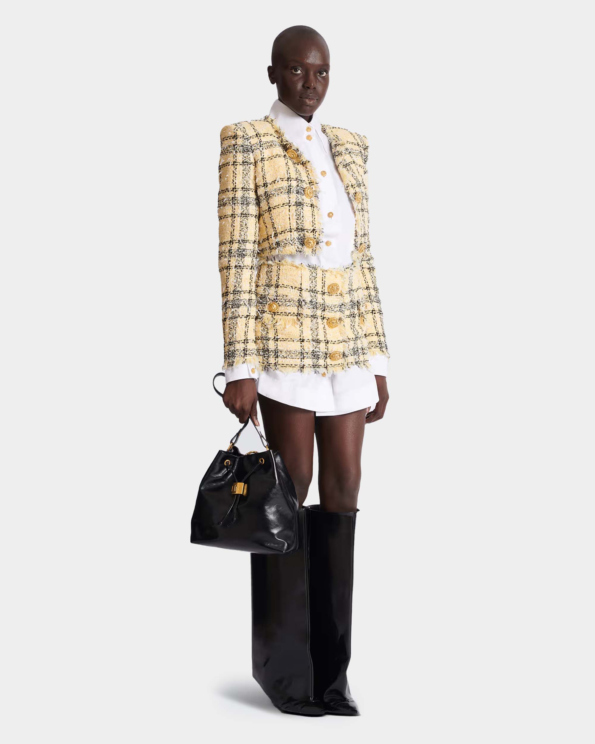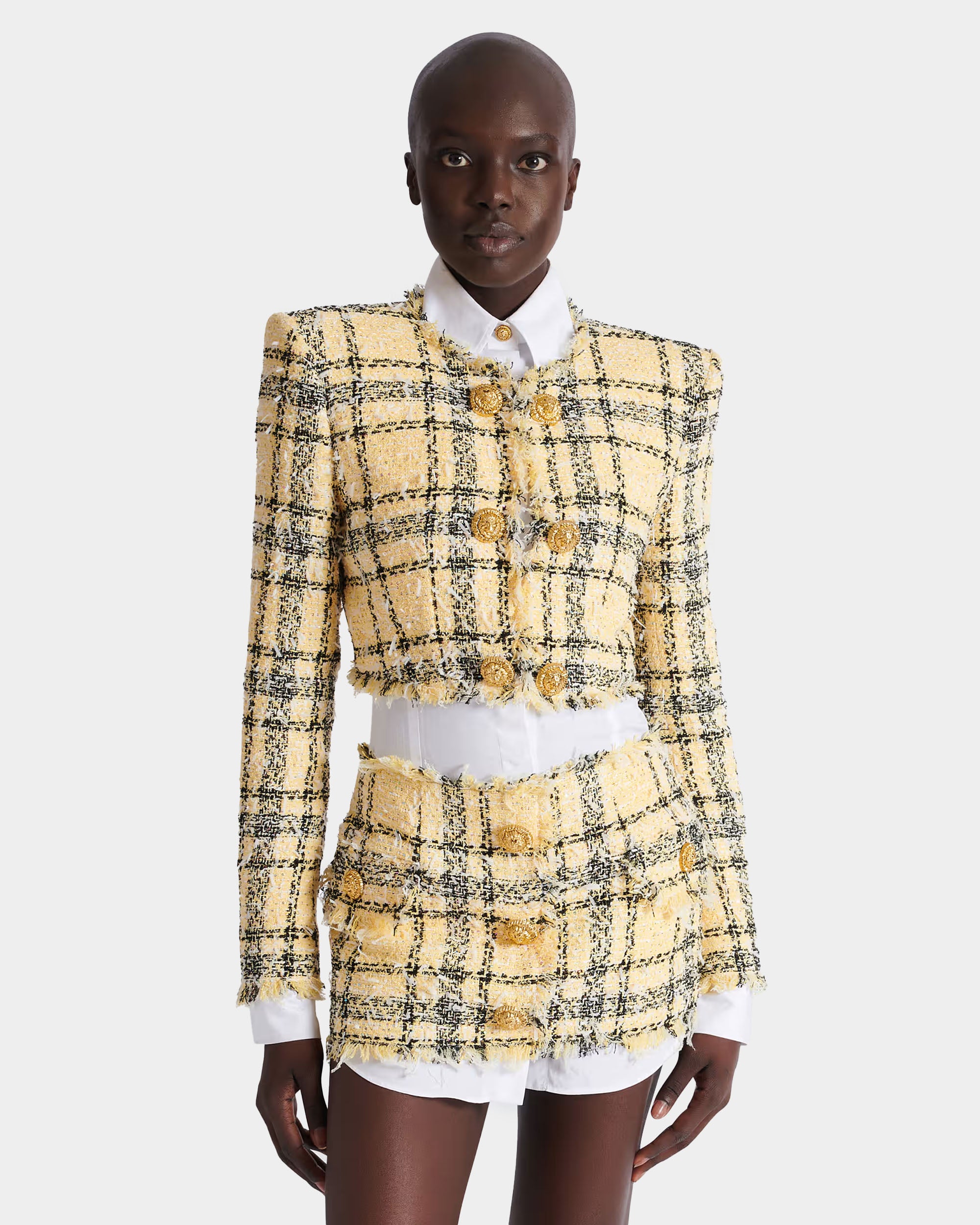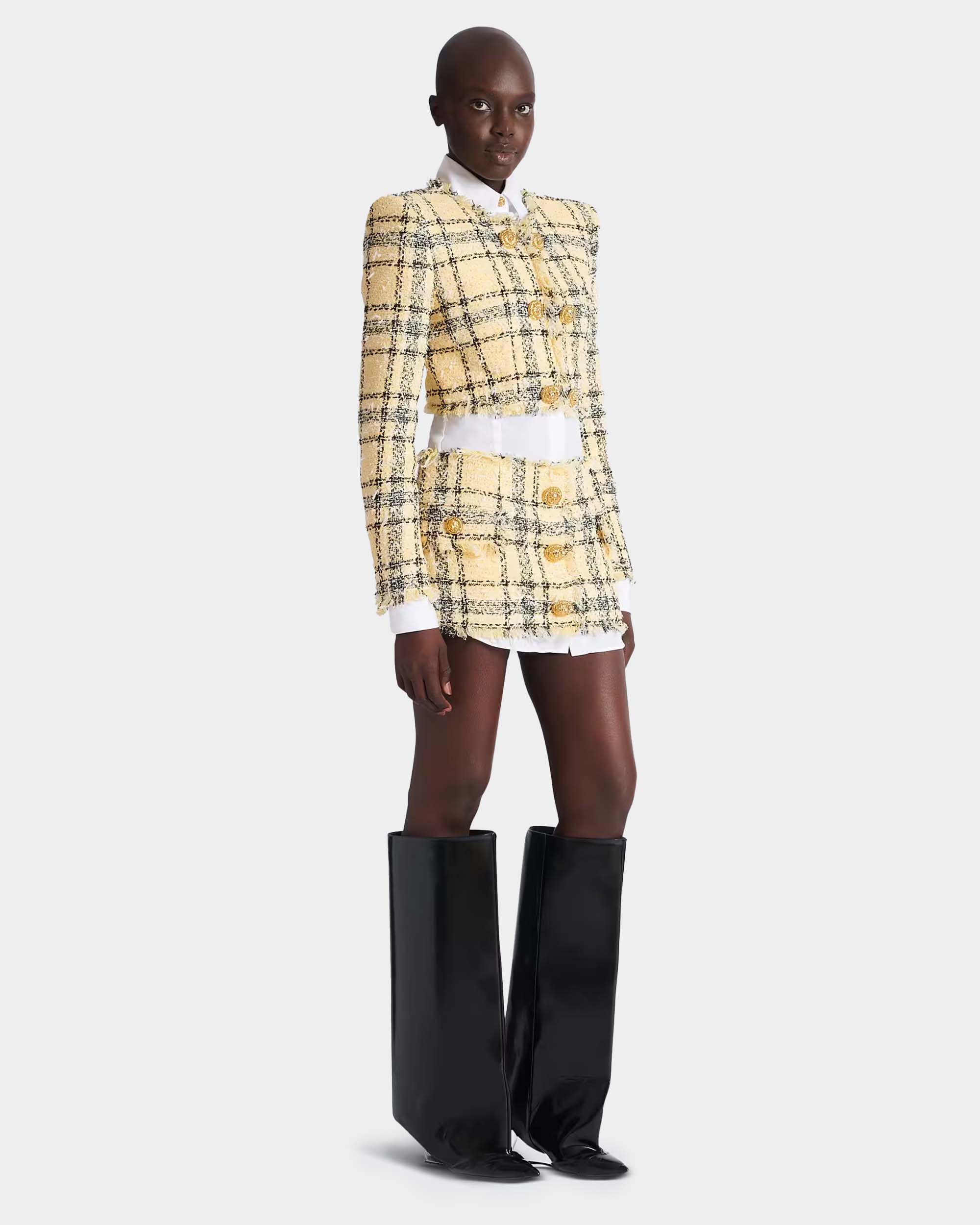 BALMAIN 亮蔥花呢鈕扣迷你裙