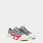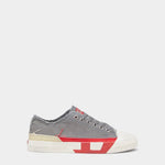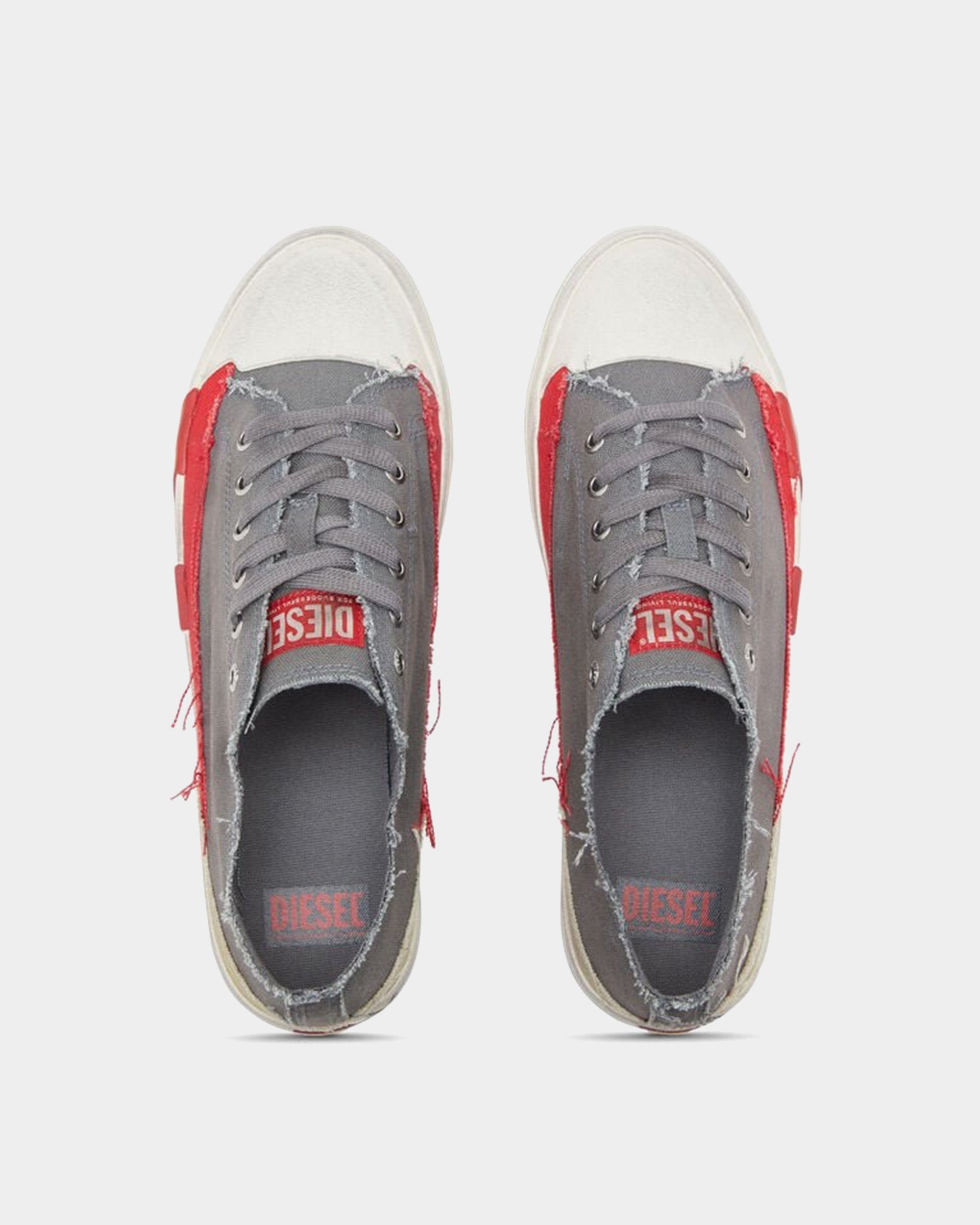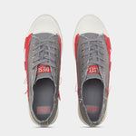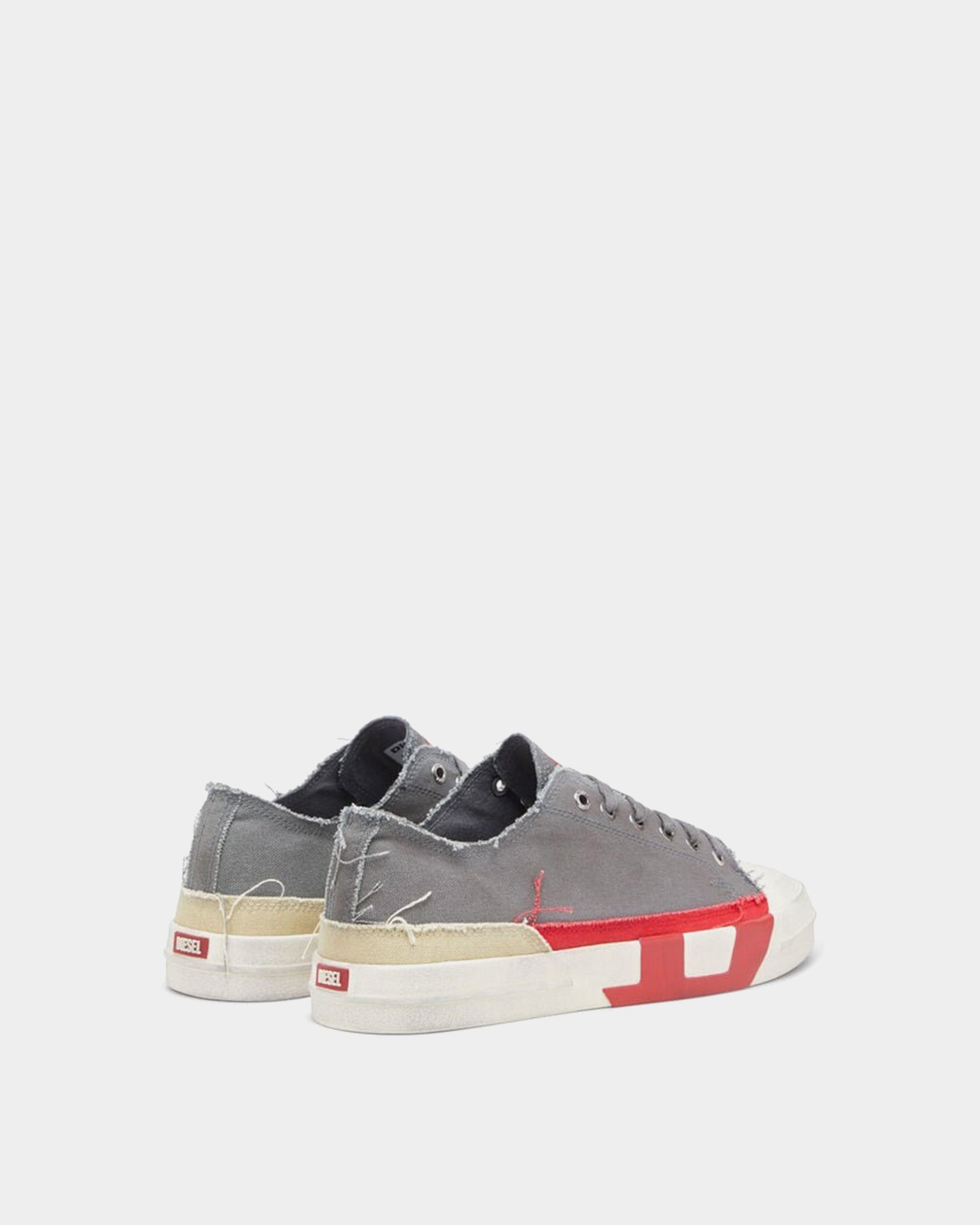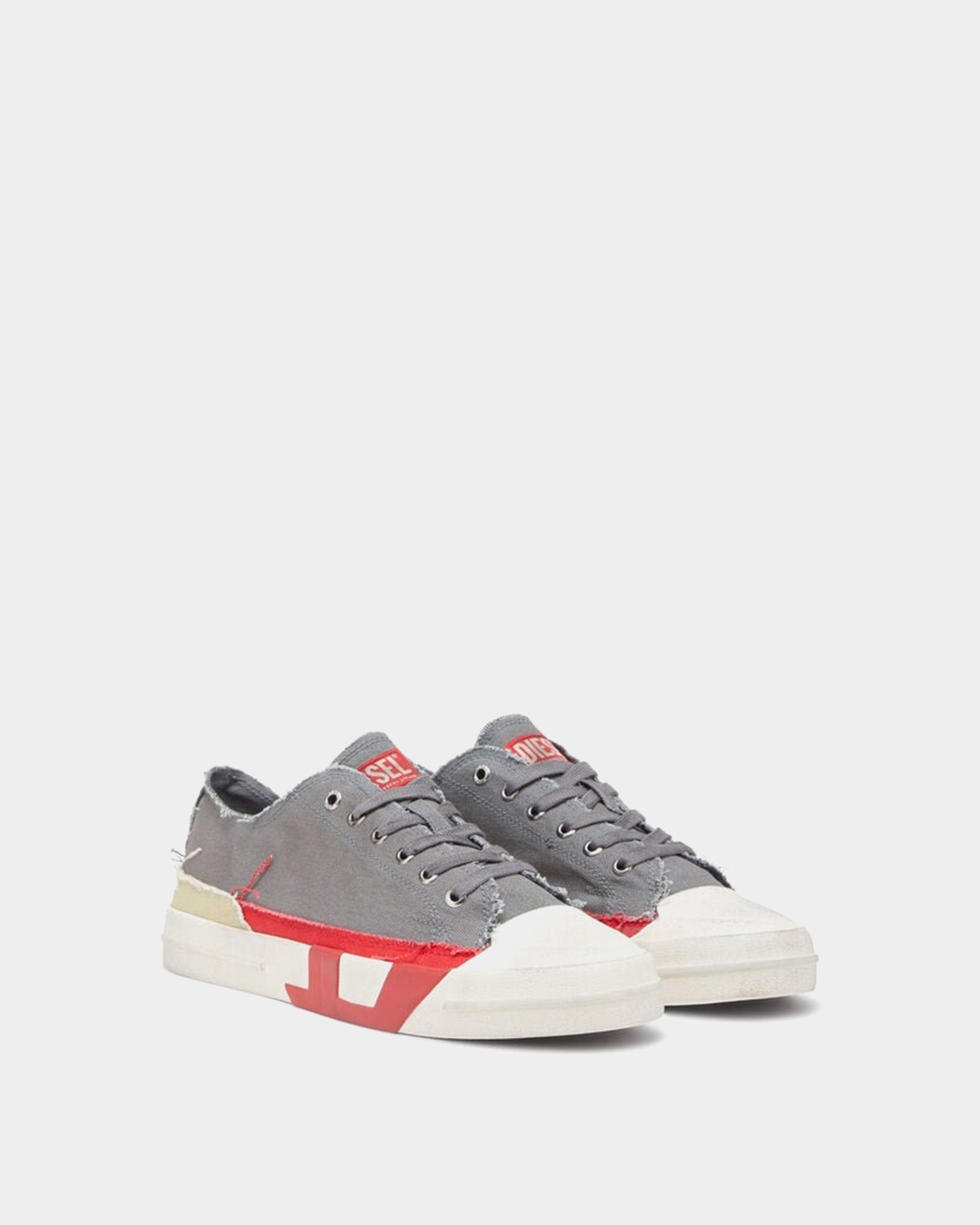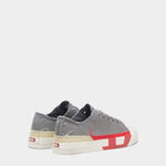 這是一雙 100% 棉帆布製成的低筒休閒鞋,採傳統綁帶設計,表面有破舊效果/污漬感刷色處理,呈現復古街頭風格,適合日常搭配休閒或街頭服裝。