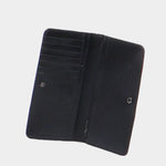 這款長夾以十字紋牛皮精緻打造,外觀簡約並具耐用質感。配備外滑口袋與內部三滑口與拉鍊零錢袋,卡位多達七格,兼具功能與時尚。透過按扣開合設計,既便利又安全。