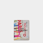此款護照夾採用優質牛皮材質,外層印有城市景點旅遊圖案,內裡配置卡夾與護照插槽,兼具旅途實用與時尚趣味。設計靈感源自旅遊情境,「Have a safe flight」等細節文字體現品牌玩味風格。