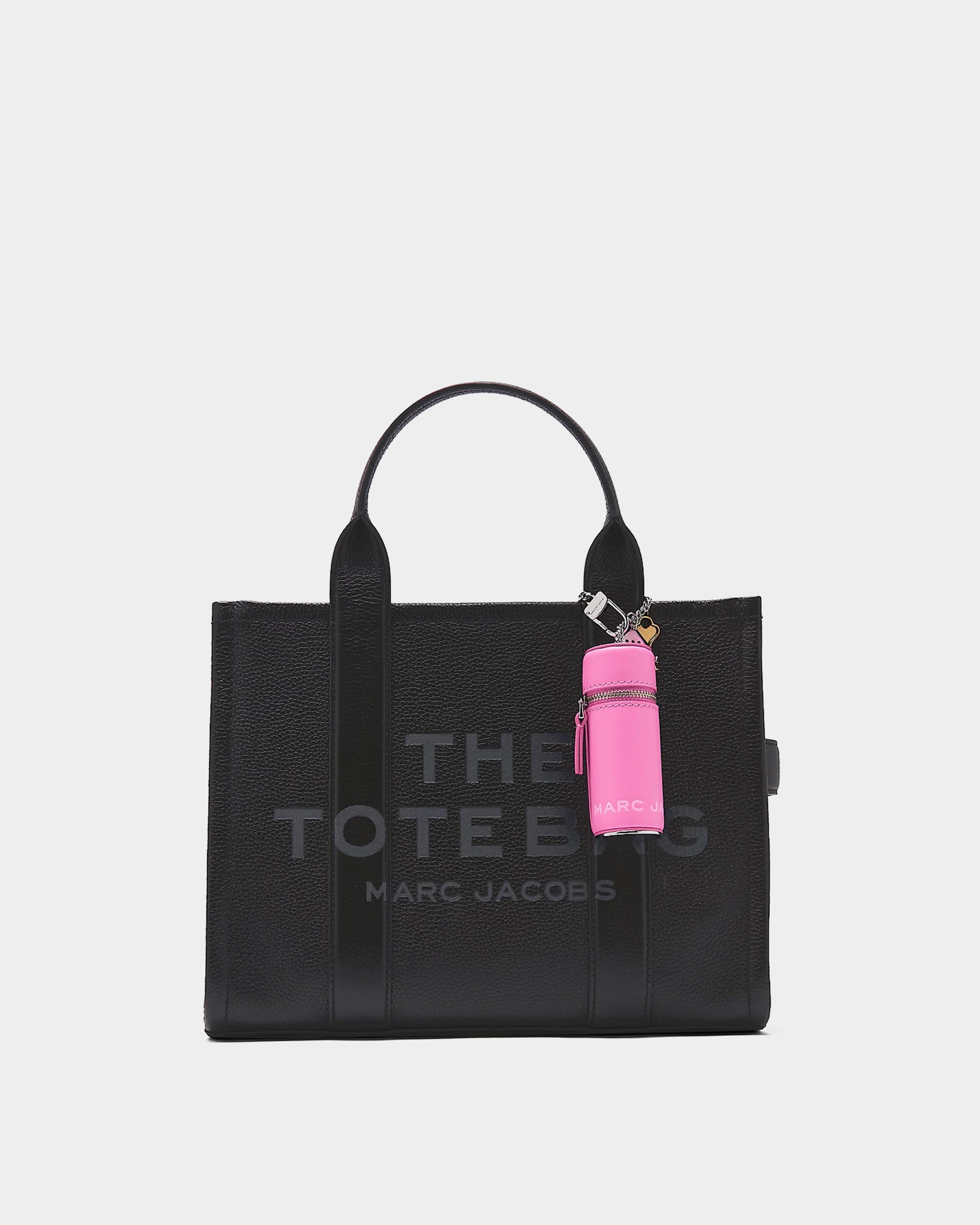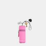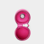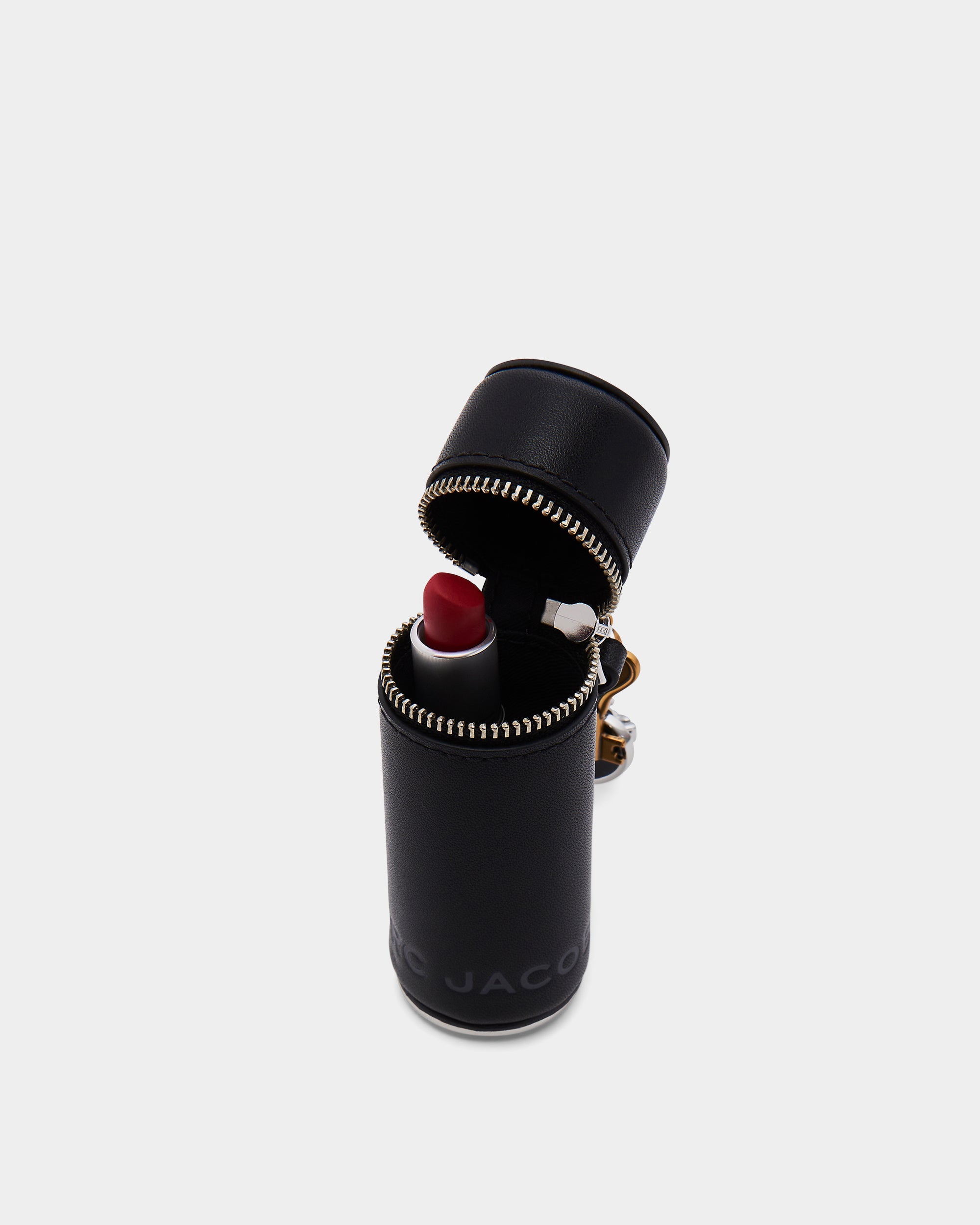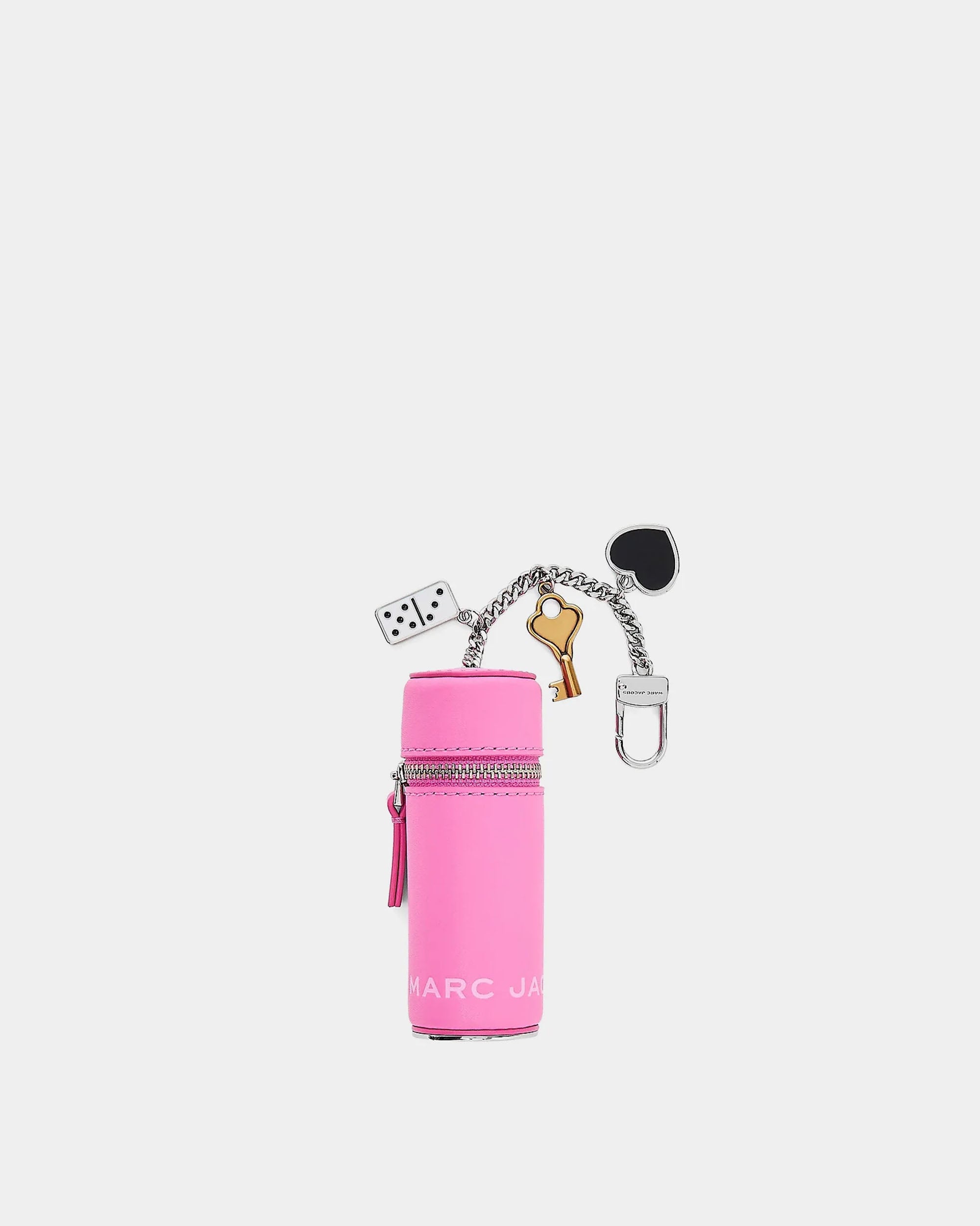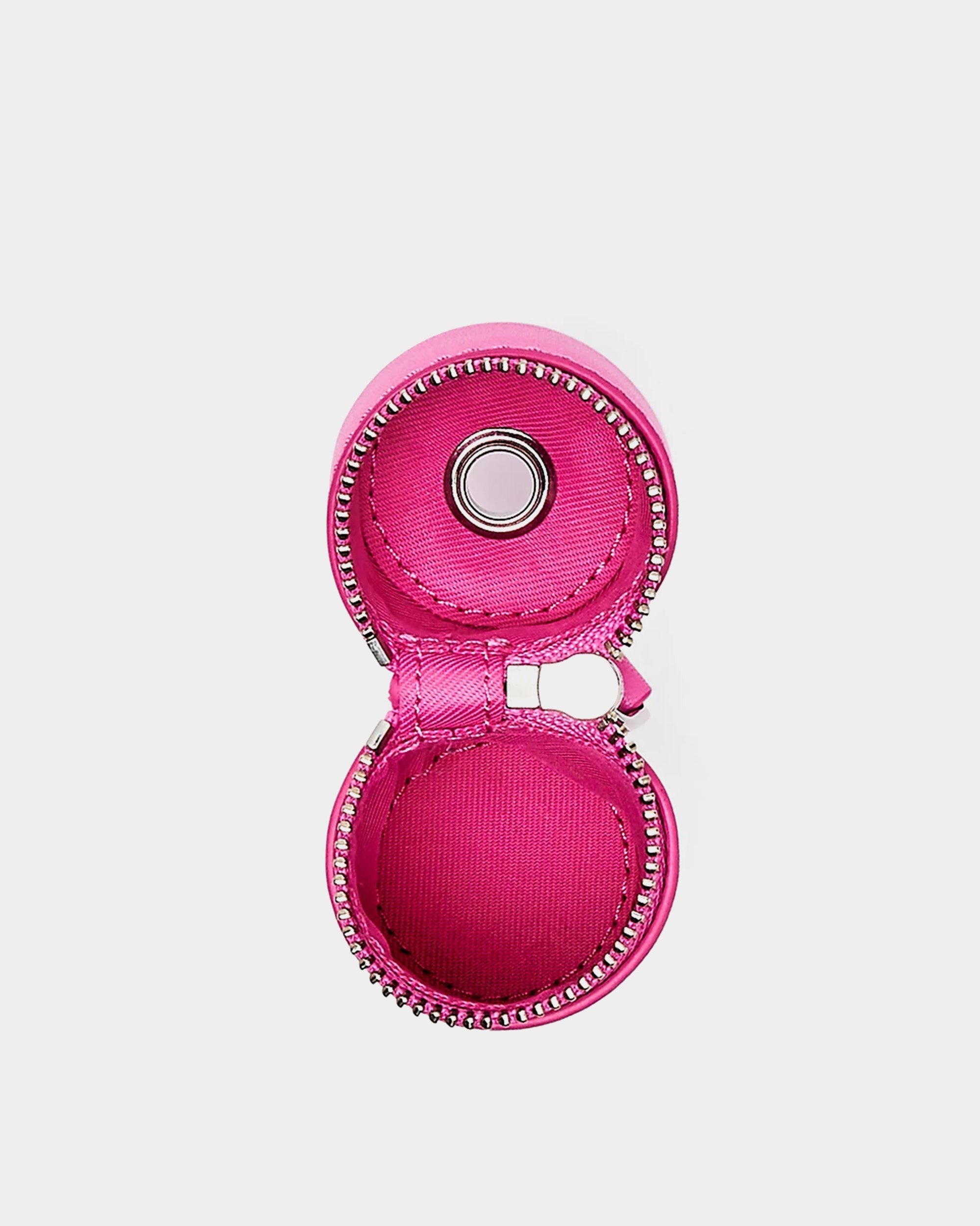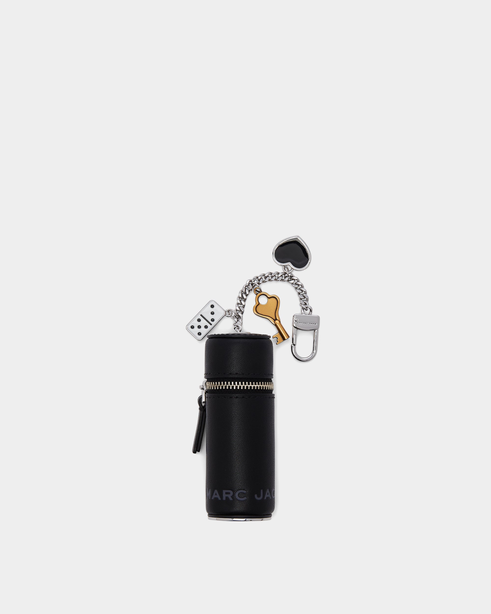 這款吊飾採用光滑皮革製成,搭配拉鍊圍繞開合與反光金屬底座,設計可隨時用於補妝。配有扣環可掛於包包或腰帶,實用且具潮流感。