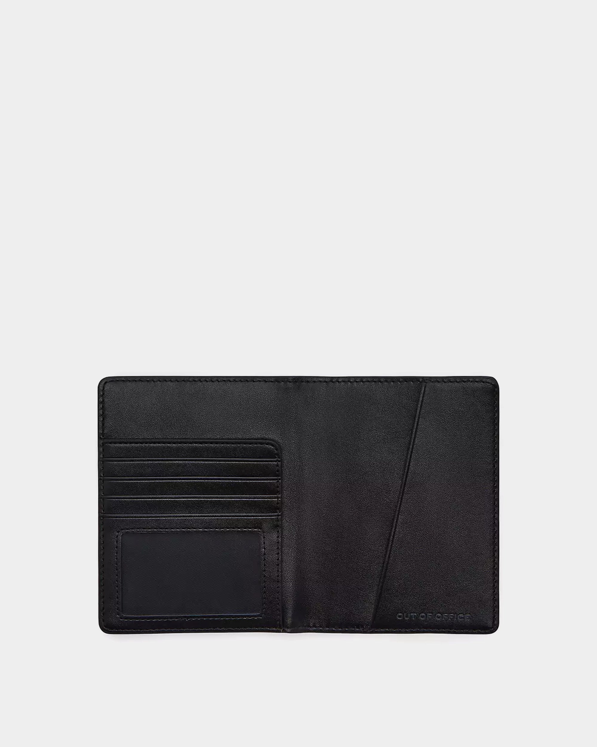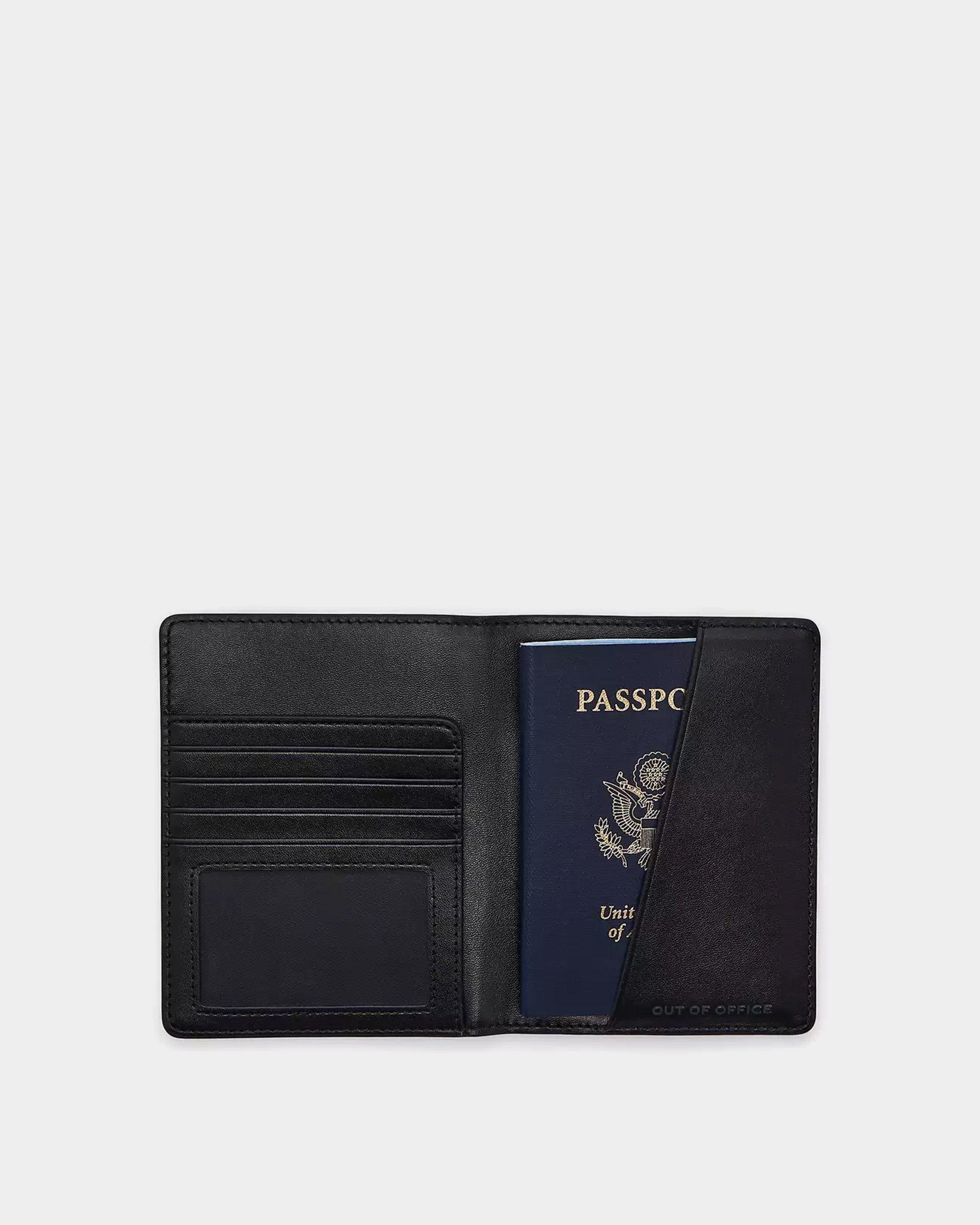 這款護照夾採用全粒面小牛皮製成,正面印有品牌名稱「THE PASSPORT」的浮雕設計,展現品牌獨特的風格。內部設有三個卡片槽、兩個插袋和一個 ID 視窗,方便收納護照和其他旅行必需品。