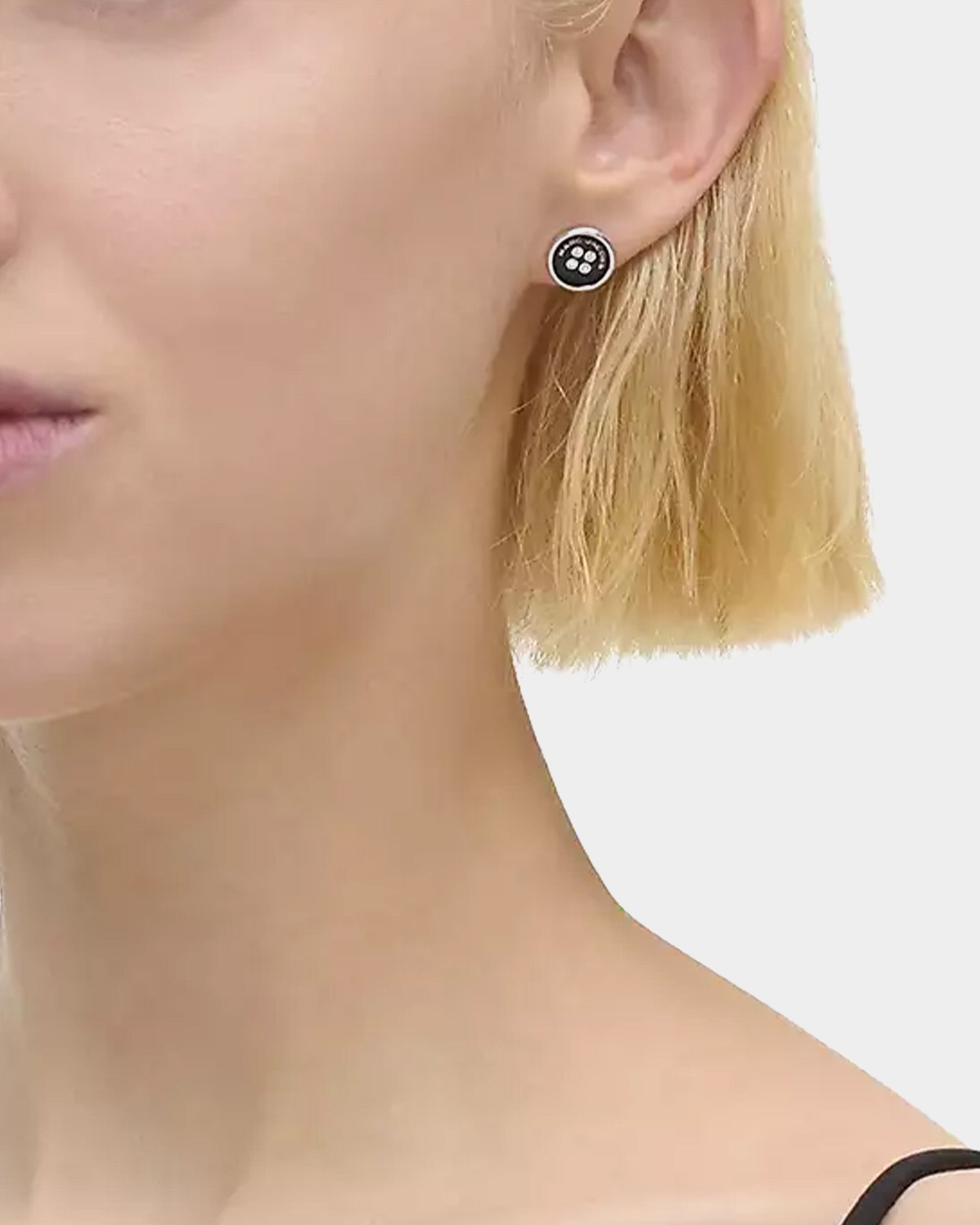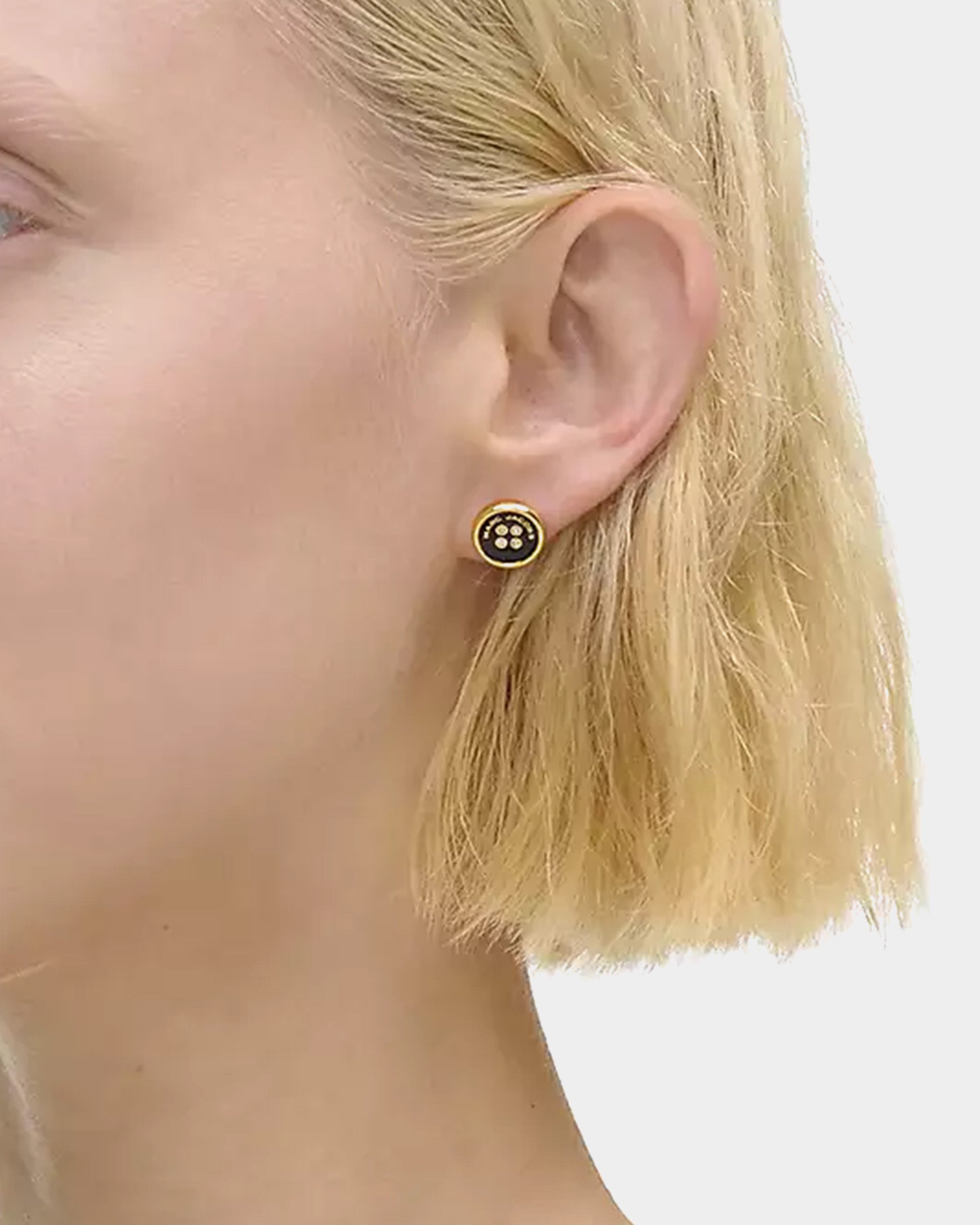 來自品牌「Button 系列」,這對耳釘以鍍金或鍍銀黃銅為基材,搭配手繪琺瑯鈕扣造型,並點綴精緻玻璃水晶與品牌標誌,為日常搭配提供低調卻具質感的點綴。