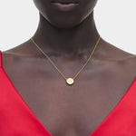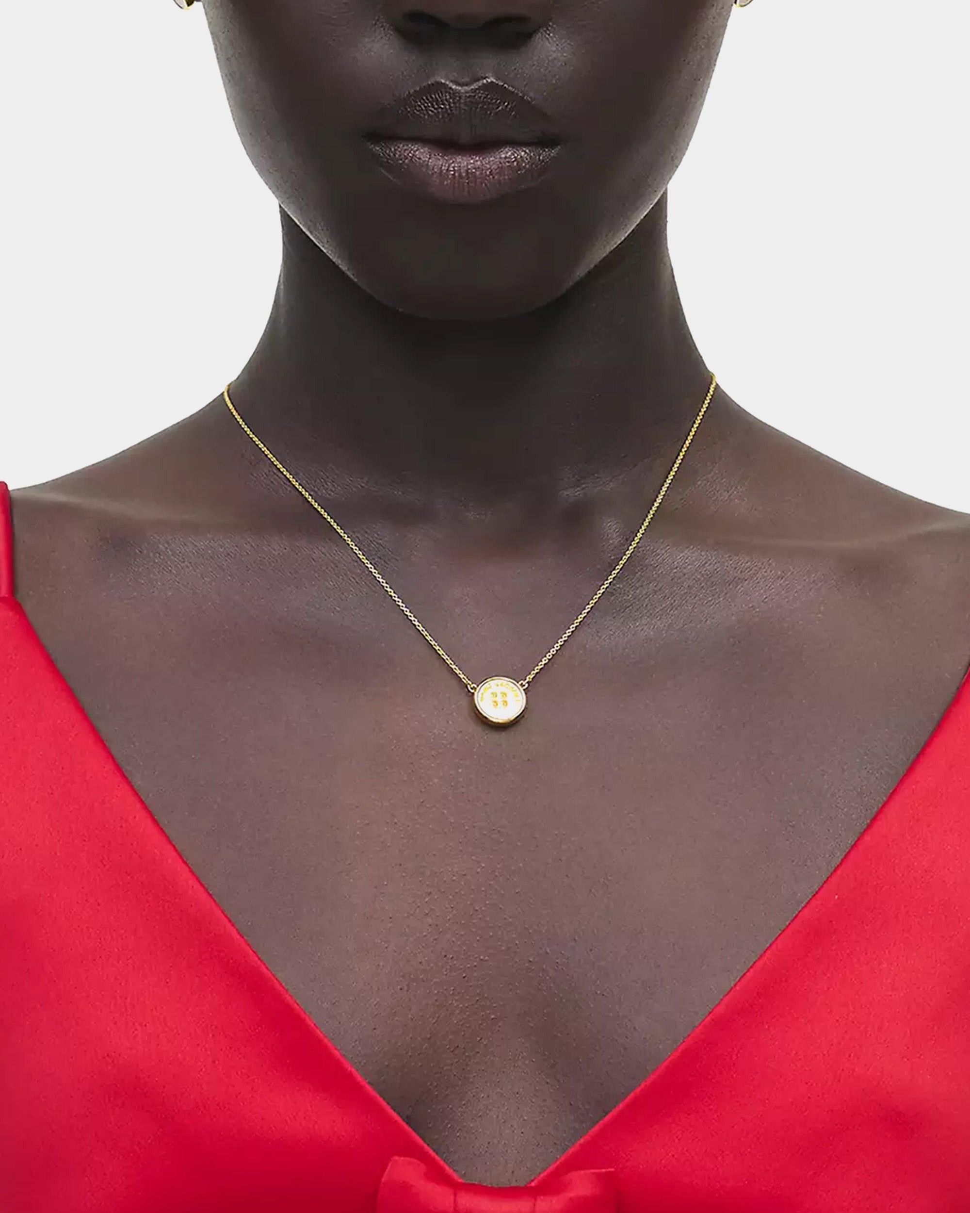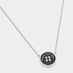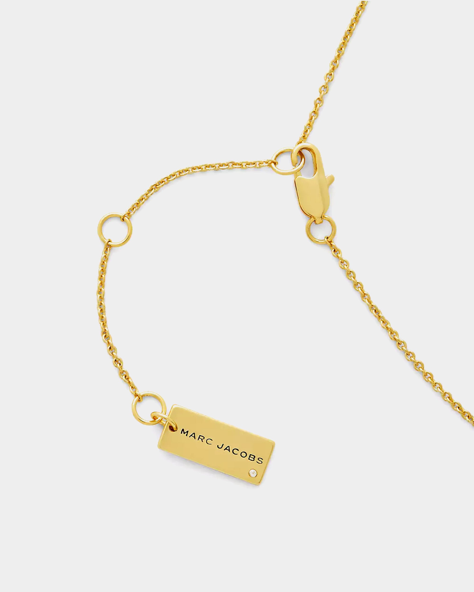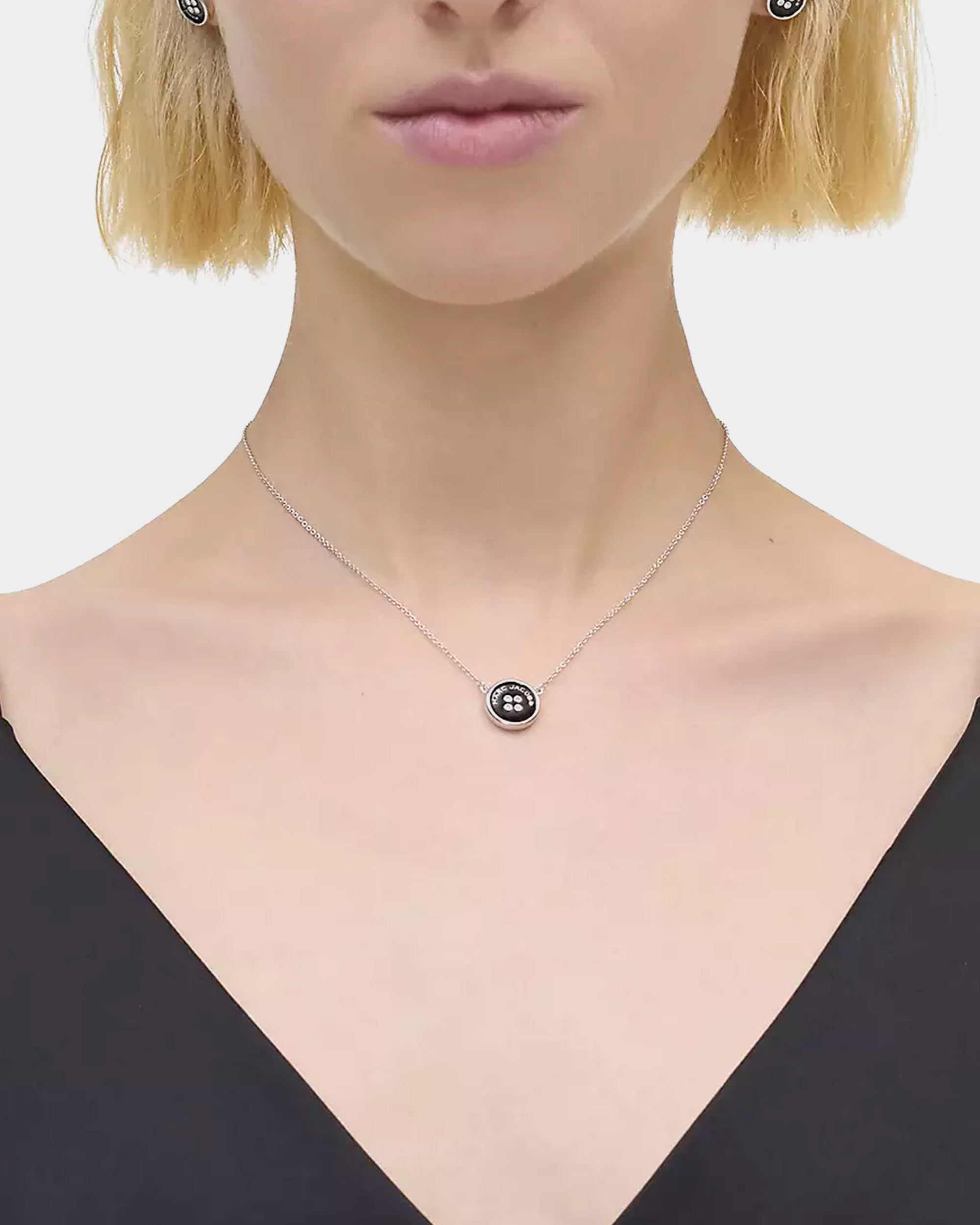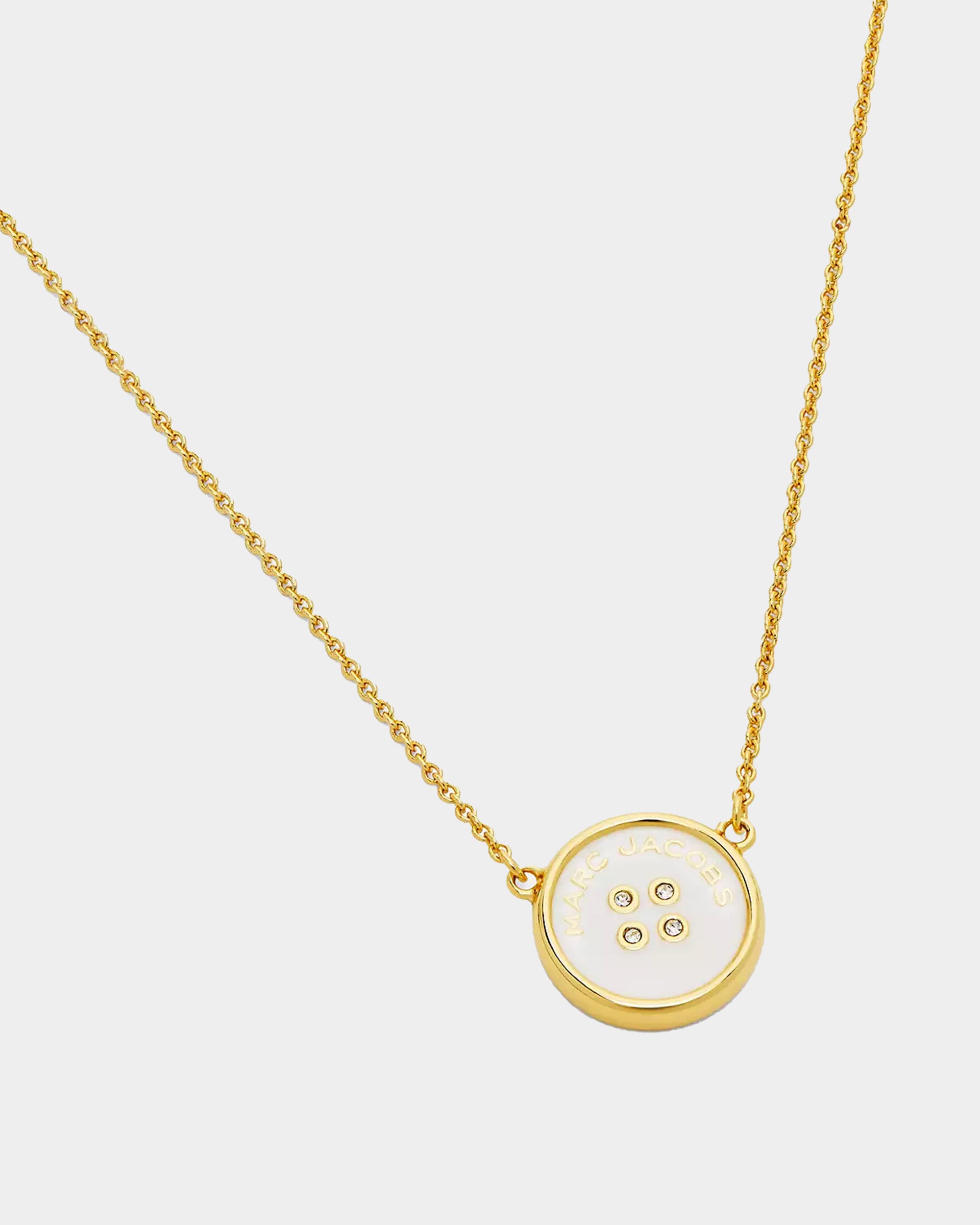 此款項鍊採鍍金/鍍銀黃銅材質,吊墜為手繪琺瑯鈕扣,上嵌玻璃水晶,搭配兩段可調節鏈條,細節致敬品牌對飾品修飾與細節的熱愛。