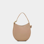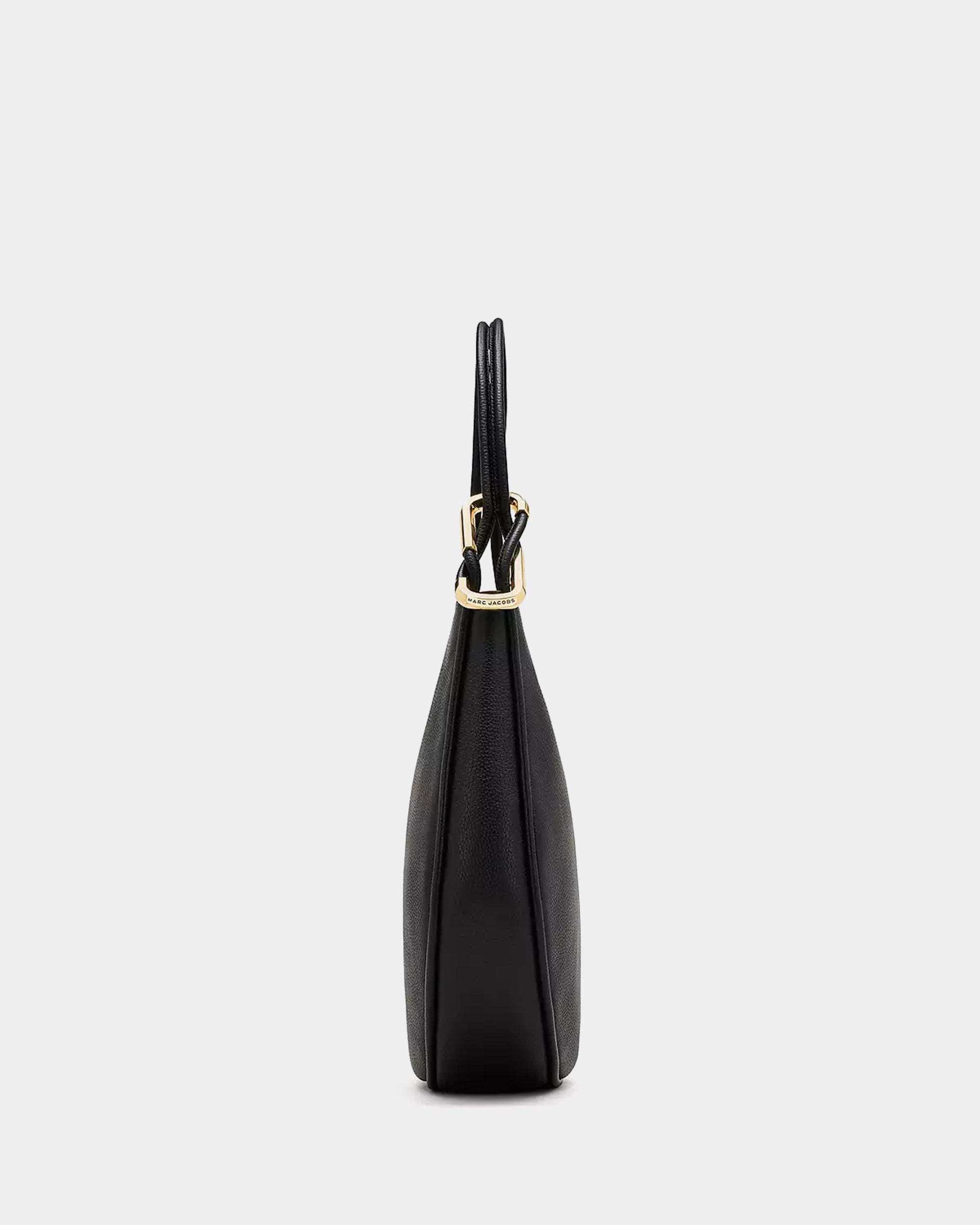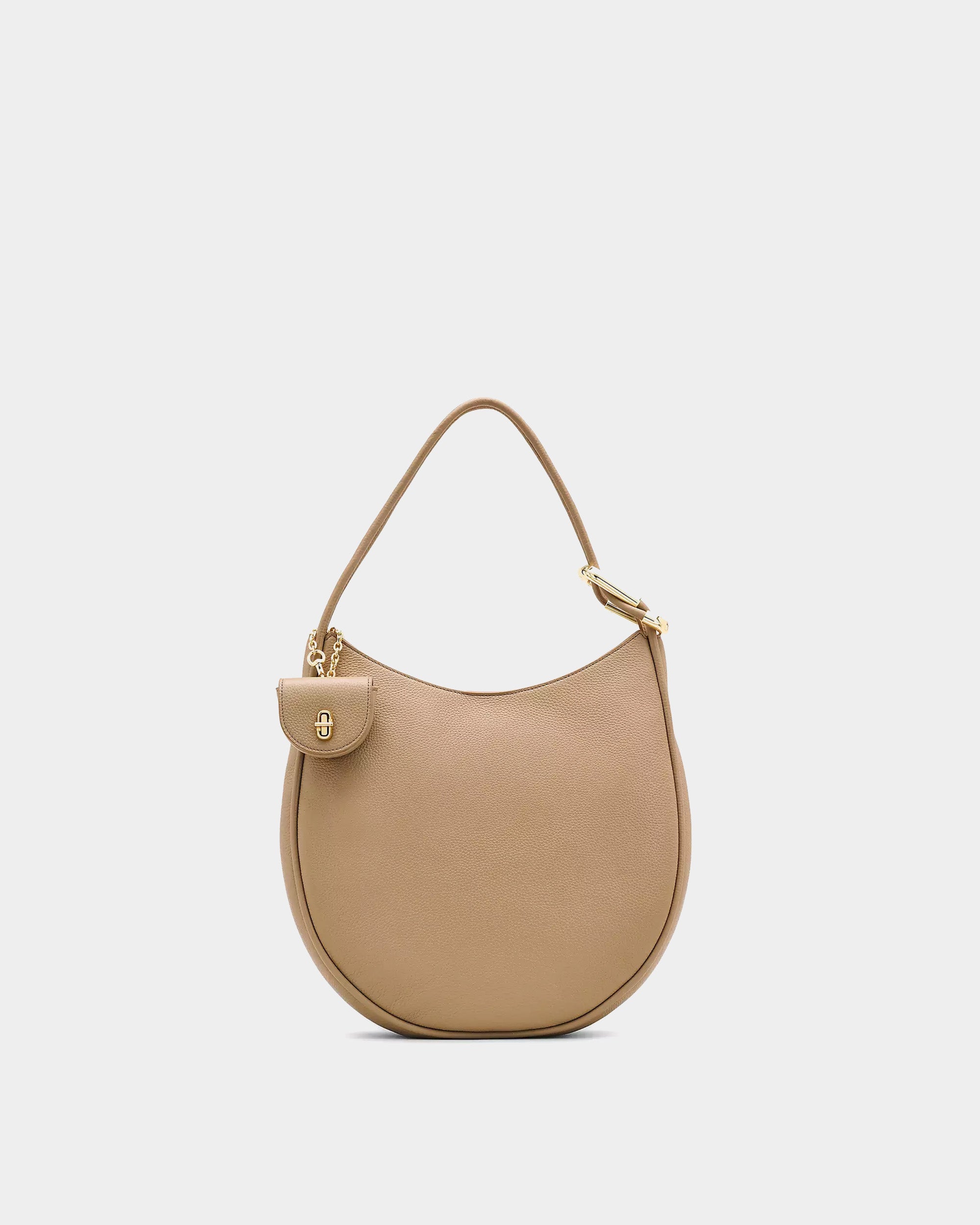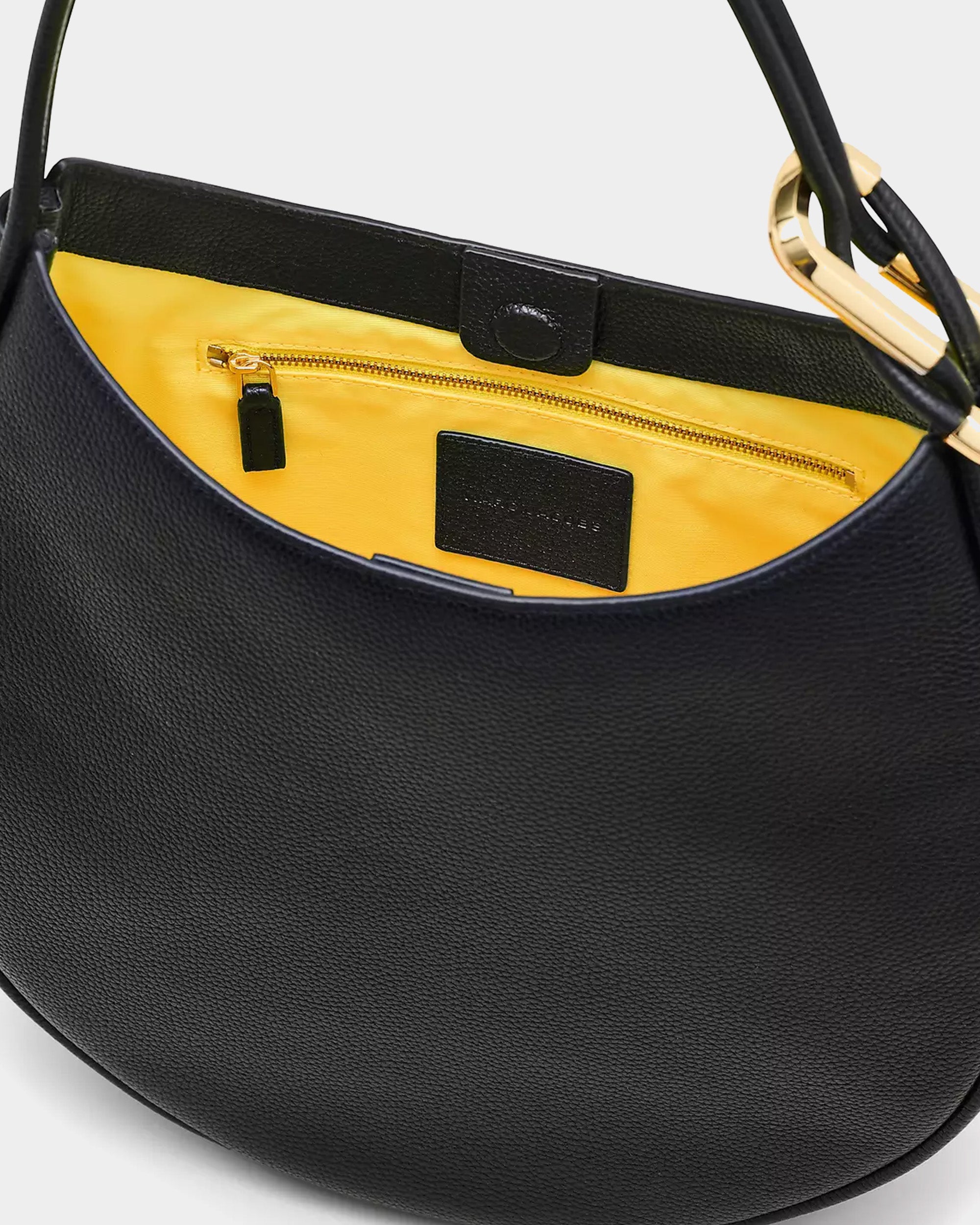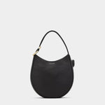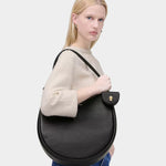 這款 The Large Dual Hobo 包採用全粒面牛皮製成,呈現圓潤的新月形輪廓,設計簡約卻充滿現代感。配有金色 Dual 鉸鏈裝飾與可拆式耳機盒吊飾,內部設有拉鍊袋與外部可拆式翻扣小袋,實用性與時尚感兼具。