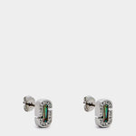 此款耳釘採鍍銀黃銅打造,飾以珍貴貝母殼面與玻璃水晶鑲嵌,為日常裝扮增添低調華麗質感。