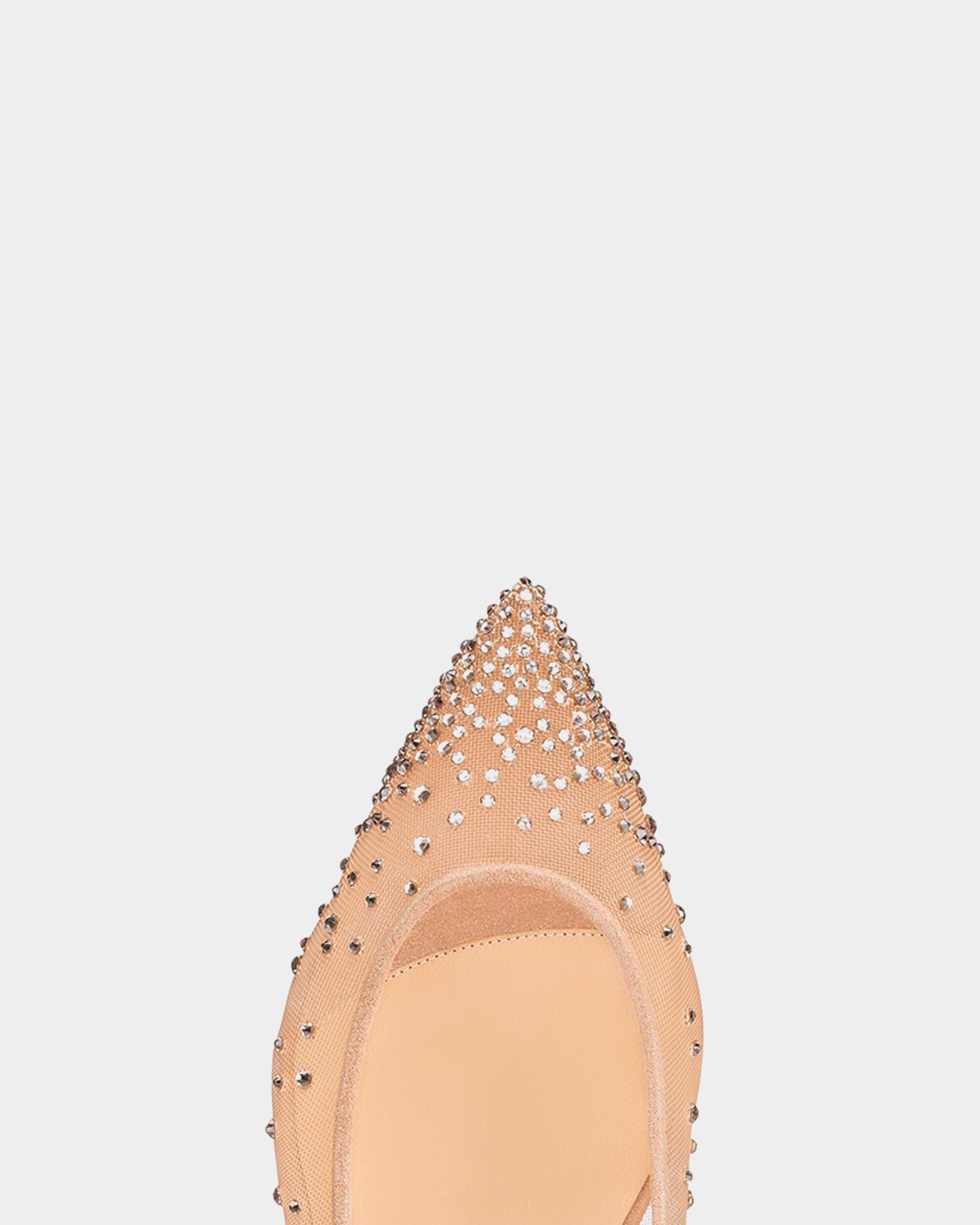 Follies Strass 芭蕾平底鞋以優雅裸粉色網紗打造,鑲嵌細緻水鑽營造柔美光澤,延續經典紅底設計,優雅中帶有時尚感。適合日常穿搭、婚禮換鞋或優雅通勤,是舒適與氣質兼備的選擇。