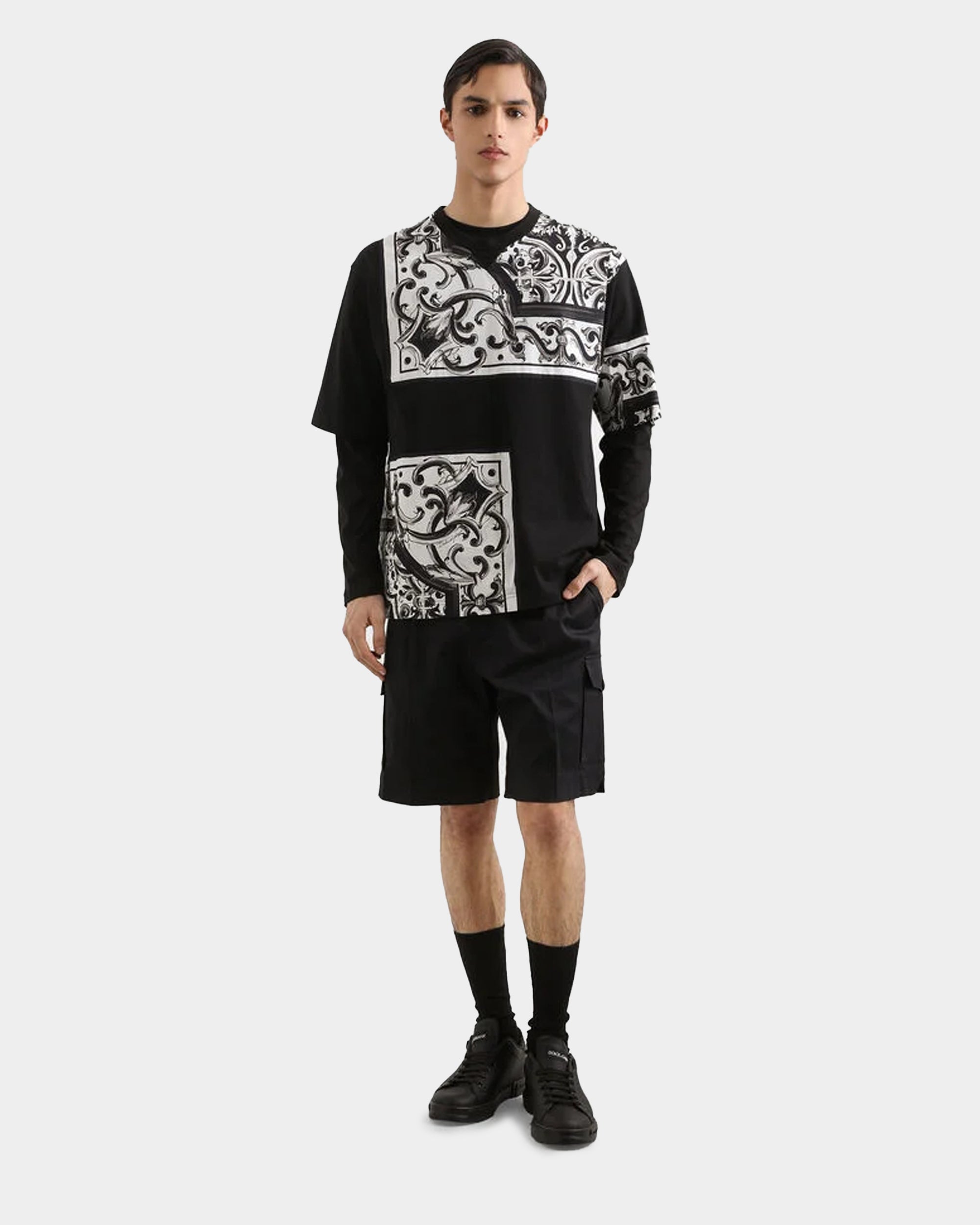 DOLCE&GABBANA 刺繡標誌長袖 T-shirt
