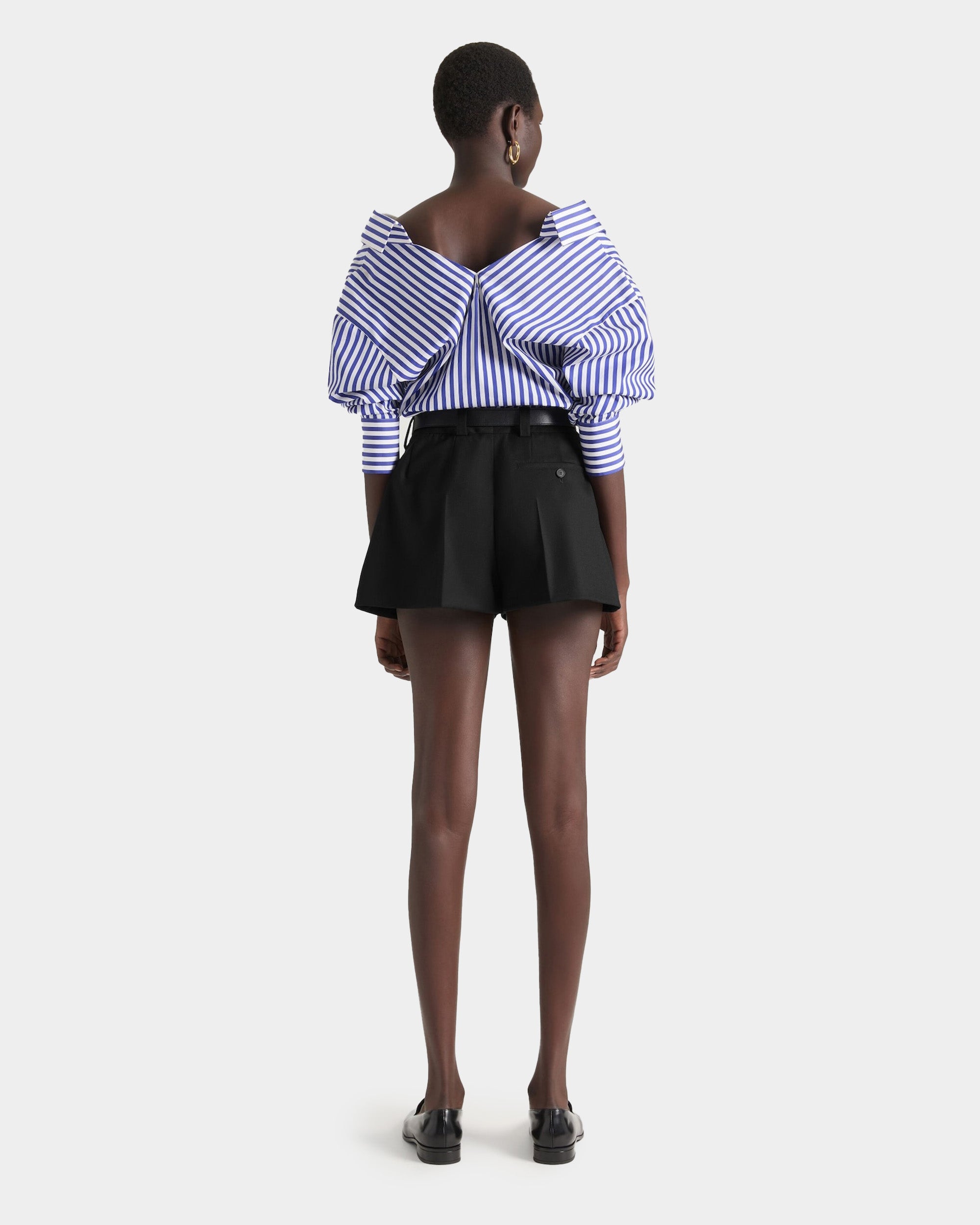 這款 Givenchy 長袖條紋襯衫採用高品質棉府綢布料製作,電光藍與白色條紋拼接呈現經典設計感,背部開衩細節增添動態與穿著舒適度,前襟搭配隱形鈕扣門襟與釦袖口設計,剪裁俐落又兼具摩登休閒風格。