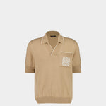 採用柔軟針織面料,胸前口袋點綴品牌徽章刺繡,結合休閒質感與精緻細節。
