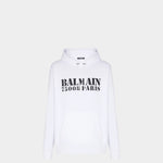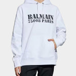 經典連帽上衣,以簡約剪裁搭配「BALMAIN 75008 PARIS」印字,象徵品牌位於巴黎第八區的時尚核心地標,將高級訂製的巴黎精神融入日常穿搭。