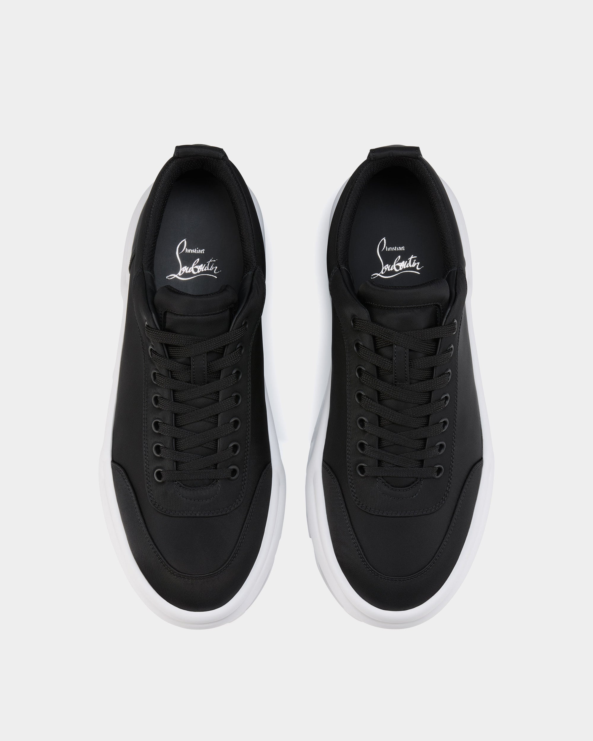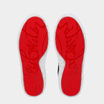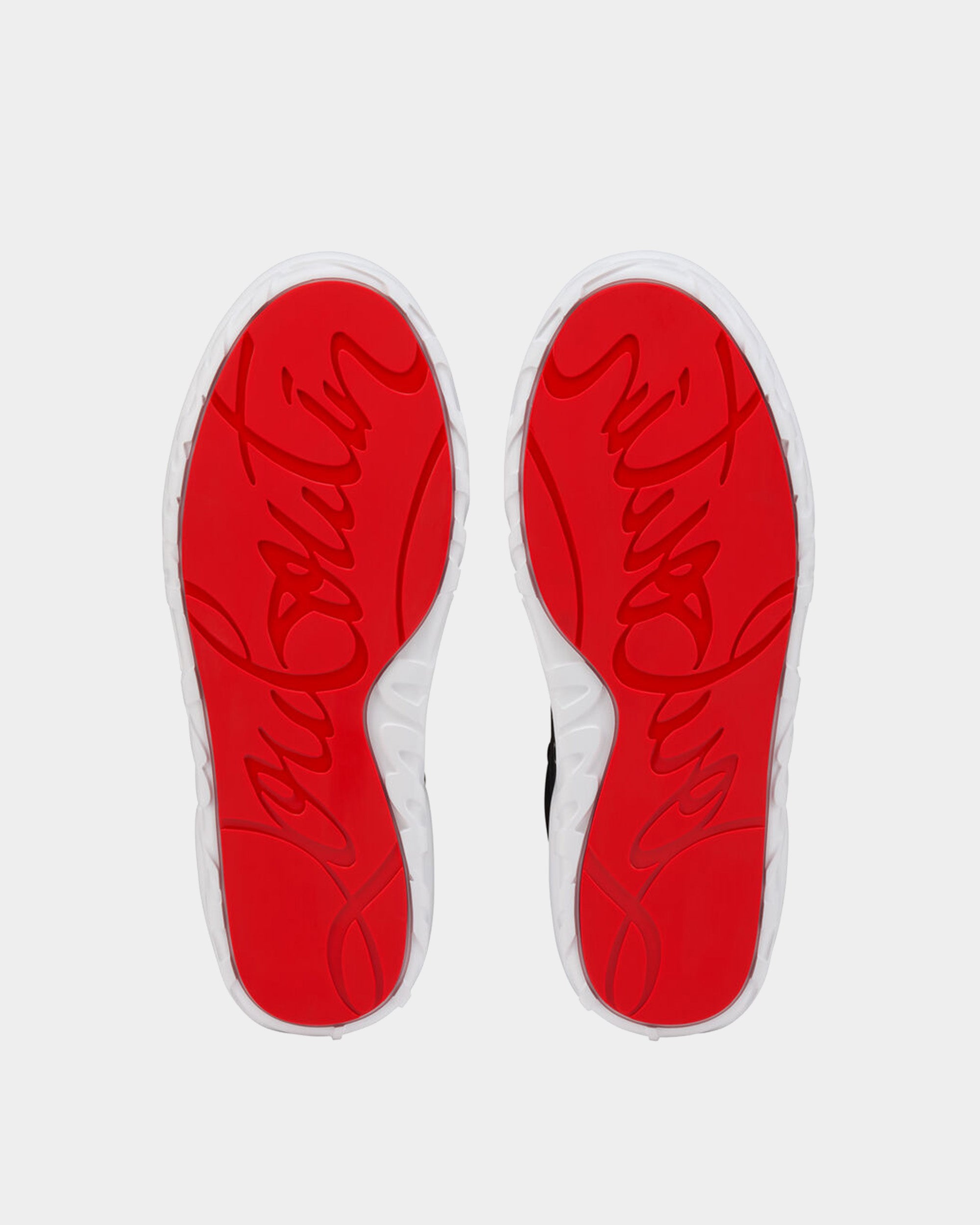 以布料結合橡膠細節,創造俐落且具現代感的外型。厚實的白色雕刻感鞋底不僅增添時尚份量感,亦提供舒適支撐與穩定腳感。鞋底隱藏的紅色細節呼應品牌經典元素,讓每一步都散發低調奢華。這款鞋非常適合日常休閒或潮流造型搭配,無論是簡約牛仔褲或運動風穿搭,都能展現自信與個性,完美詮釋當代時尚與舒適並重的精神。