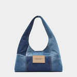 以拼接丹寧布料設計,展現獨特休閒風格。柔軟輪廓與實用容量,為日常造型增添個性亮點。