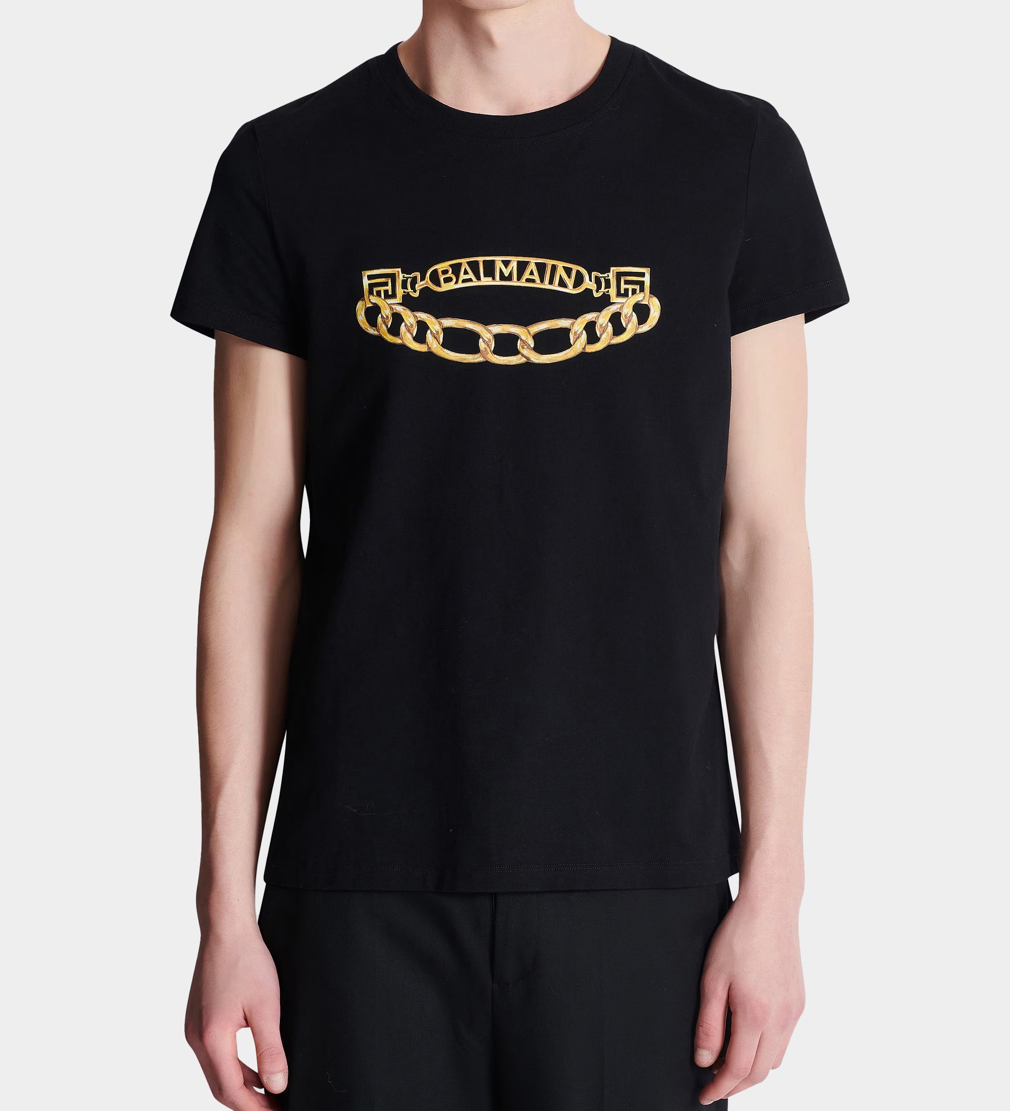 BALMAIN 男版 金屬鏈飾印花 T-Shirt