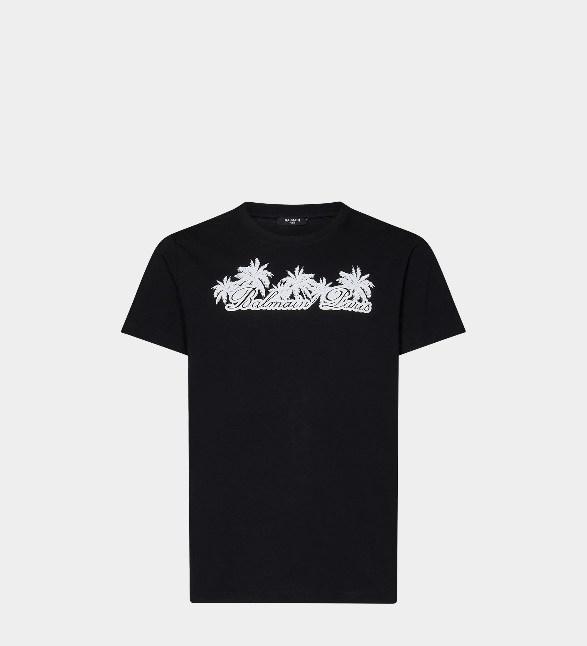 BALMAIN 棕櫚樹標誌短袖棉質 T-Shirt