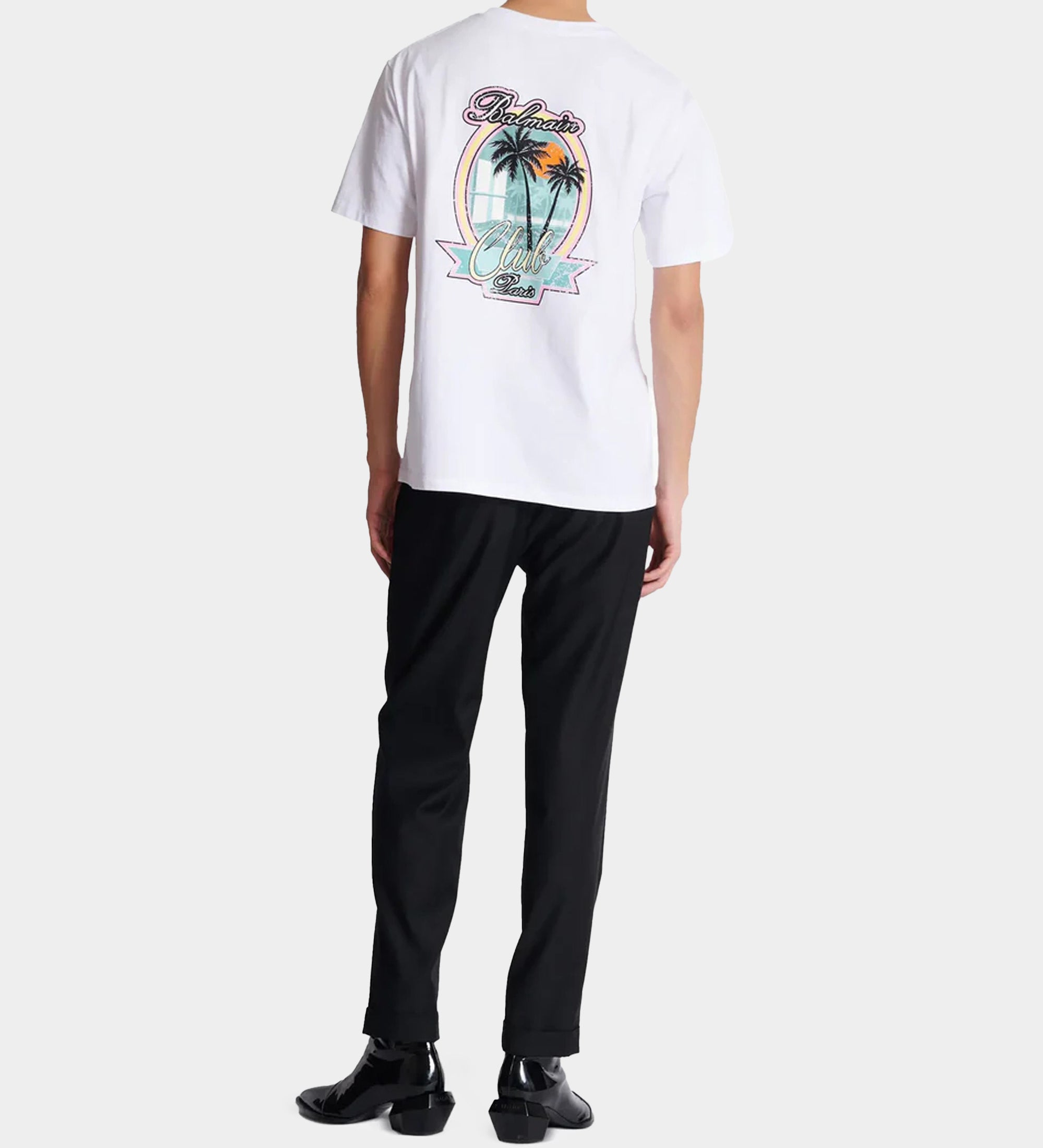 BALMAIN 棕櫚樹標誌白色款短袖 T-Shirt