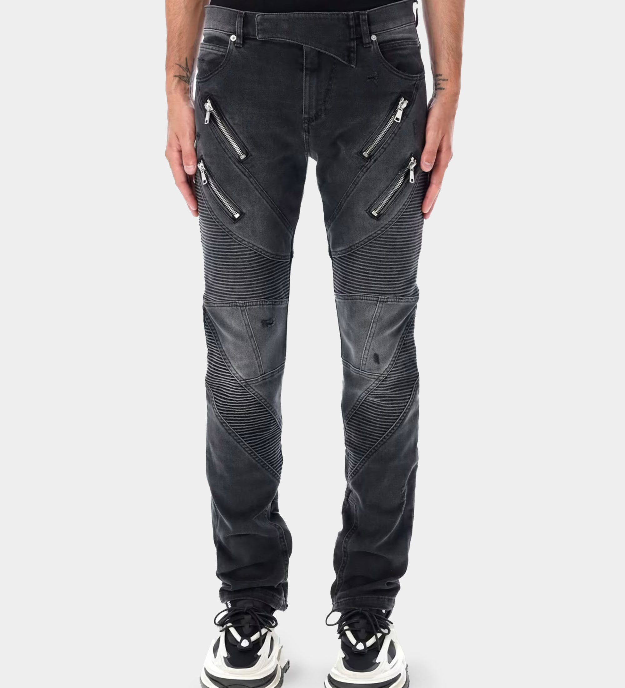 BALMAIN 石墨灰機車風緊身牛仔褲