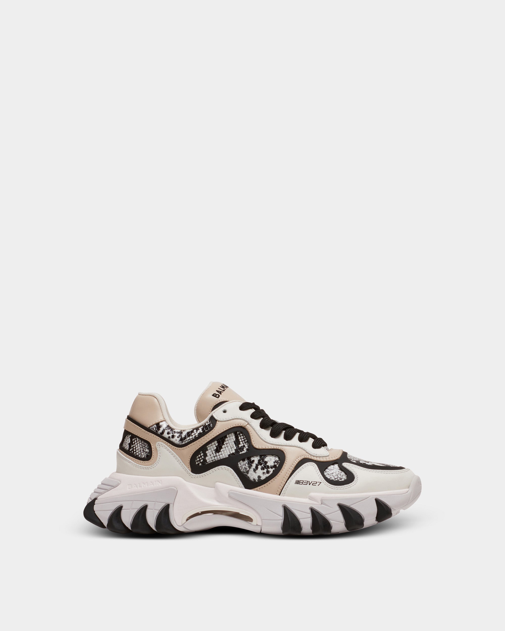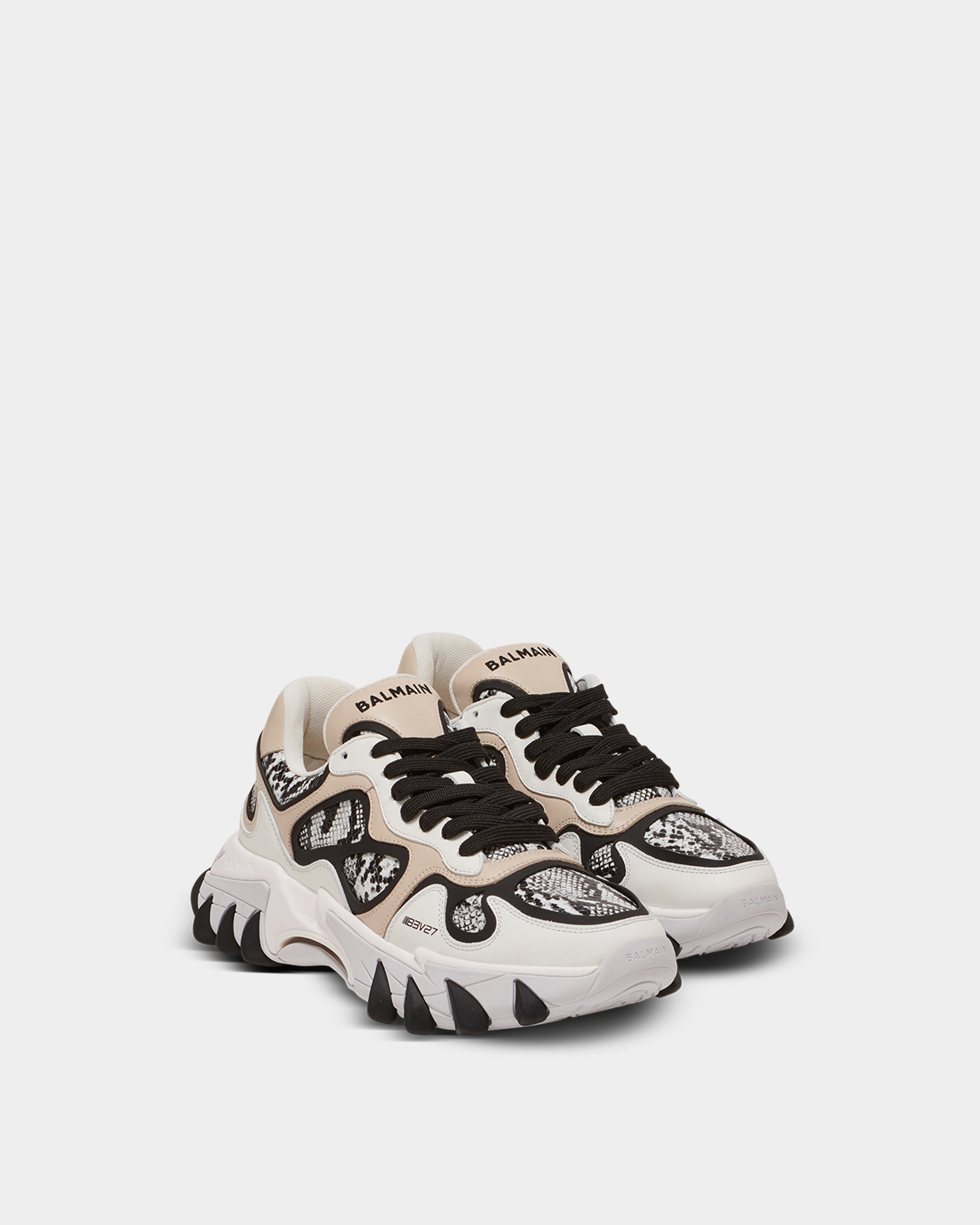 Balmain B-East Sneakers in White 以皮革、麂皮和網布的精緻搭配,展現出現代運動風格與奢華感的完美結合。鞋面設計注重細節,採用高品質的皮革和麂皮,並加入透氣的網布插片,提供舒適的穿著感。鞋帶設計位於鞋面上,確保穩固與舒適。厚實的鞋底不僅增添時尚感,還提供卓越的舒適度與支撐性,適合日常穿搭或休閒活動。鞋側精緻的Balmain標誌,完美詮釋品牌的奢華氣質。這款B-East運動鞋無論搭配休閒服或運動裝,都能讓穿搭更加出眾。