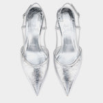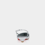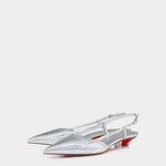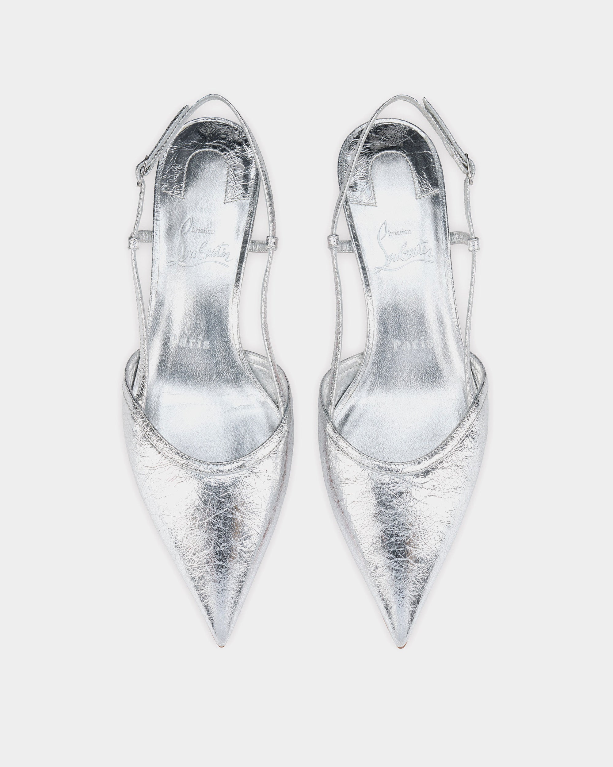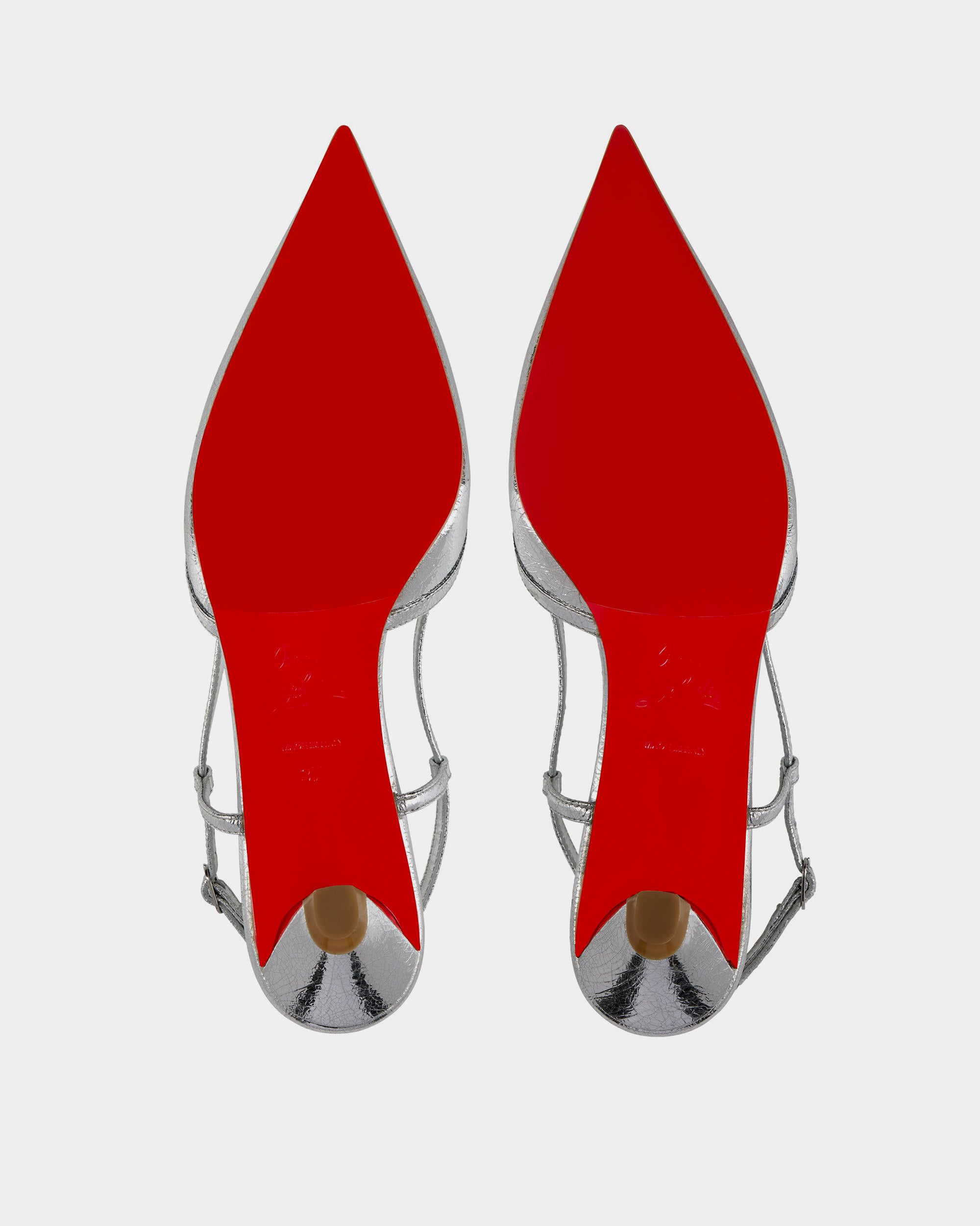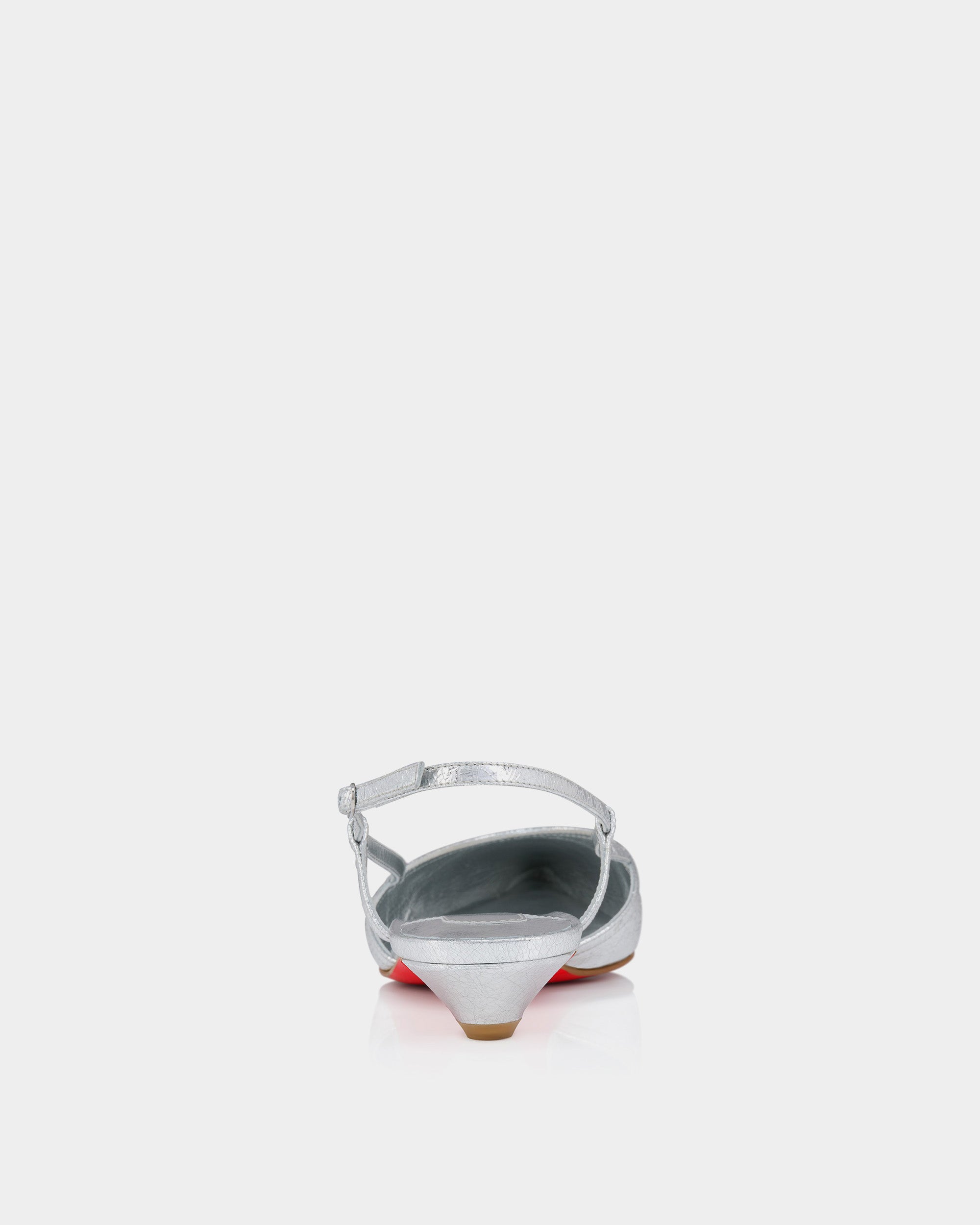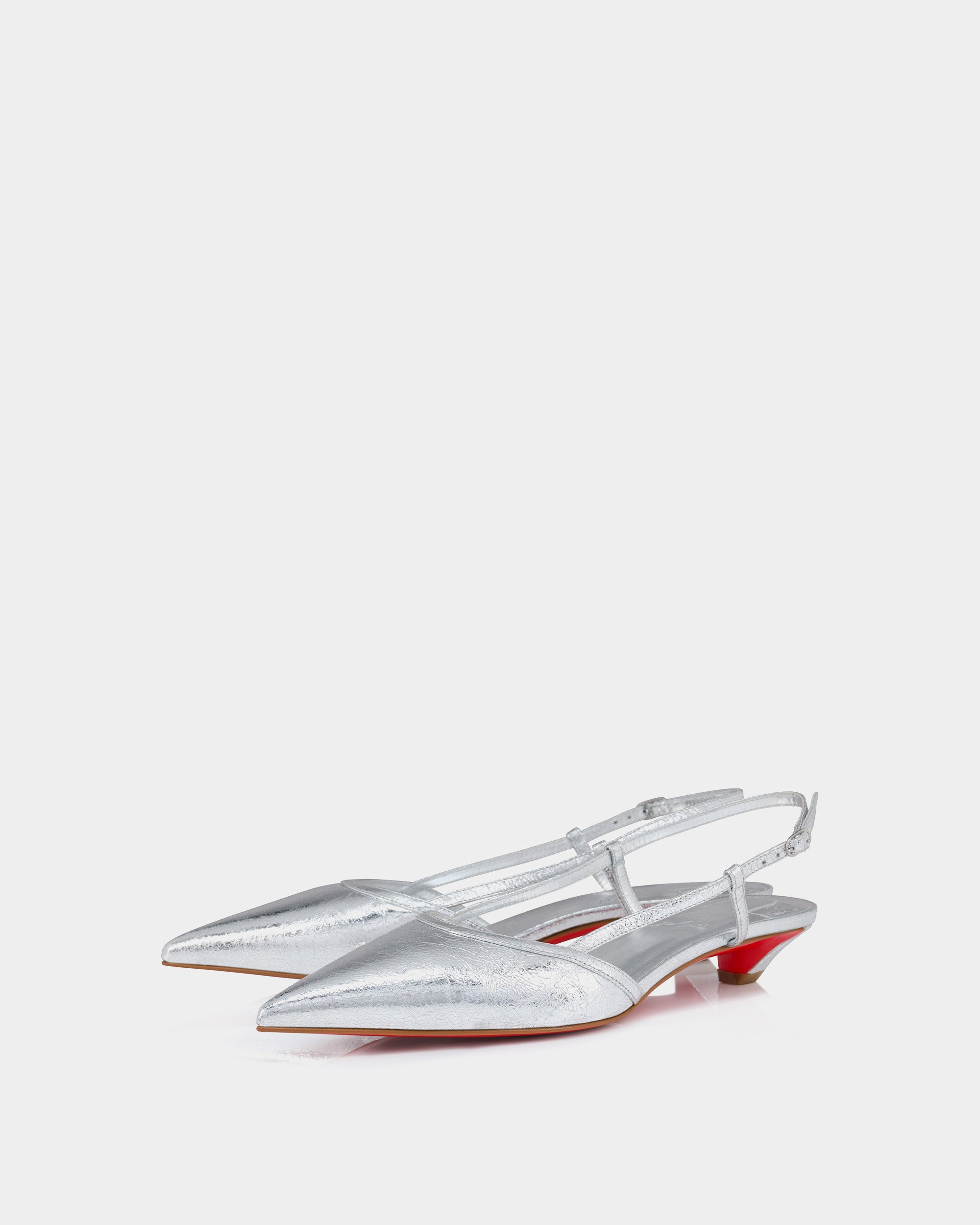 以俐落尖頭設計低跟結合,呈現舒適與優雅兼具的風格;鍍面小牛皮閃耀金屬光澤,搭配後繫帶細節,既實穿又精緻,標誌性的紅底更為日常與場合增添獨特識別度,是能自在轉換於工作、晚宴與休閒時刻的百搭經典。
