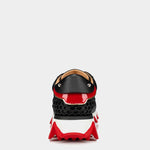 以鯊魚齒狀紅色厚底設計吸睛,結合黑色小牛皮與絨面拼接,展現街頭與奢華的跨界融合;鞋身側面以金色 “CL Paris” 標誌點綴,呼應品牌經典紅底基因,兼具時尚與舒適,無論搭配運動休閒或潮流街頭造型,都能展現與眾不同的張揚個性與自信態度。